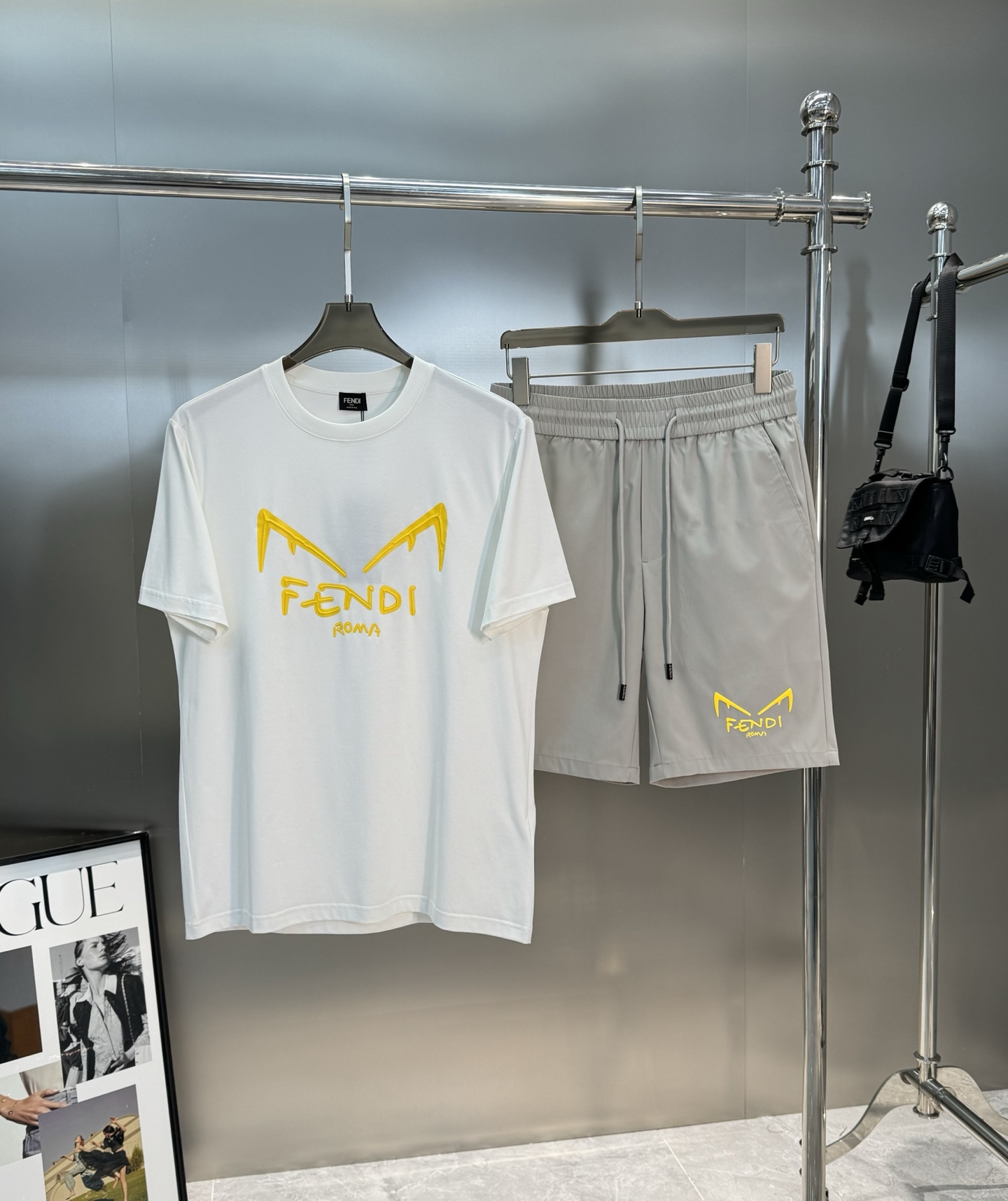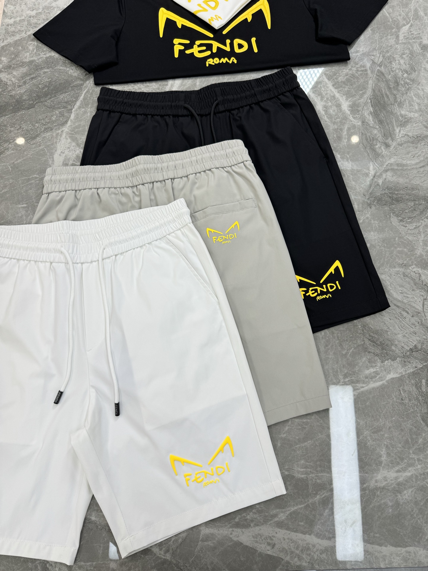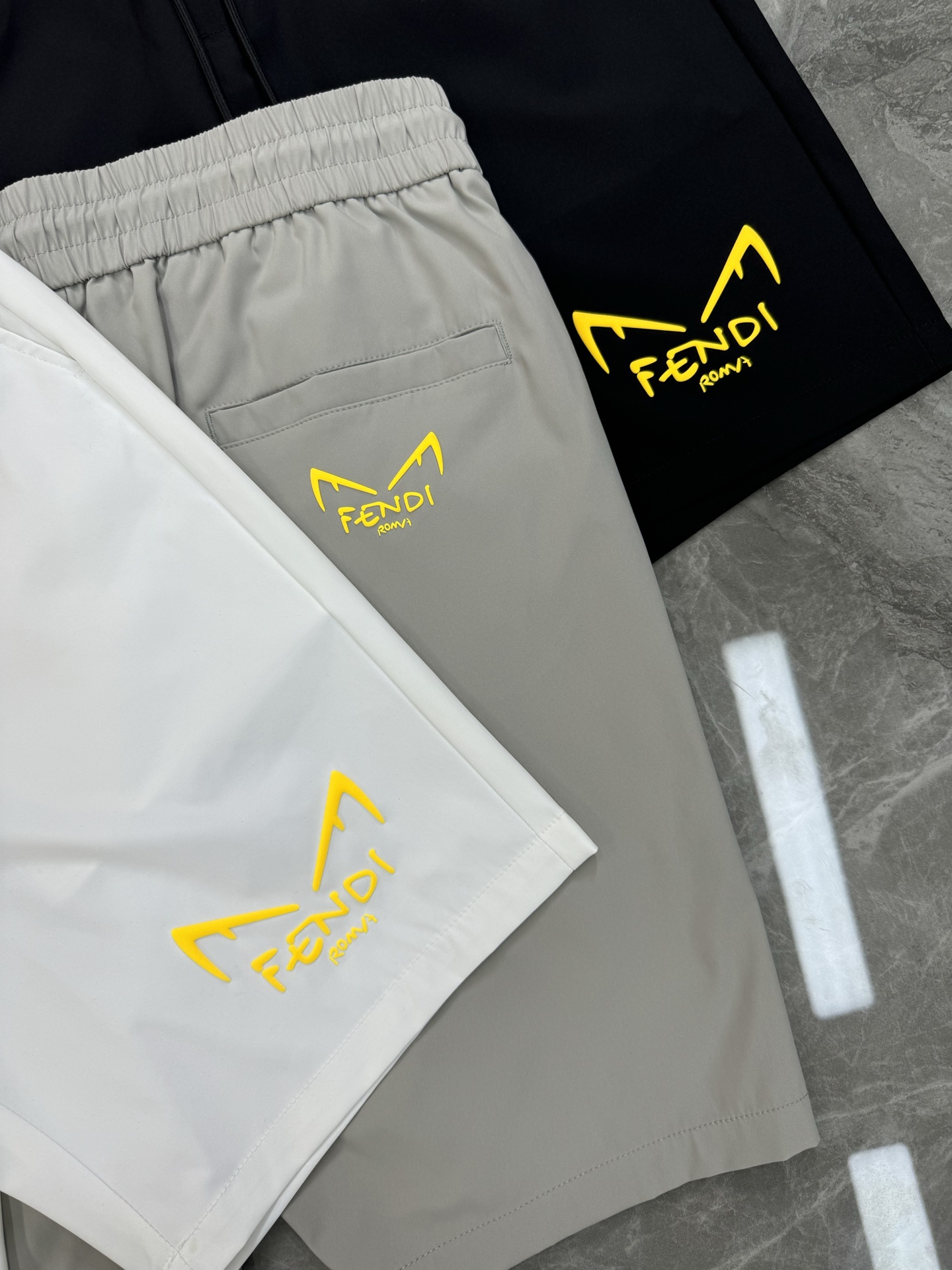 FENDI summer men's shorts. Quick-dry fabric, monster print. Colors: black, white, gray. Sizes: M-3XL.