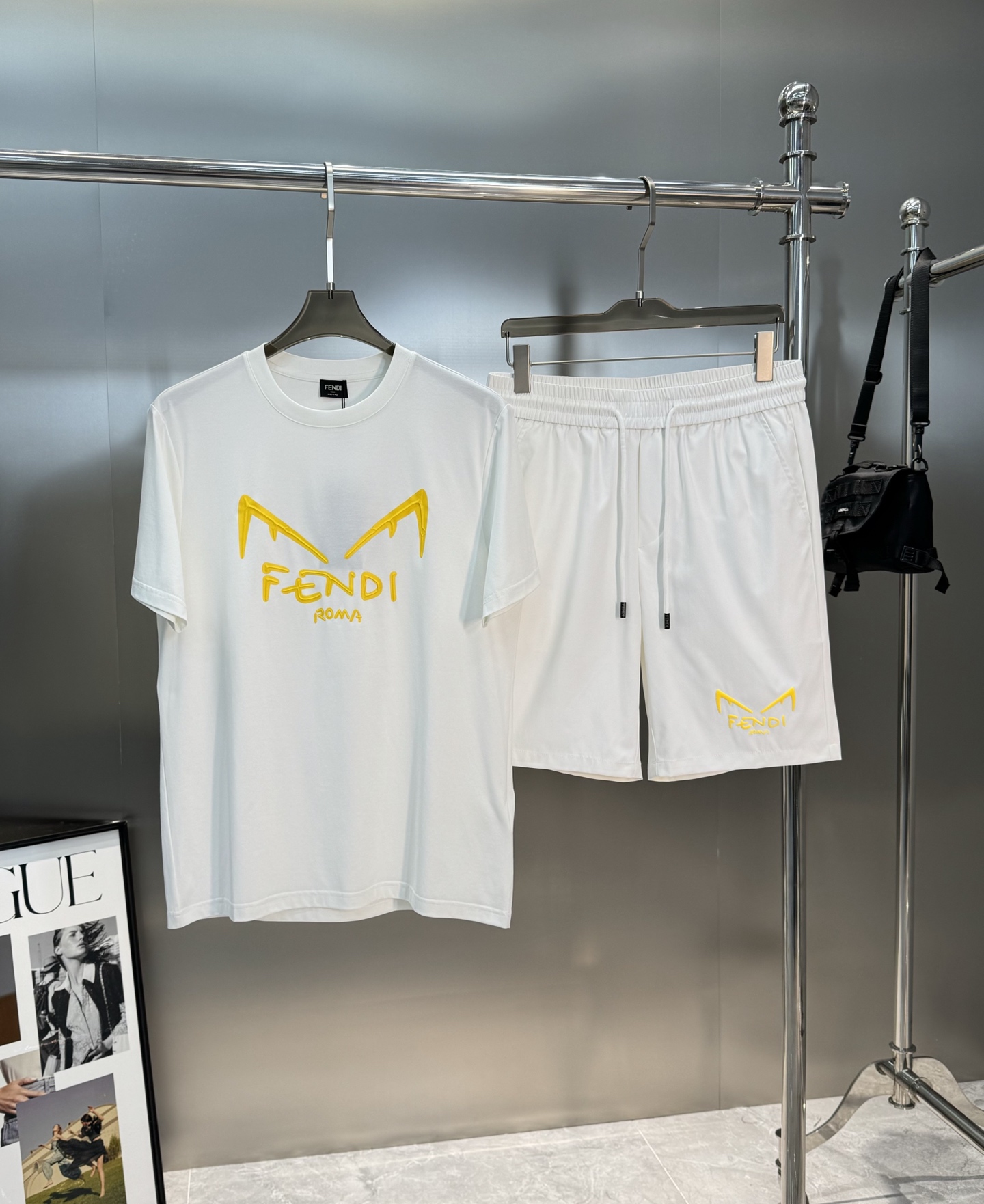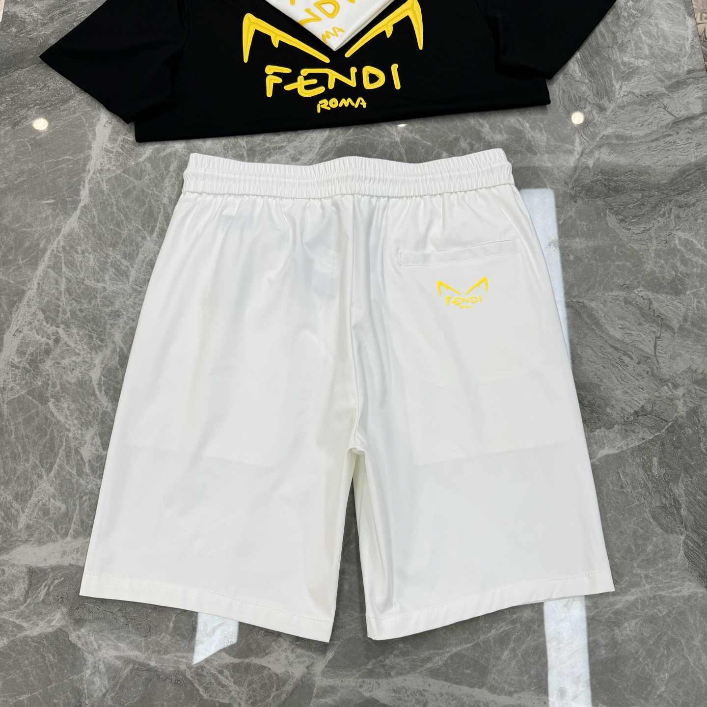FENDI summer men's shorts. Quick-dry fabric, monster print. Colors: black, white, gray. Sizes: M-3XL.