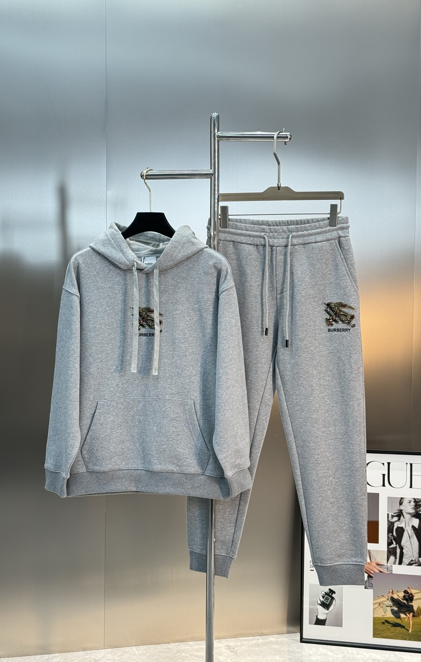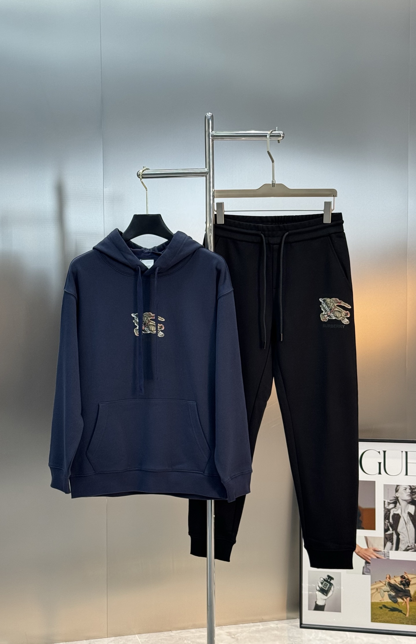 BBR Burberry 25 new sports hooded sweatshirt. 100% cotton, 420g. Hooded top with drawstring, branded horse logo. Elastic waist pants. Colors: black, gray, navy, white. Sizes: M-3XL.