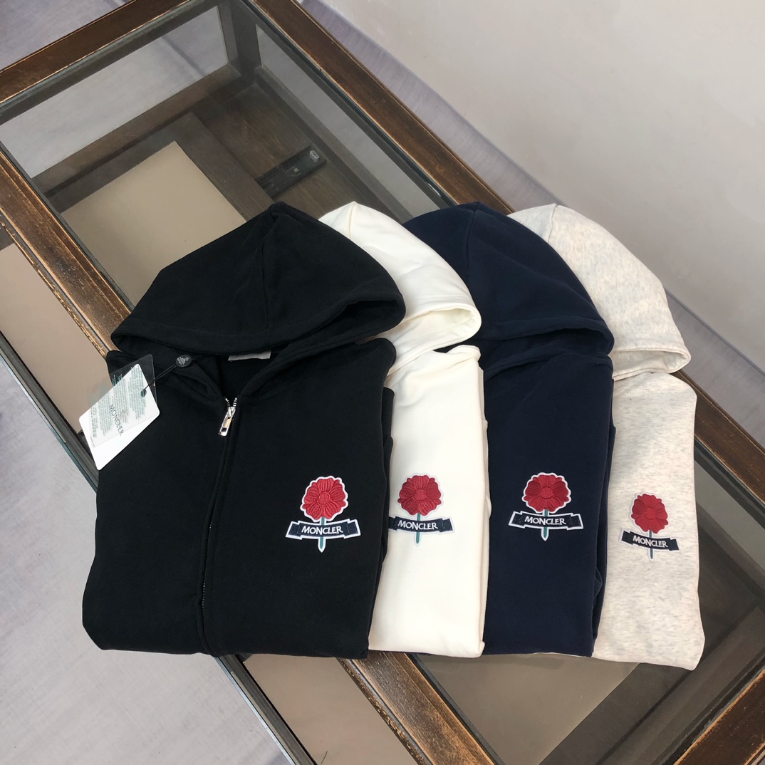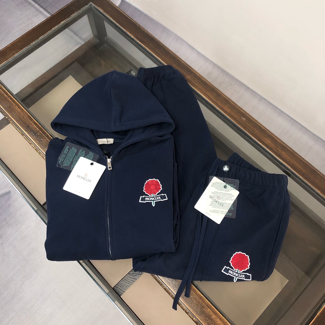 MONCLER 2025 early autumn hoodie & pants set. Custom 420g cotton, breathable, premium fit. Colors: black, white, blue, gray. Sizes: S-XXL.