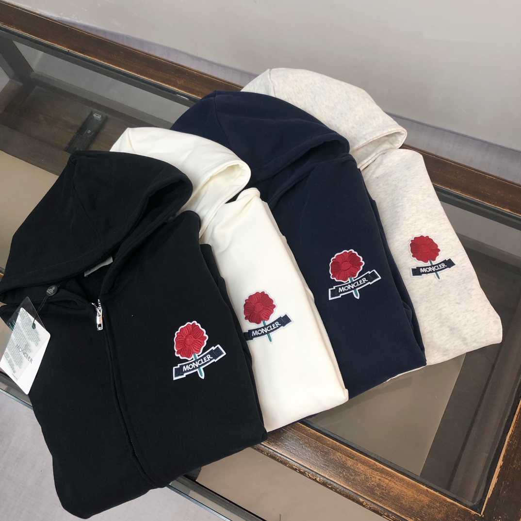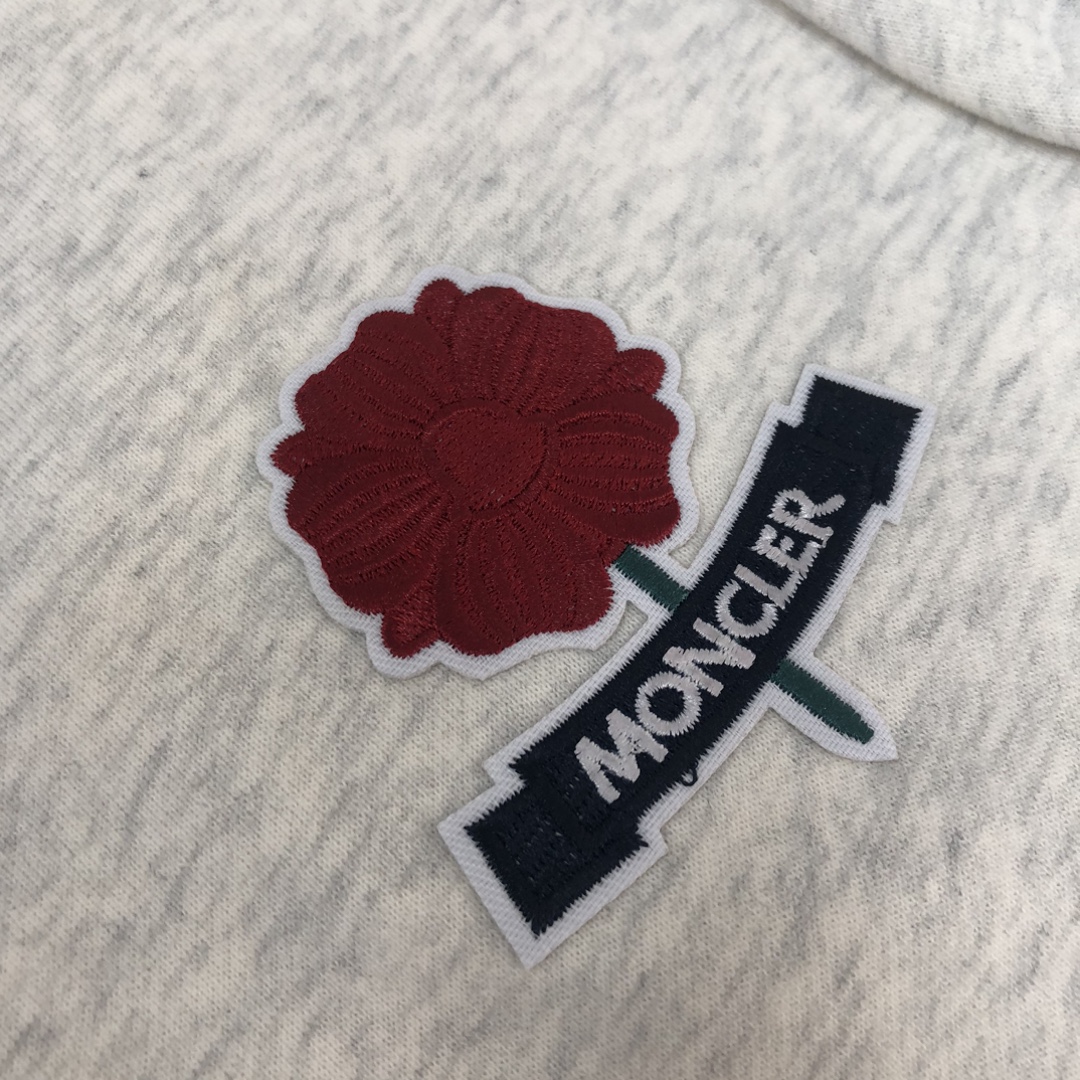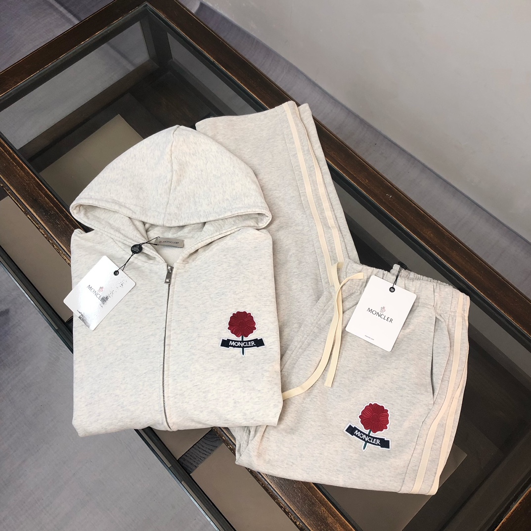 MONCLER 2025 early autumn hoodie and pants set. Custom 420g cotton, breathable. Colors: black, white, blue, gray. Sizes: S to XXL.
