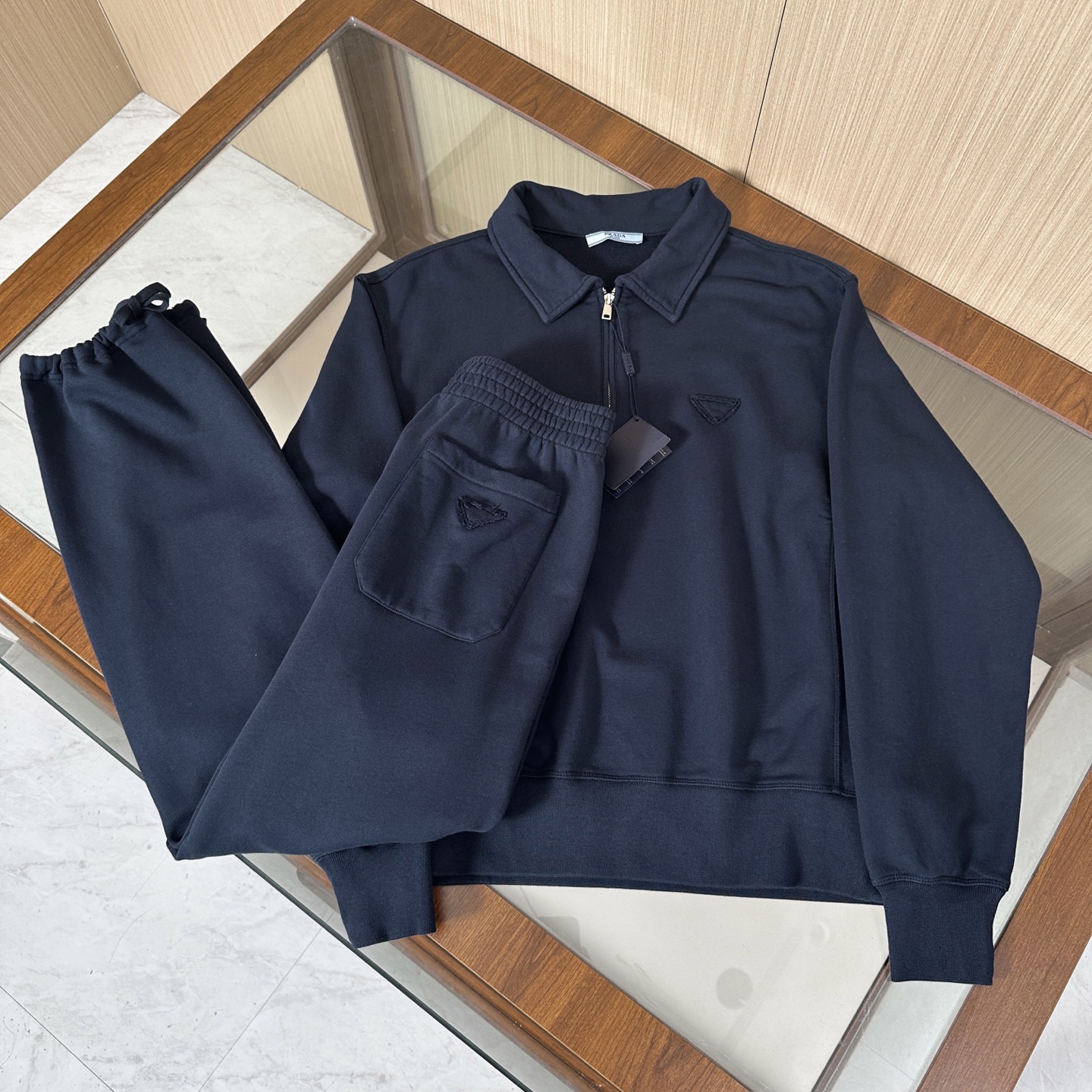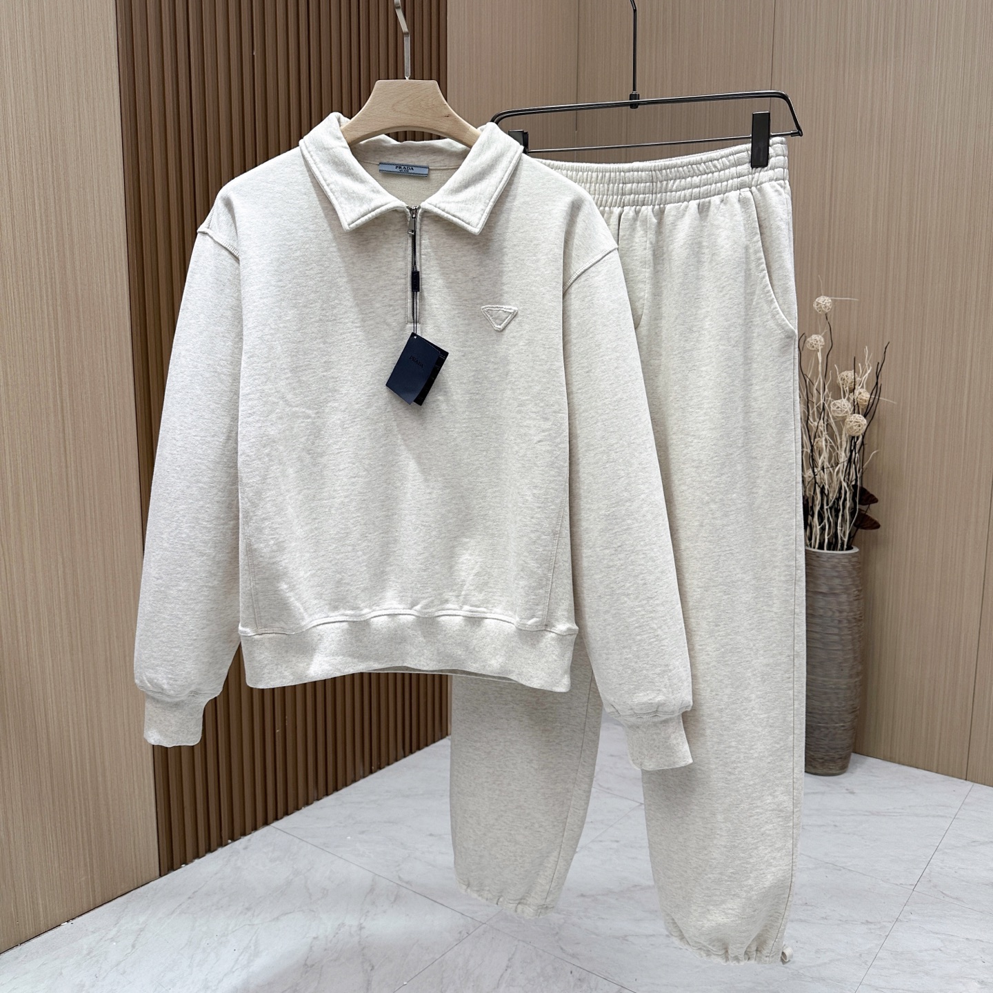 Prada autumn-winter casual set. Official style, exclusive craftsmanship. Imported 100% cotton, rich colors, ribbed sides, wrinkle-resistant. Sizes S-XXL. Colors: brown, blue, gray.