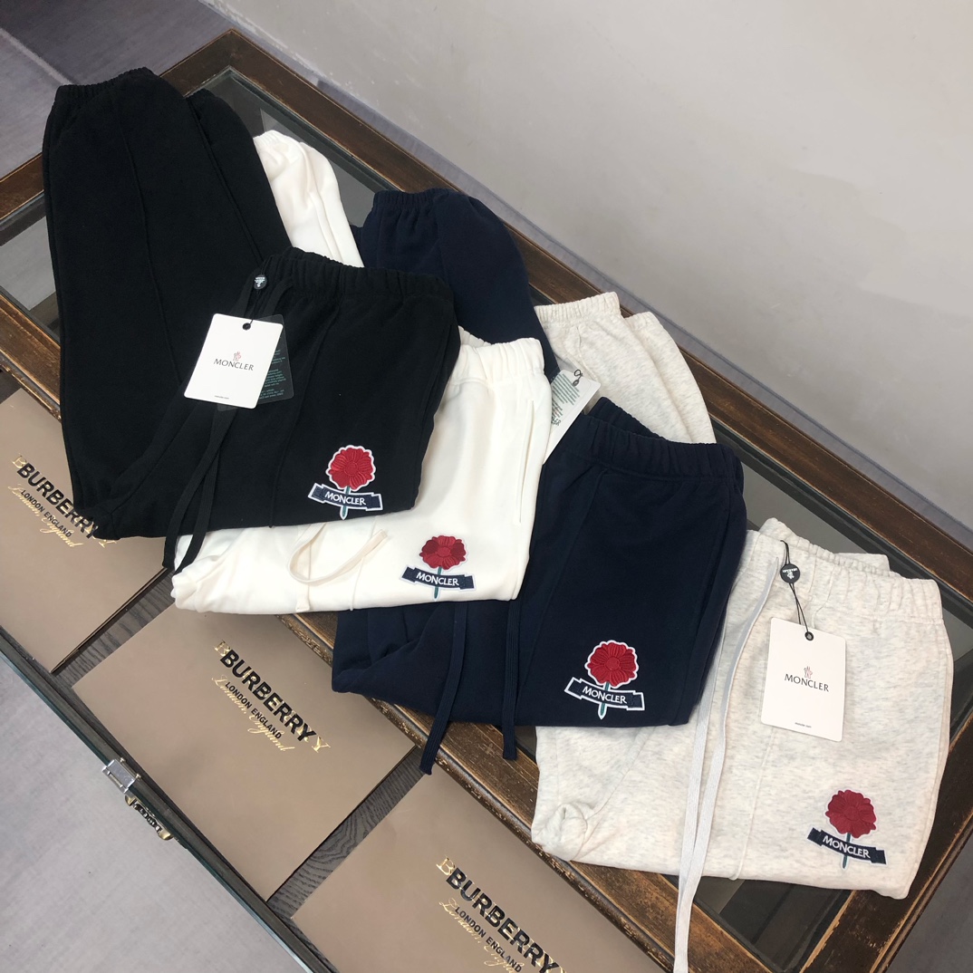MONCLER 2025 early autumn couples sweatshirt set. Custom 420g cotton, breathable. Colors: black, white, blue, gray. Sizes: S-XXL.