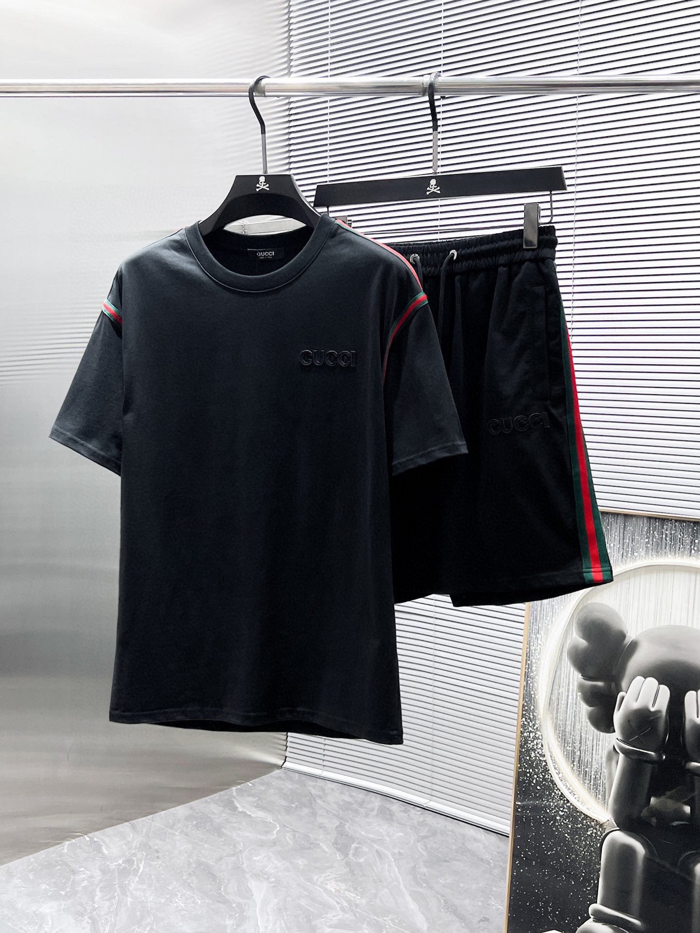 GUCCI 2025 short sleeve t-shirt and shorts set. Round neck, pure cotton, breathable and comfortable. Classic logo, versatile style. Sizes: M-3XL.