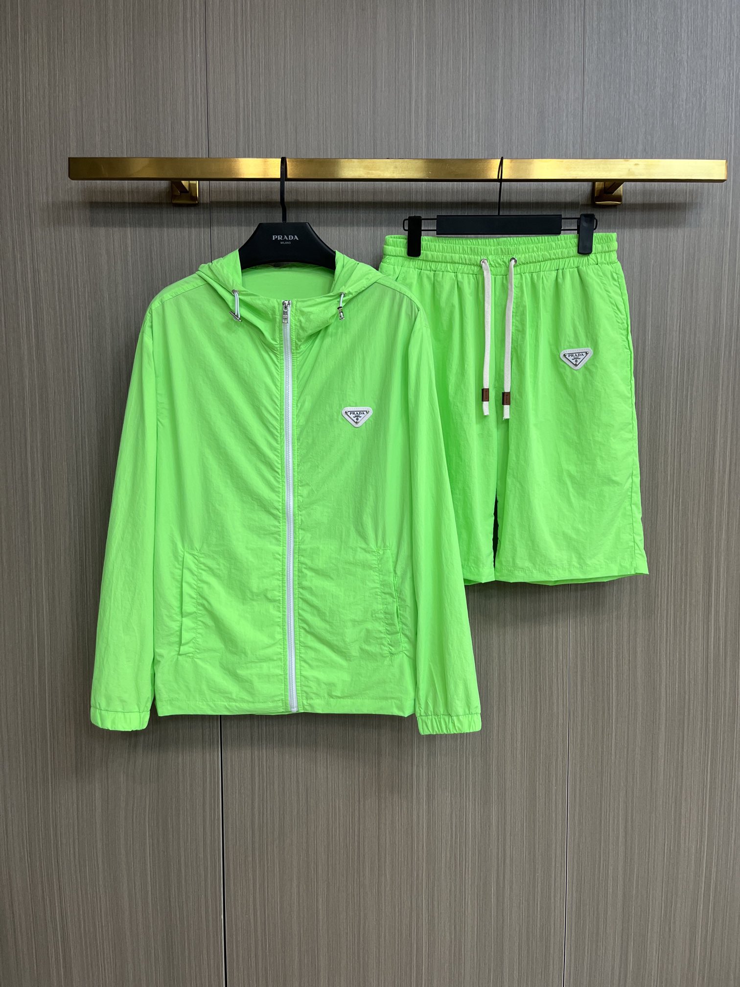 Prada 2025 summer sun protection shorts set. Overseas edition, luxury custom fit. Soft, breathable imported fabric. Sizes M-XXXL.