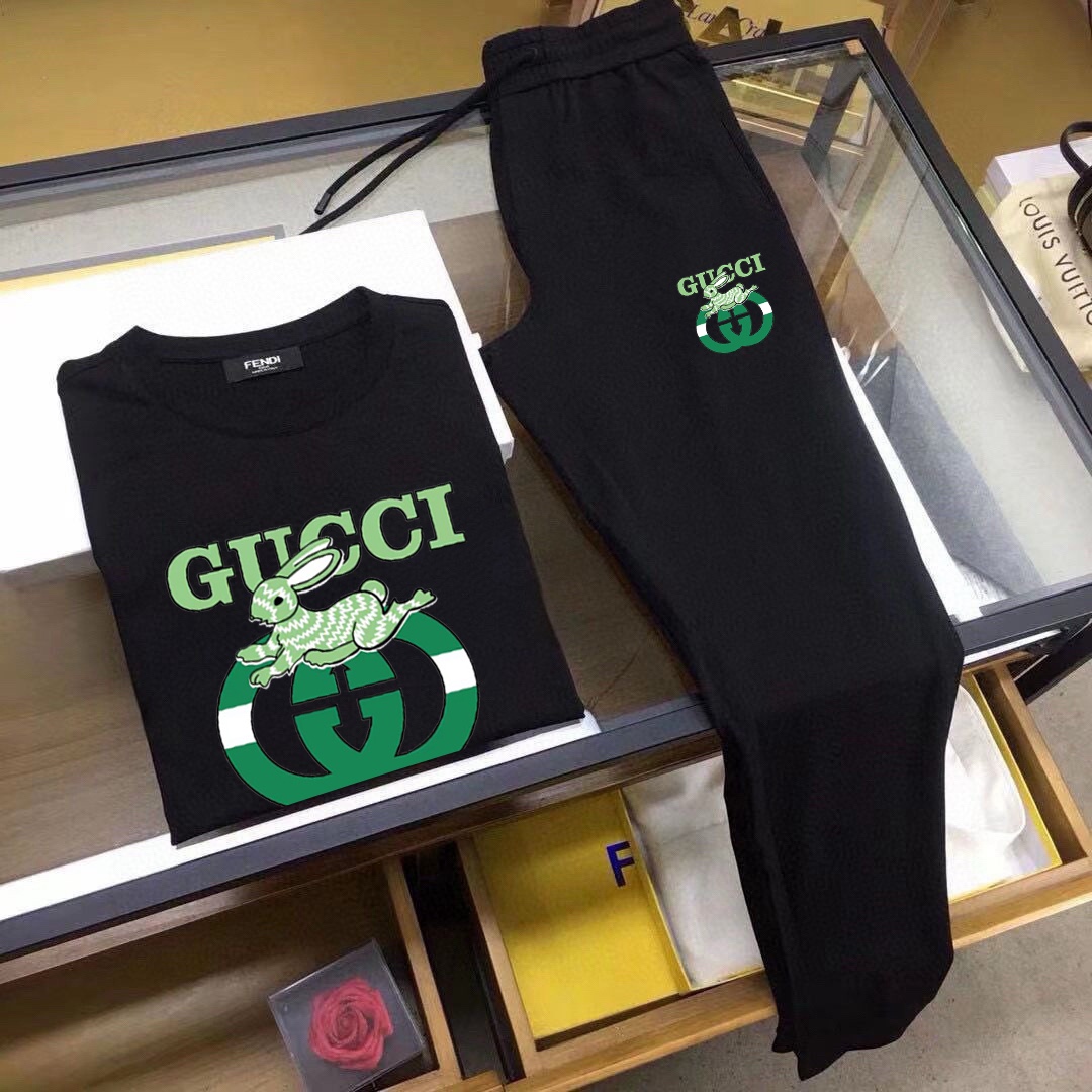 GUCCI men's summer high-quality set. Imported fabric, trendy, versatile. Sizes M-5XL.