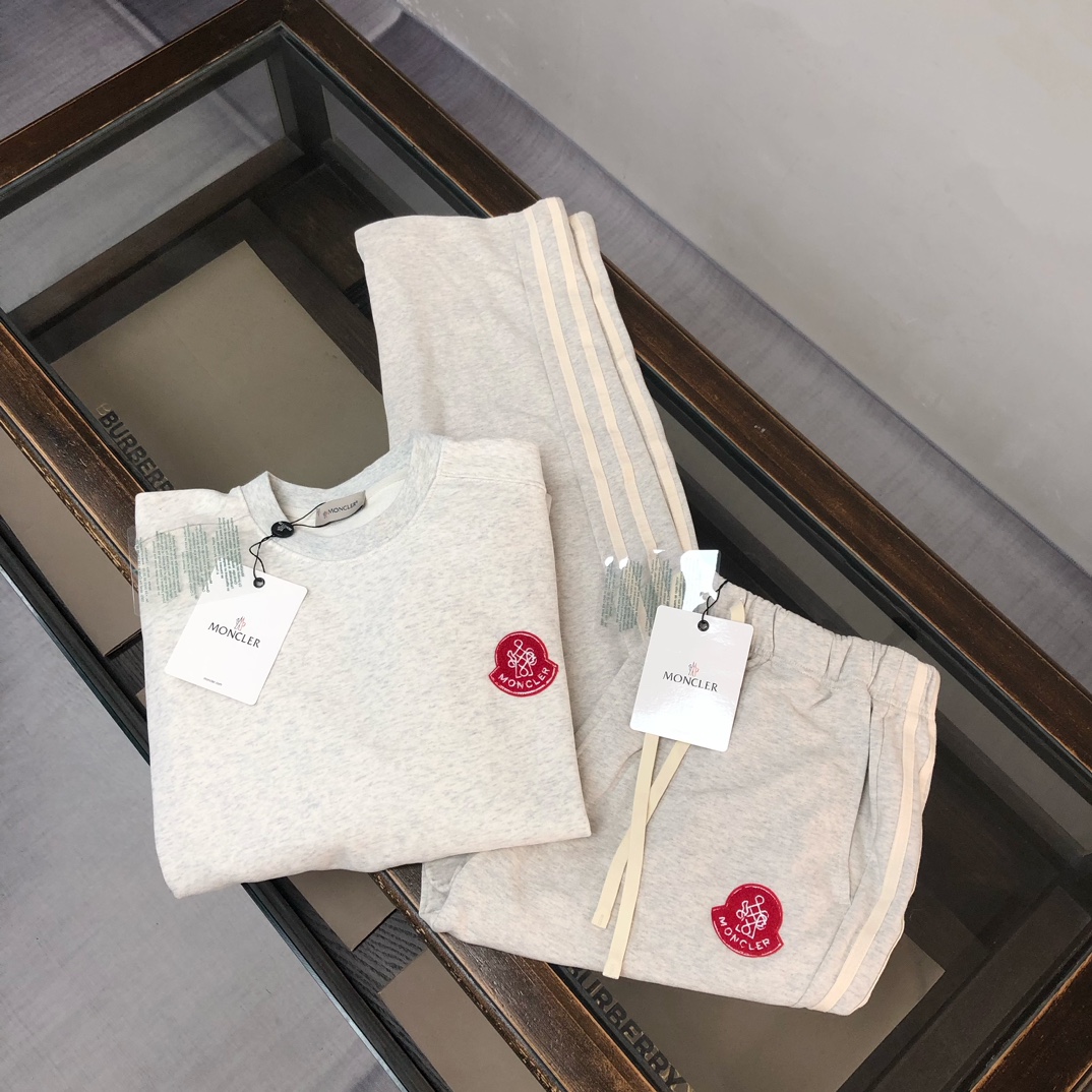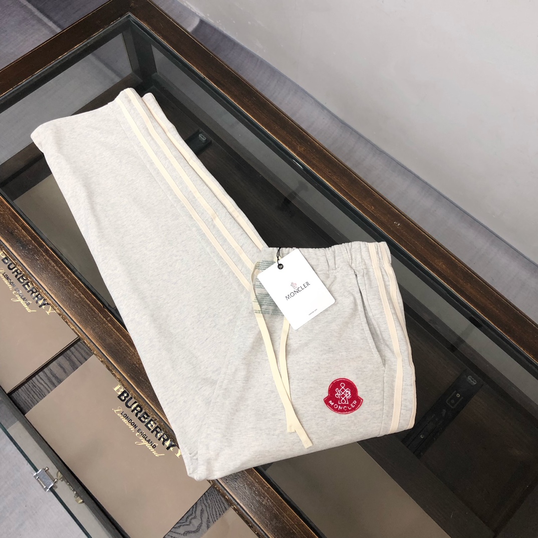 MON*CLER 2025 early autumn couples sweatshirt & straight-leg pants set. Custom 420g cotton, breathable. Colors: black, white, blue, gray. Sizes: S-XXL.