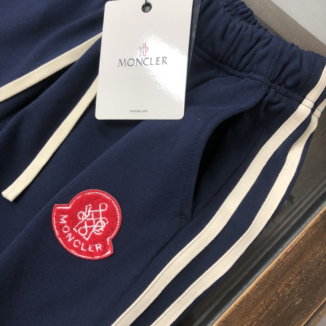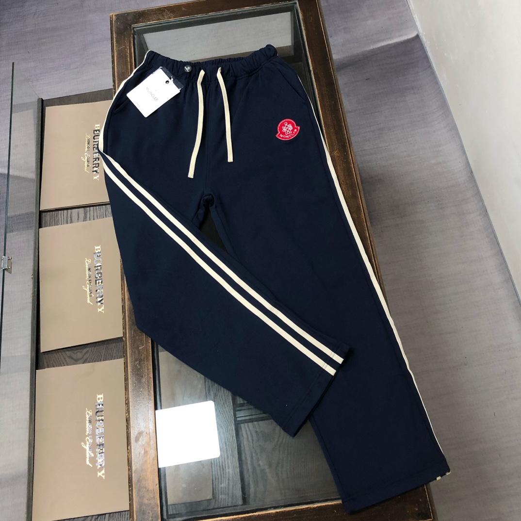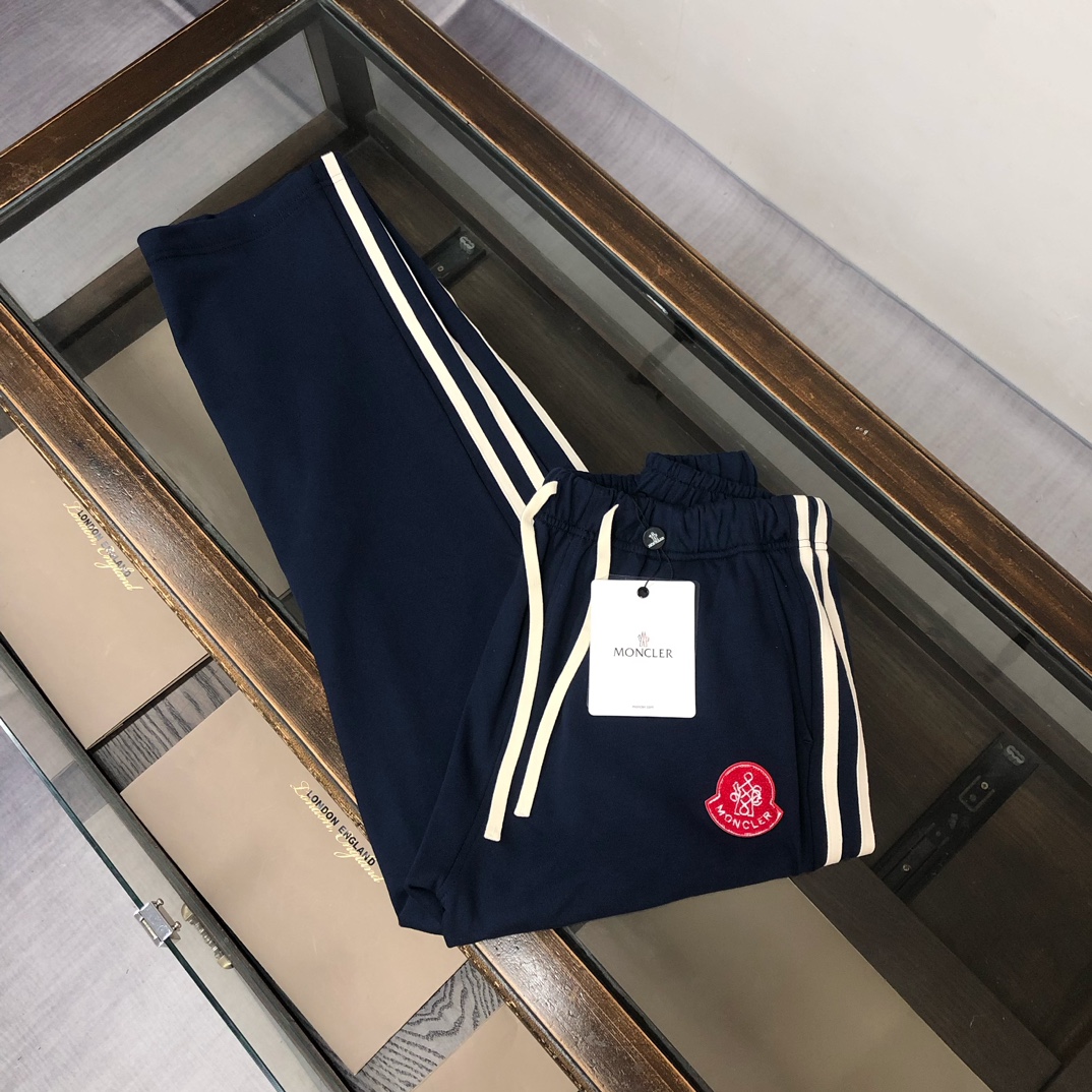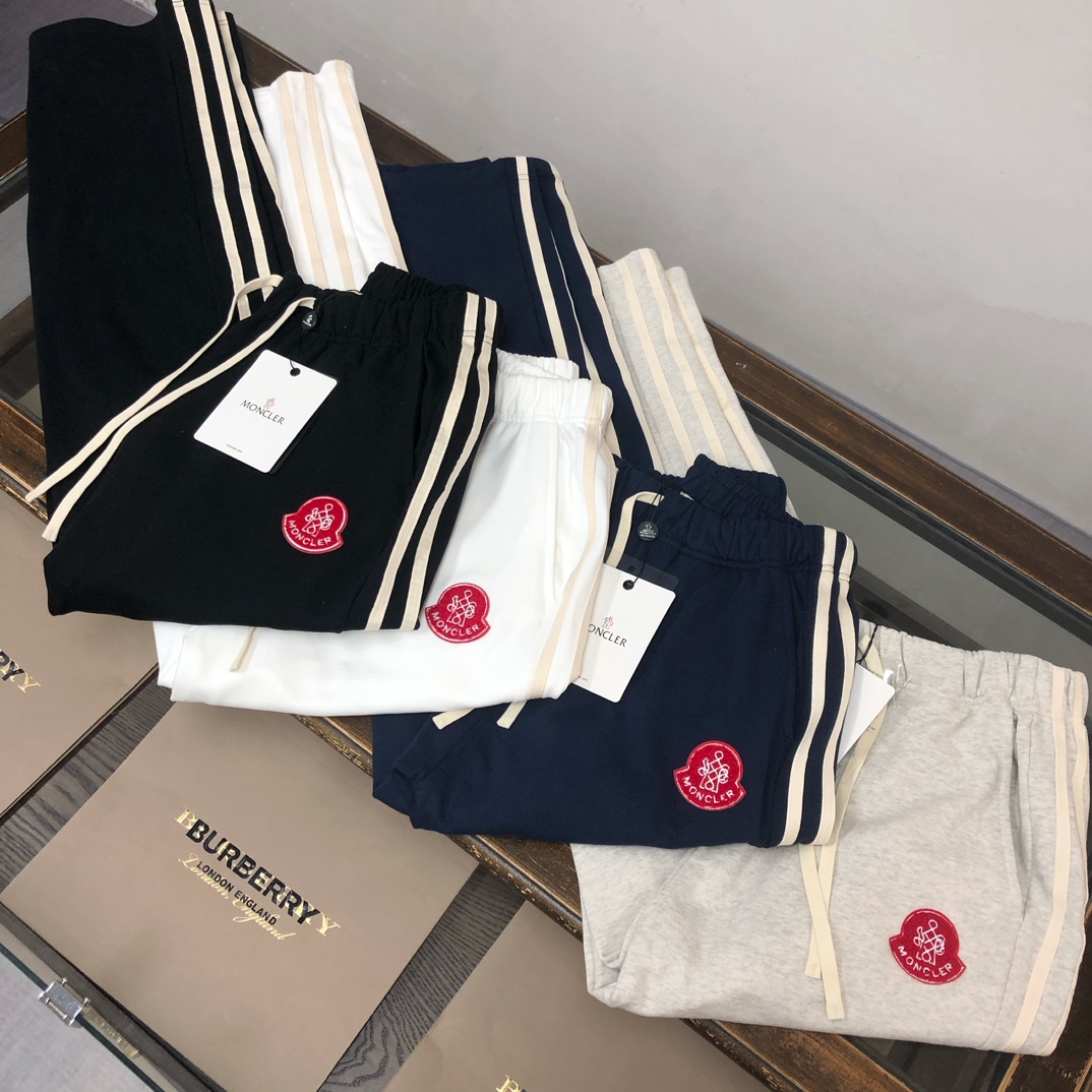 MON*CLER 2025 early autumn couples sweatshirt & straight-leg pants set. Custom 420g washed cotton, 3D cut, breathable. Colors: black, white, blue, gray. Sizes: S-XXL.