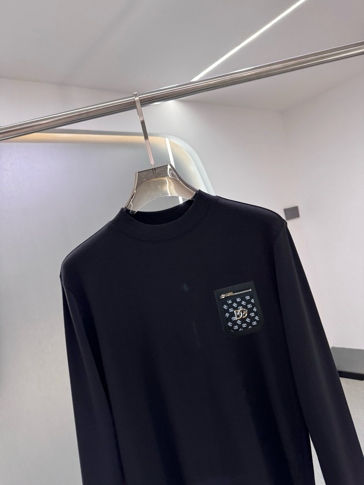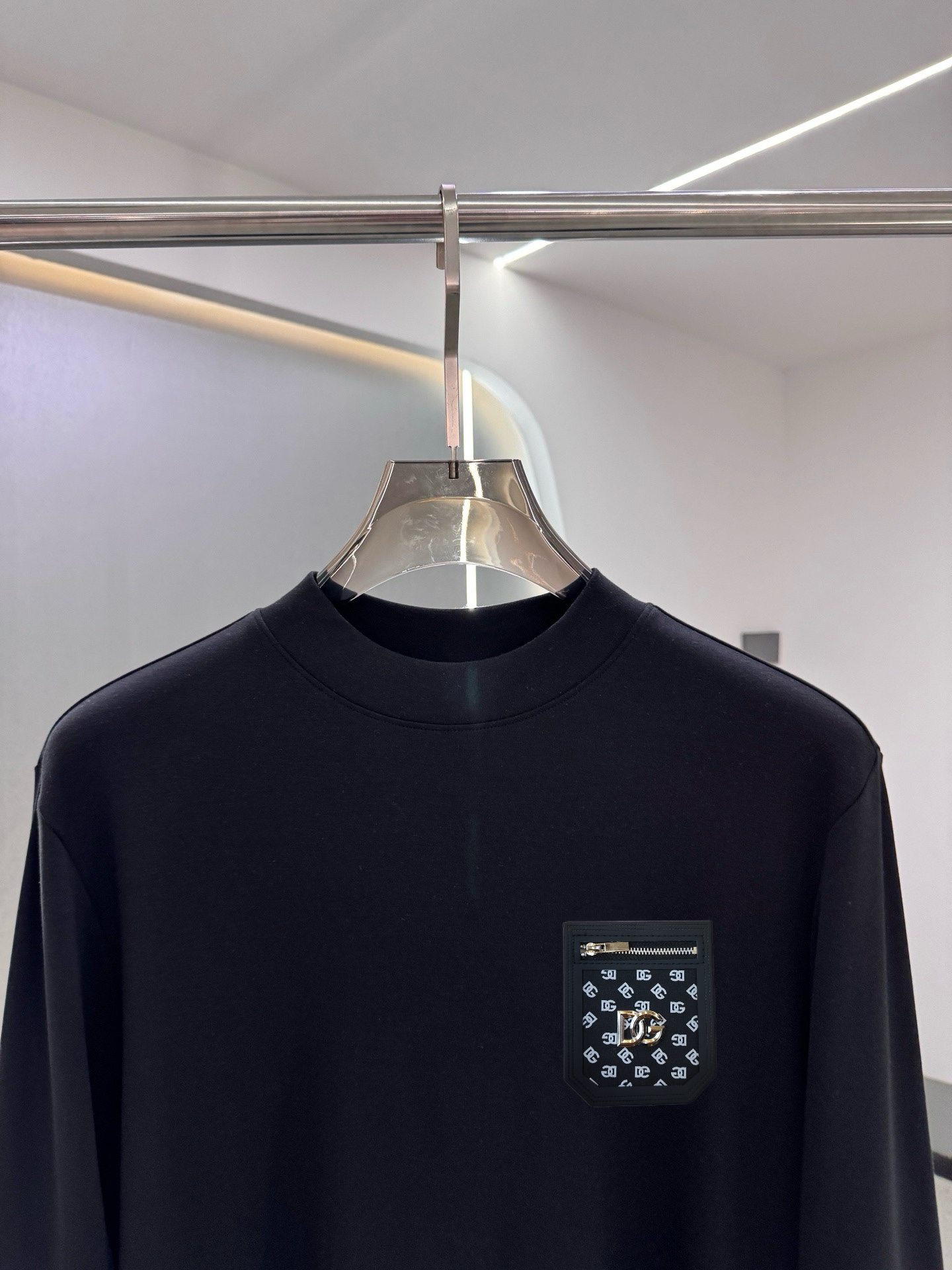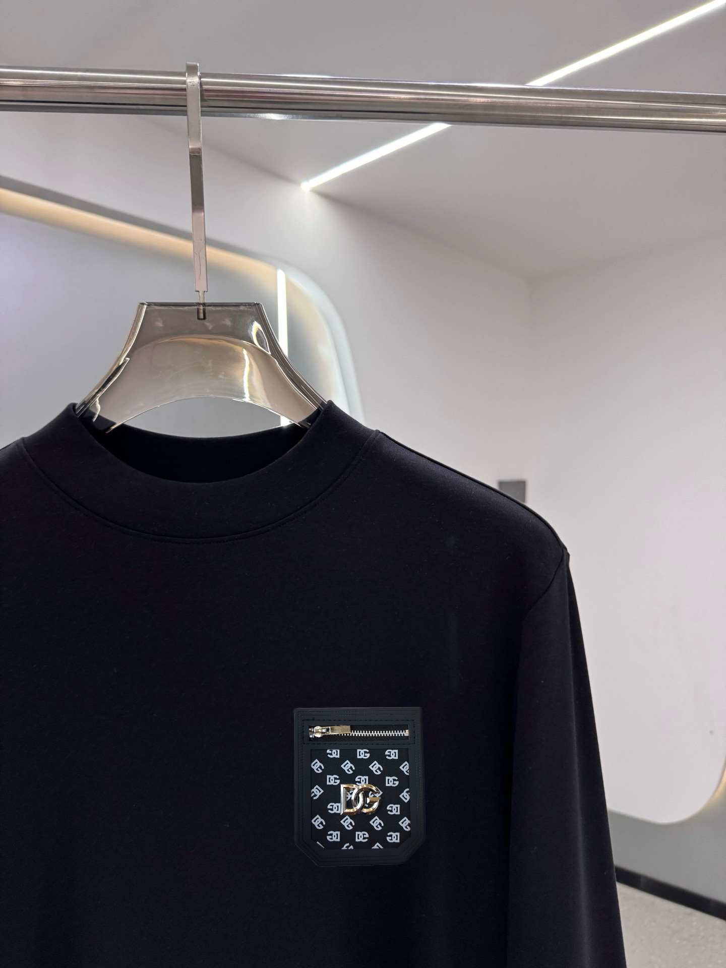 DG 2025 Autumn/Winter Men's Latest Trade Order Turtleneck Base Shirt, Full Range!! Features logo pattern embroidery design! Custom 100% pure cotton fabric! 330g weight, comfortable and breathable to wear, not stiff, with a rich three-dimensional effect overall. Quality export order, meets the minimalist dressing needs of commuters. Wearing effect is excellent, slimming, and not picky about body shape. Fabric workmanship.... Flawless. Black, White. Sizes: XS-2XL