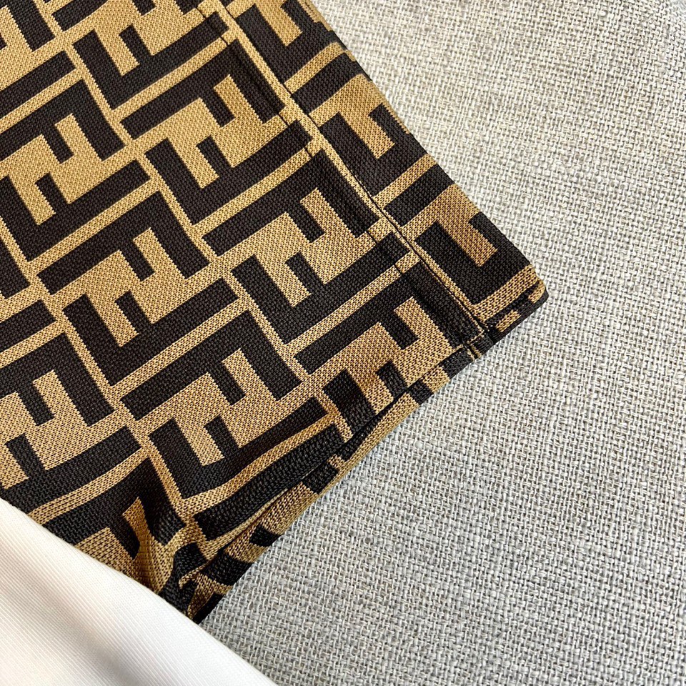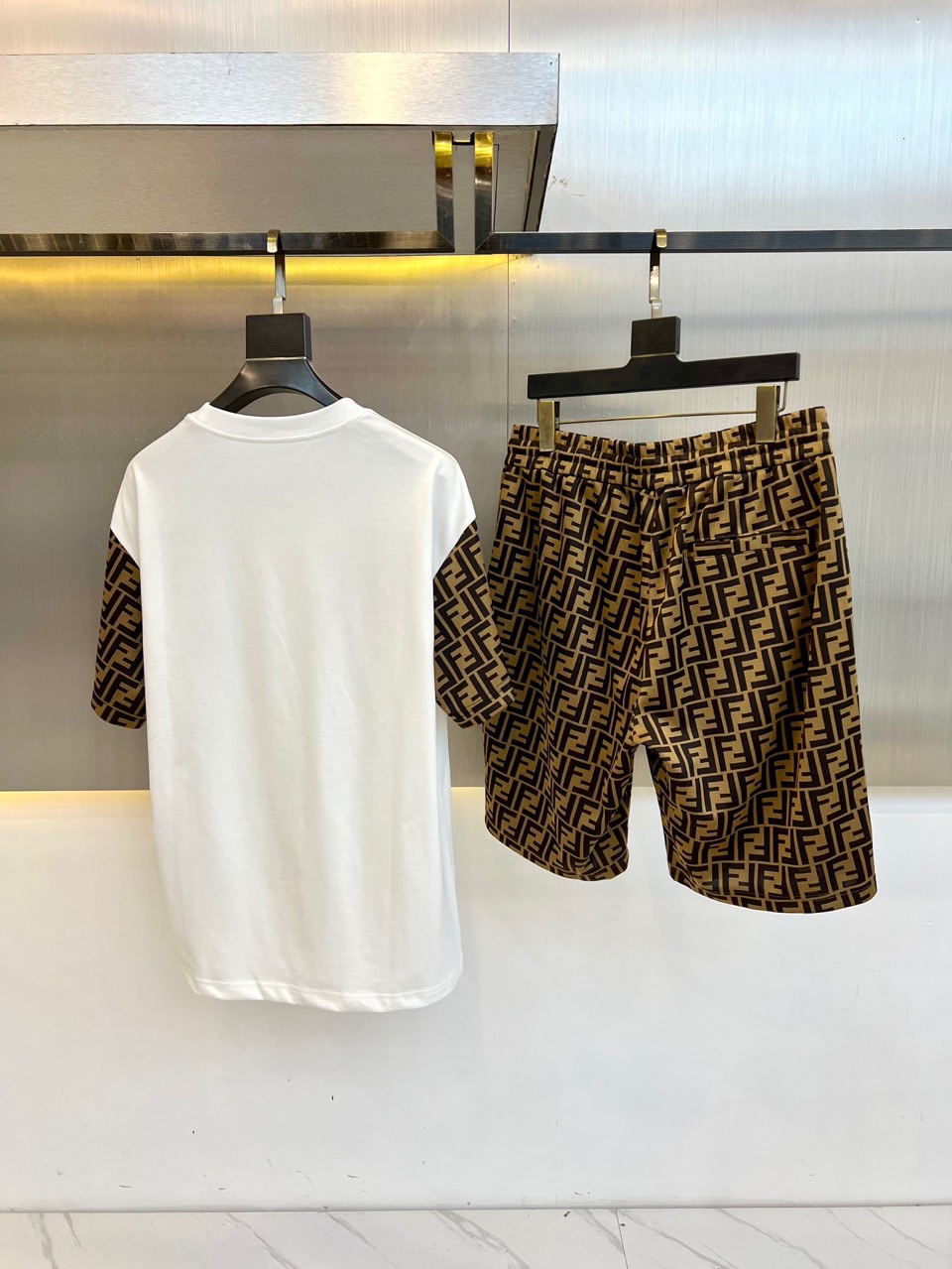 Fendi 2025 short sleeve & shorts set. Top cotton knit, custom ribbing, neat stitching. Stylish, practical design. Sizes 48-56.
