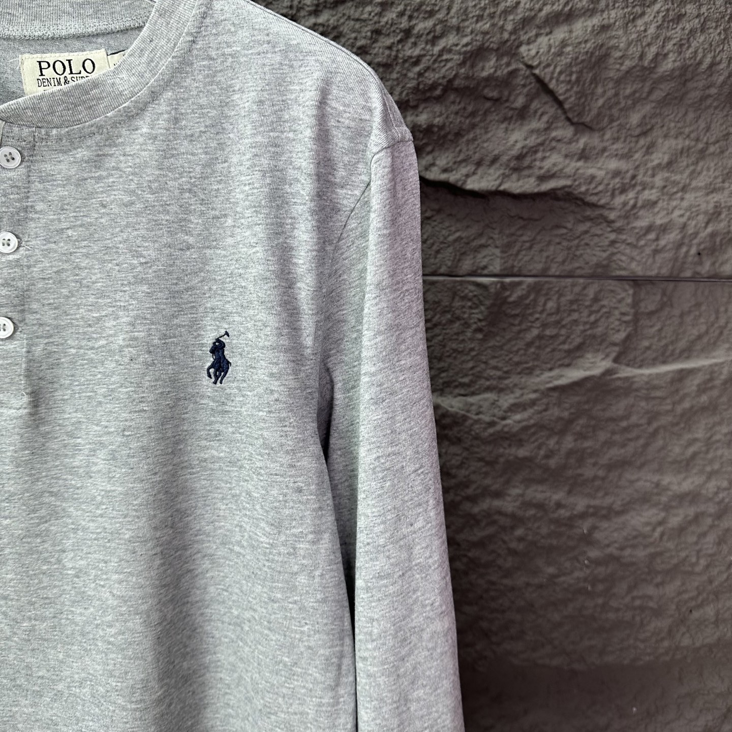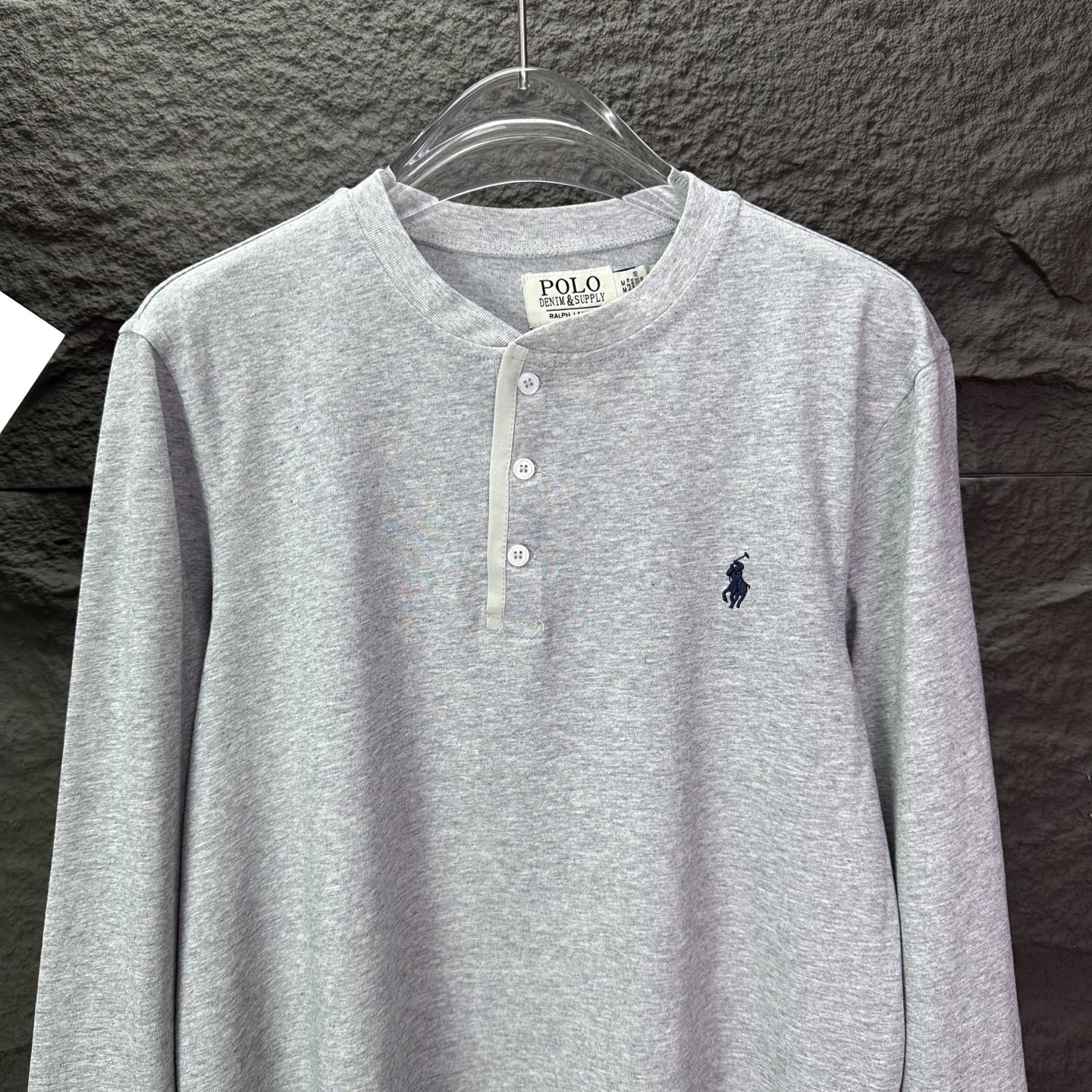 Ralph Lauren 2025 long sleeve T-shirt with classic embroidered logo. Unisex, 280g cotton. Grey, sizes S-XL. High quality, full packaging.