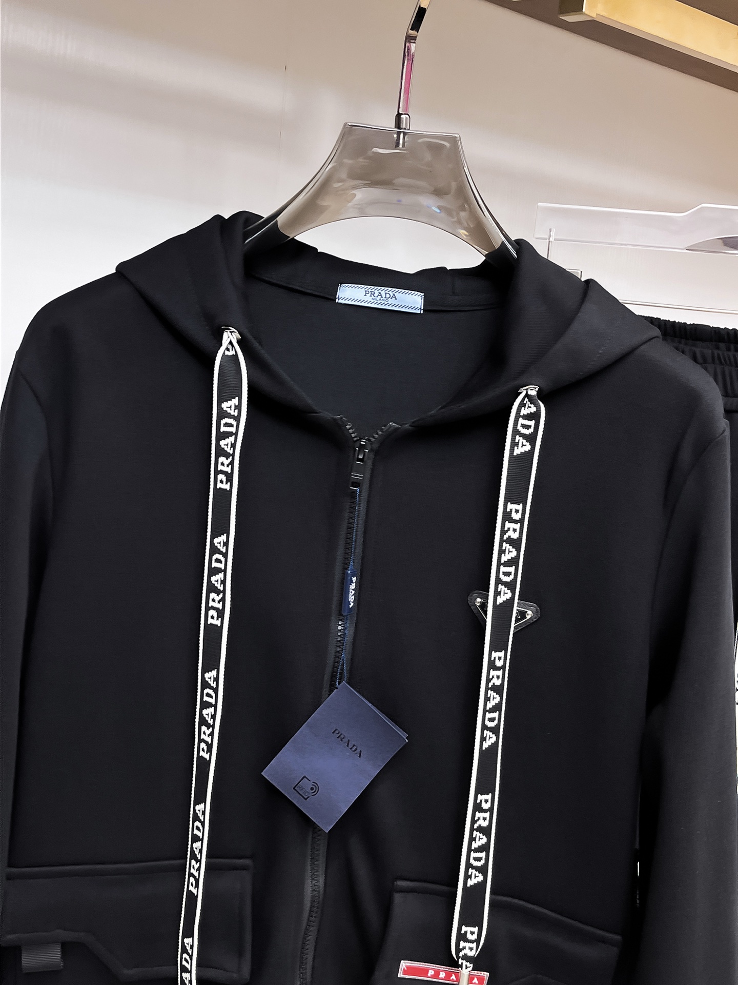 Prada premium zipper cardigan set. Original quality, complete labels. 2025 autumn/winter imported fabric, comfortable, fine workmanship. M-XXXL sizes.