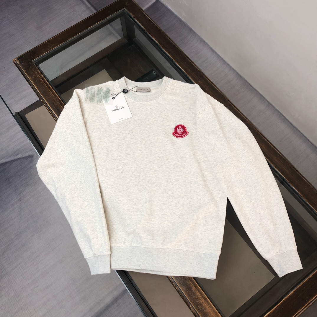 MONCLER 2025 early autumn unisex sweatshirt & pants set. Custom 420g cotton, breathable. Colors: black, white, blue, gray. Sizes: S-XXL.