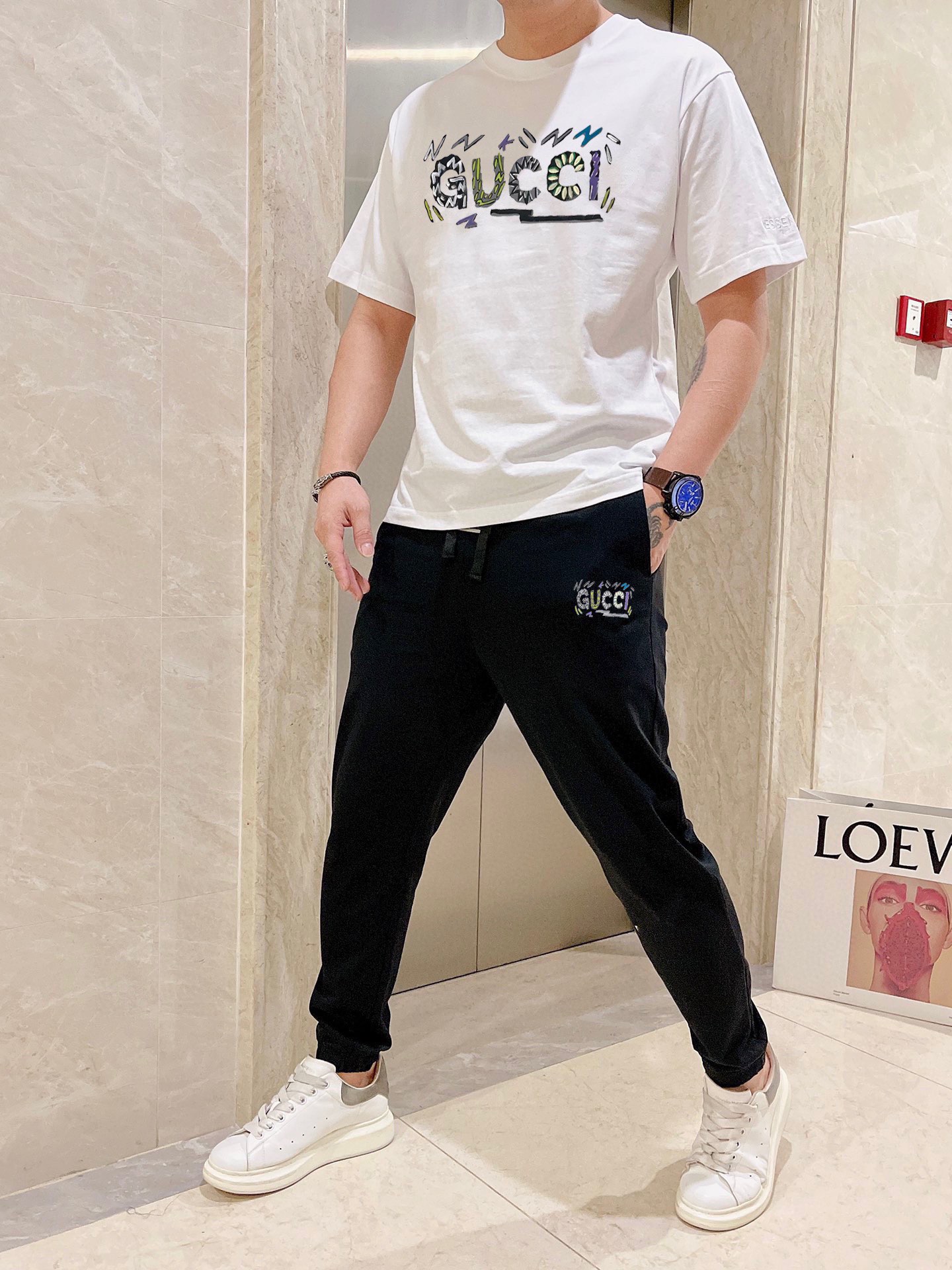 GUCCI 2025 summer men's double mercerized high-quality set. Imported original fabric, fashionable style, precise tailoring. Sizes M-5XL.