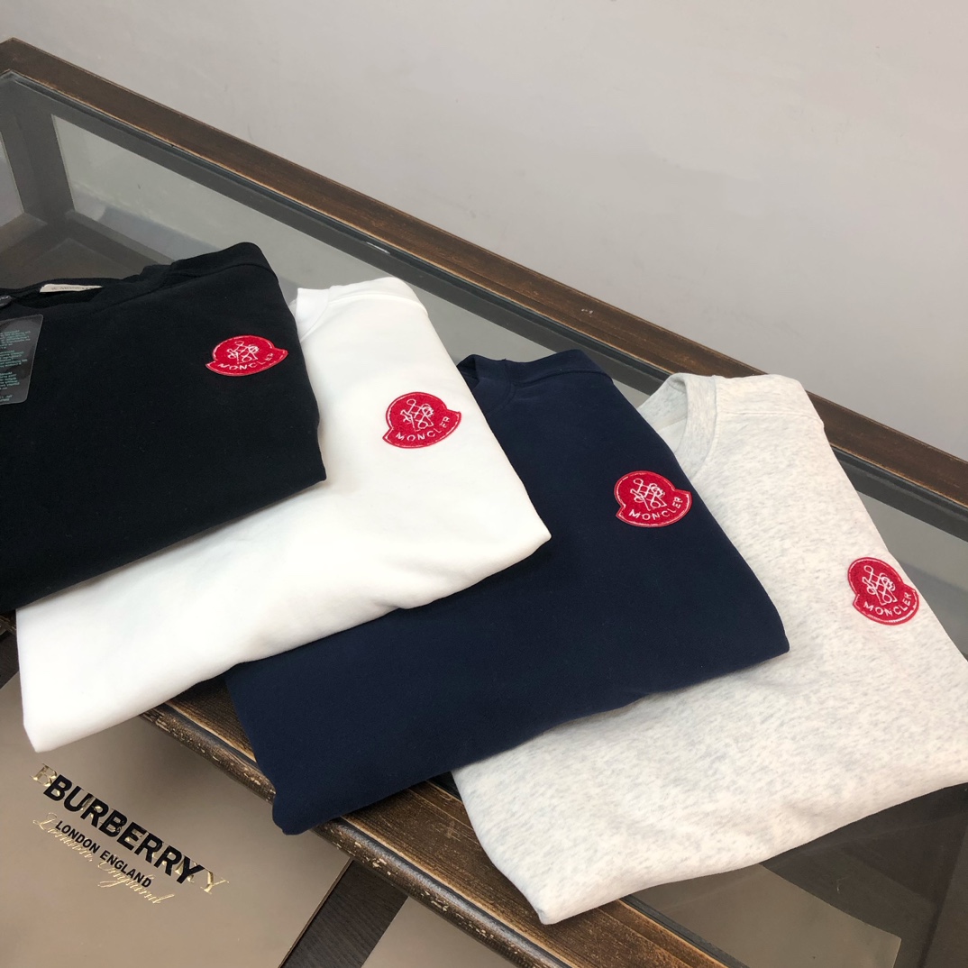 MONCLER 2025 early autumn unisex hoodie and sweatpants set. Custom 420g cotton, breathable. Colors: black, white, blue, gray. Sizes: S-XXL.