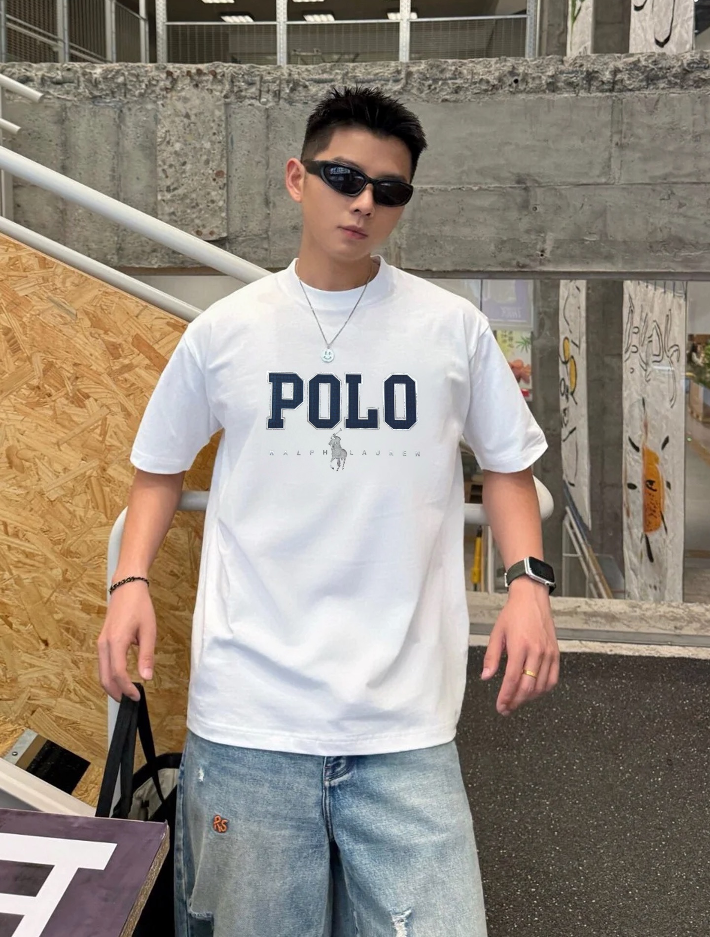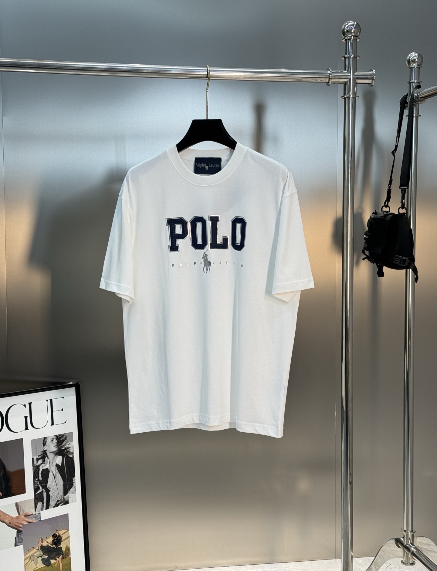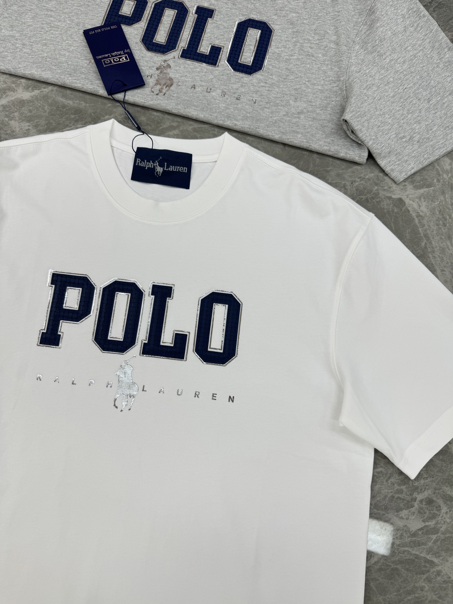 Polo Ralph Lauren 25s round-neck T-shirt. Unisex, trendy. Custom chest graphic, classic G design. 280g cotton. Colors: Black, Grey, White. Sizes: S-3XL.
