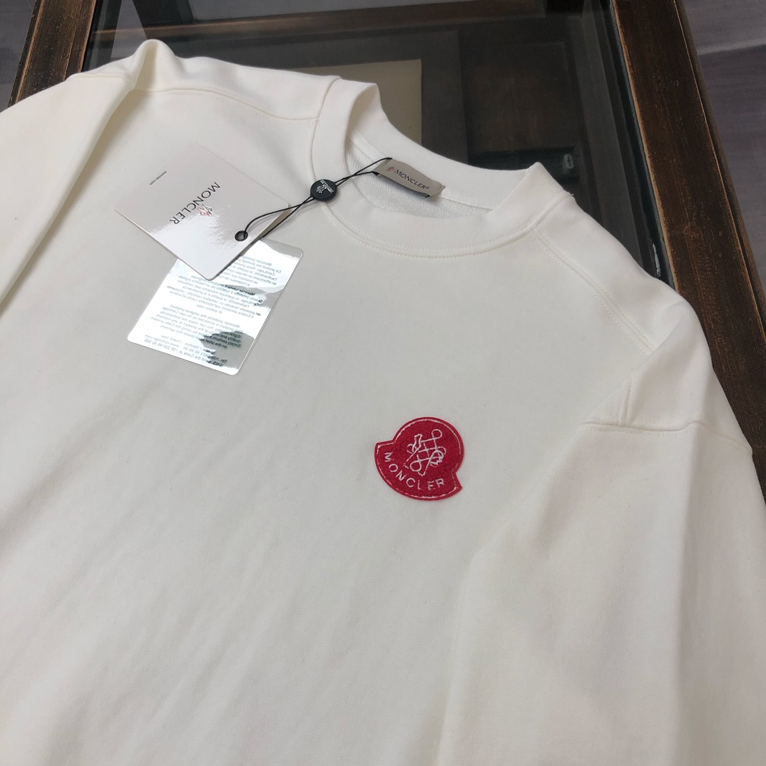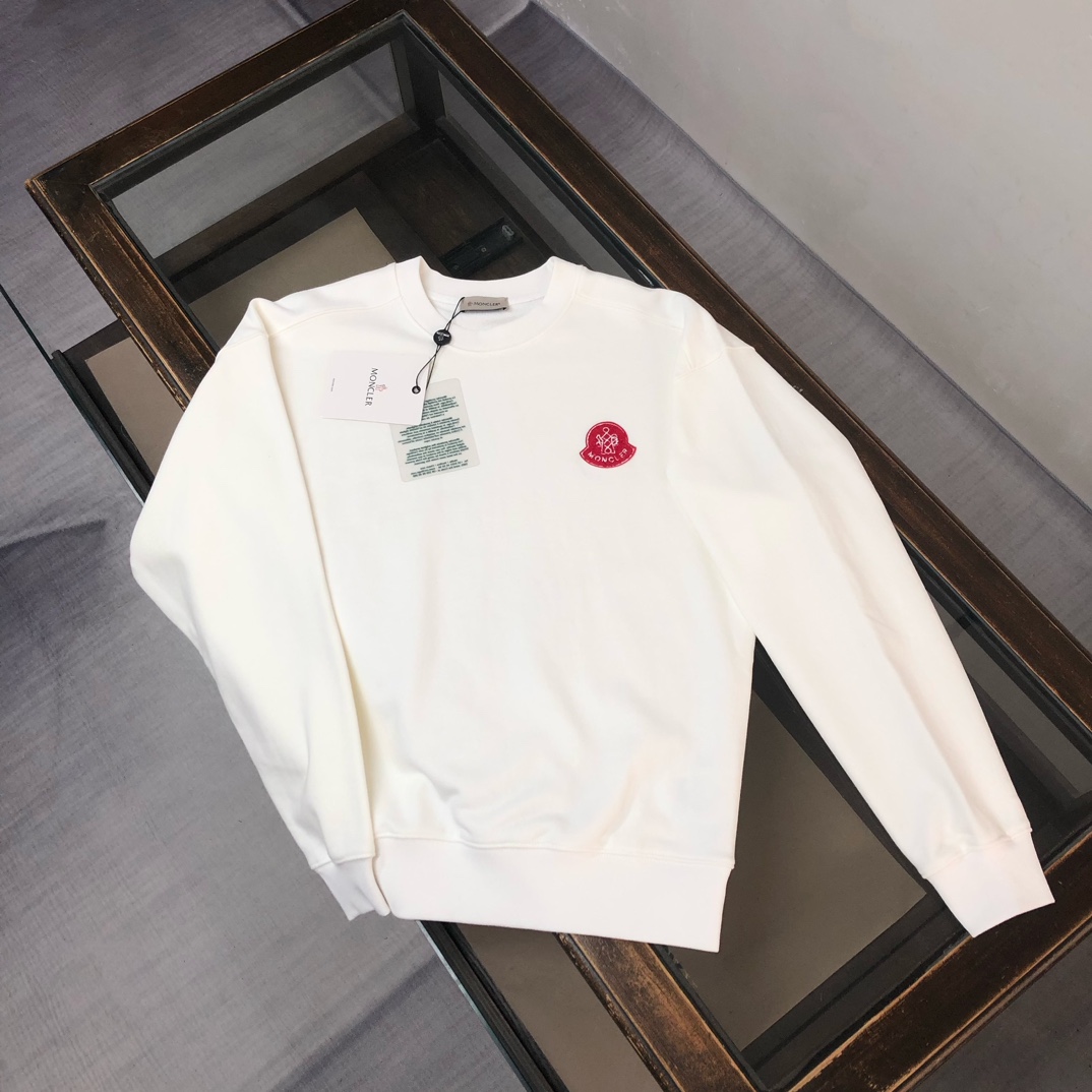 MONCLER 2025 early autumn unisex sweatshirt & pants set. Custom 420g cotton, breathable, logo detail. Colors: Black, White, Blue, Gray. Sizes: S-XXL.