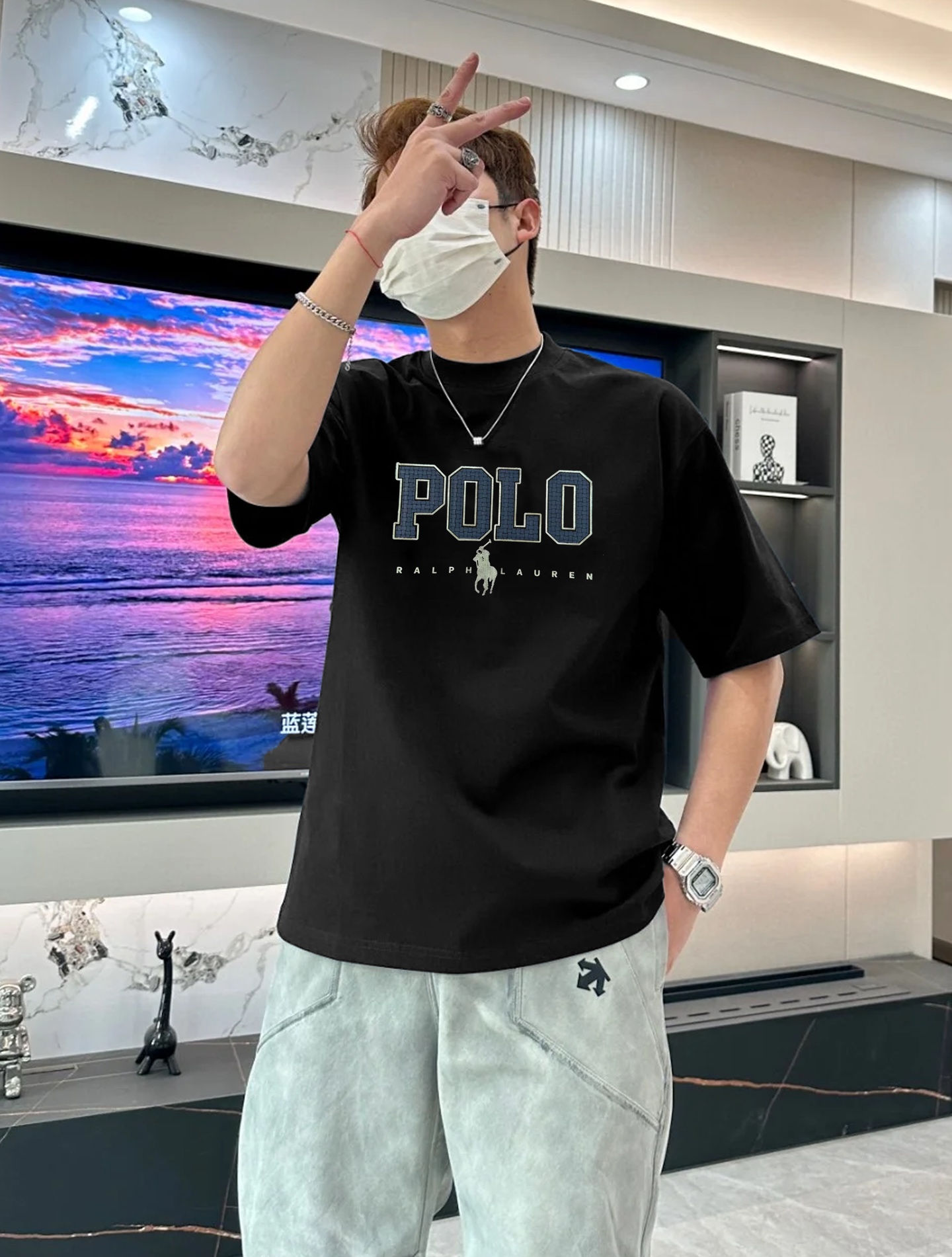 Polo Ralph Lauren 25s round-neck T-shirt. Unisex, 280g cotton. Colors: black, gray, white. Sizes: S-3XL. Youthful design with classic G logo.
