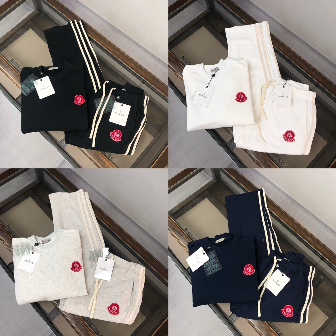 MONCLER 2025 early autumn unisex sweatshirt set. Custom 420g cotton, breathable. Colors: black, white, blue, gray. Sizes: S-XXL.
