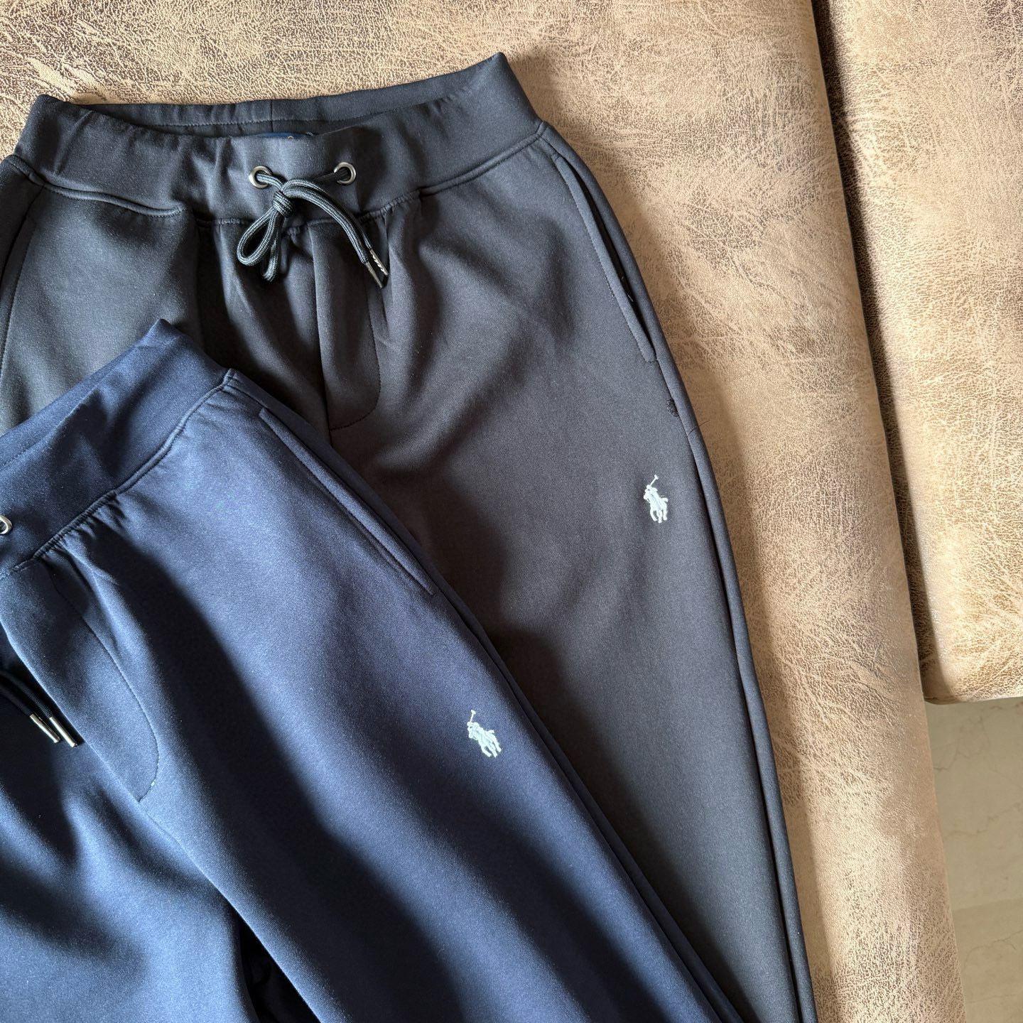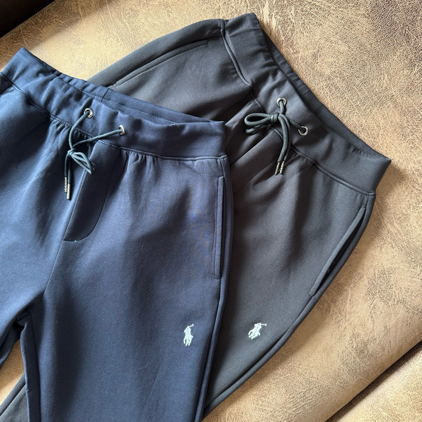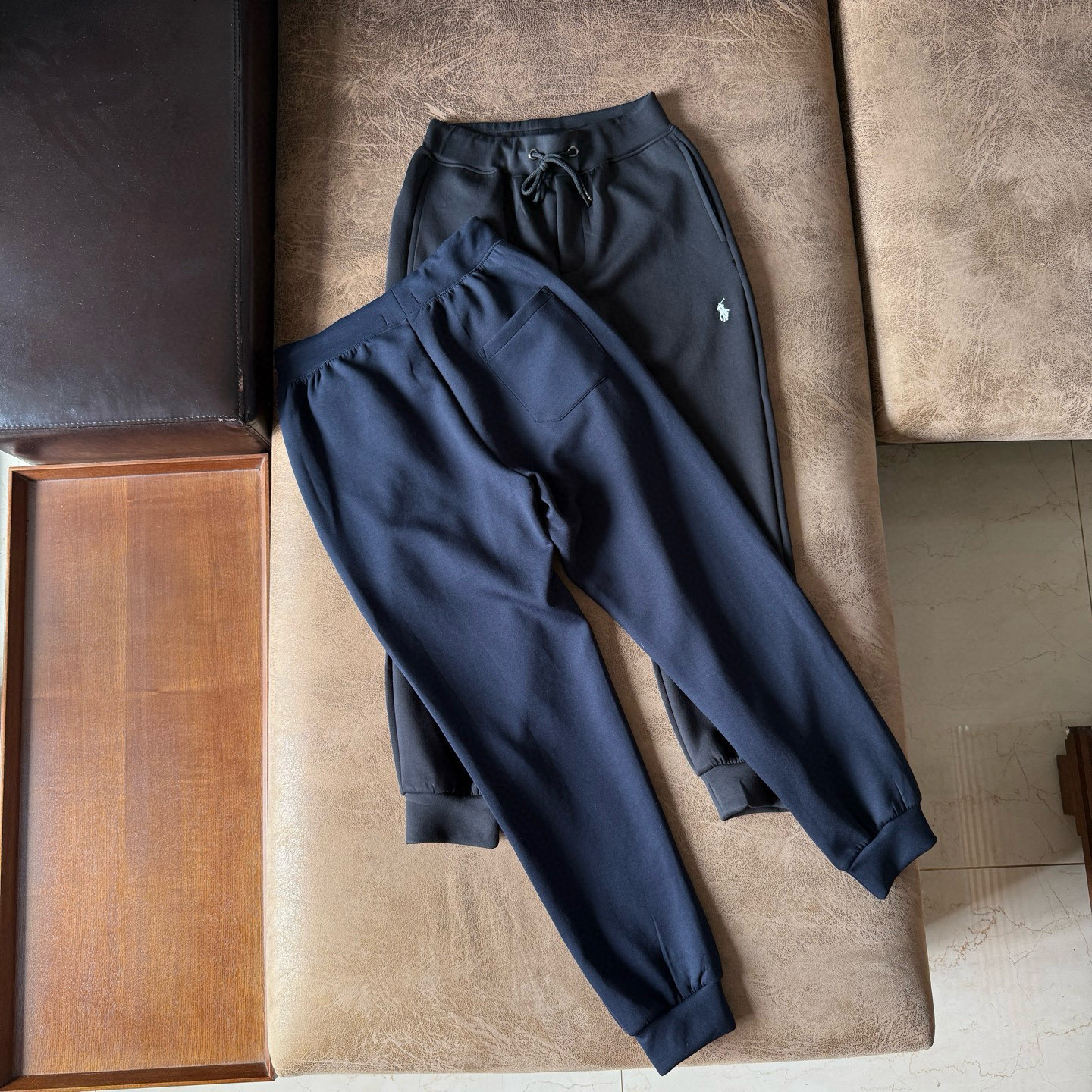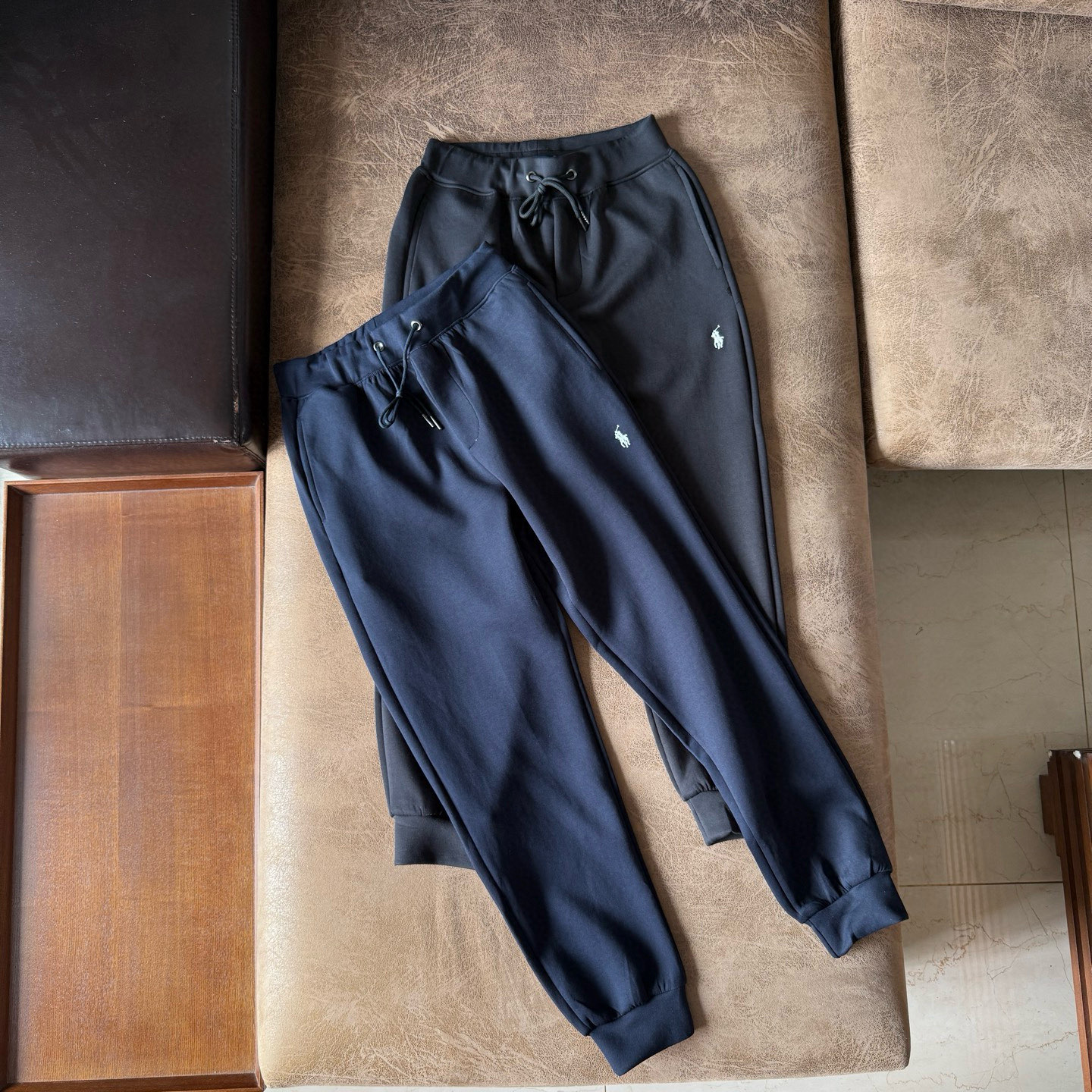 Ralph Lauren men's classic double-sided knit joggers. 300g太空棉, 75%棉25%涤纶. 修身版型, 抽绳腰, 束脚口. 颜色: 黑色, 藏青. 多尺寸可选.