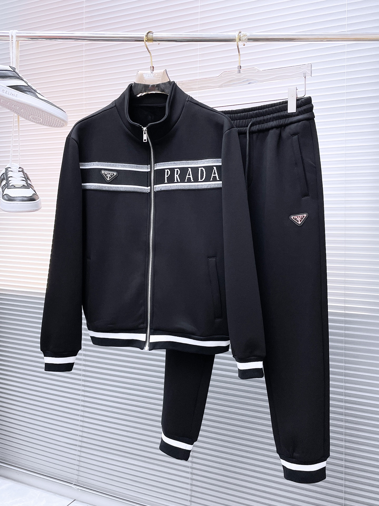 Prada fleece top set. 2025 autumn/winter imported luxury, perfect lining, comfortable fit. Premium custom fabric, stylish design. Sizes M-XXXL.