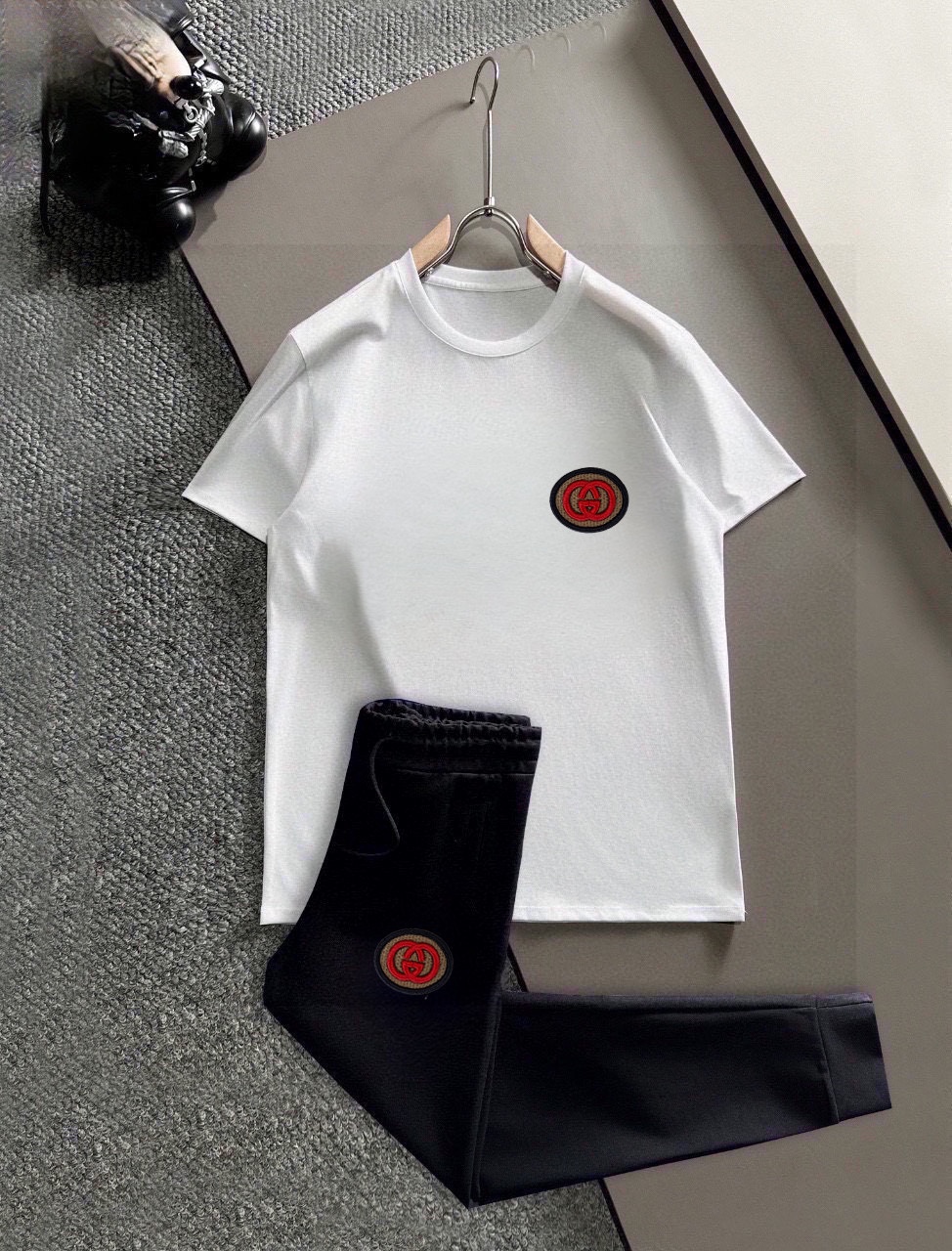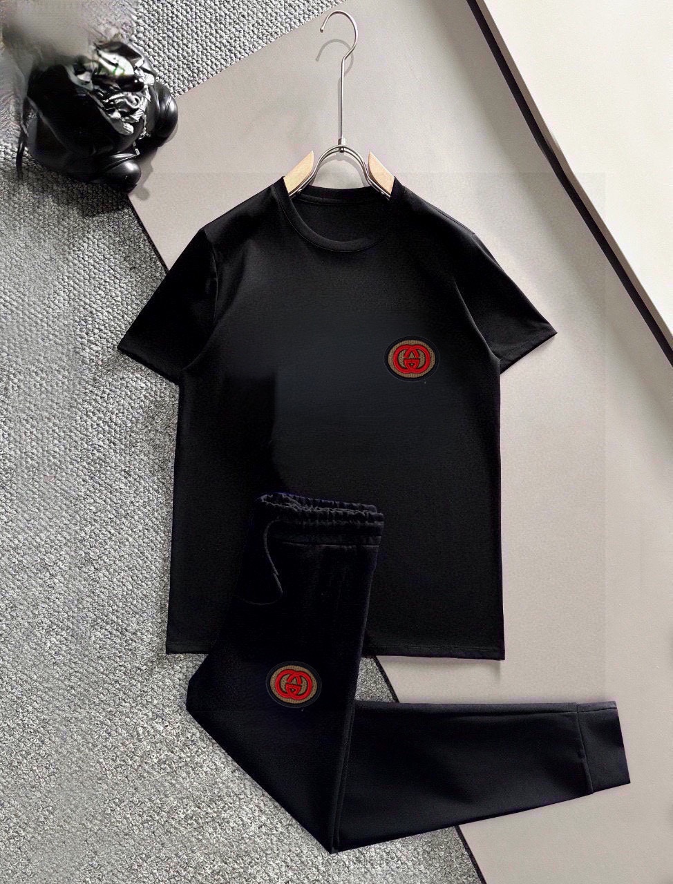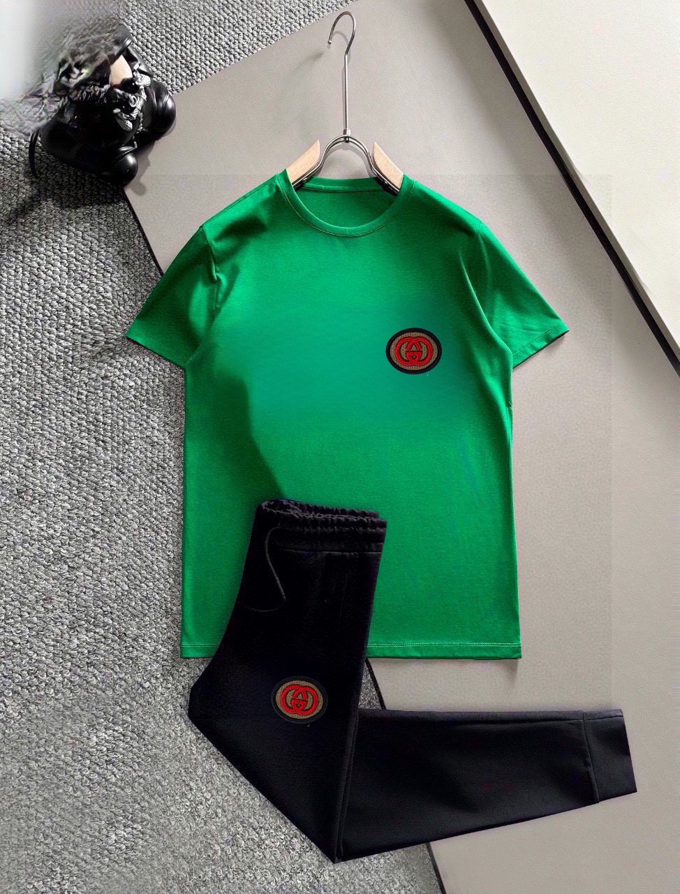 GUCCI 2025 summer men's dual-mercerized high-quality set. Imported original fabric, fashionable style, precise stitching. Sizes M-5XL.
