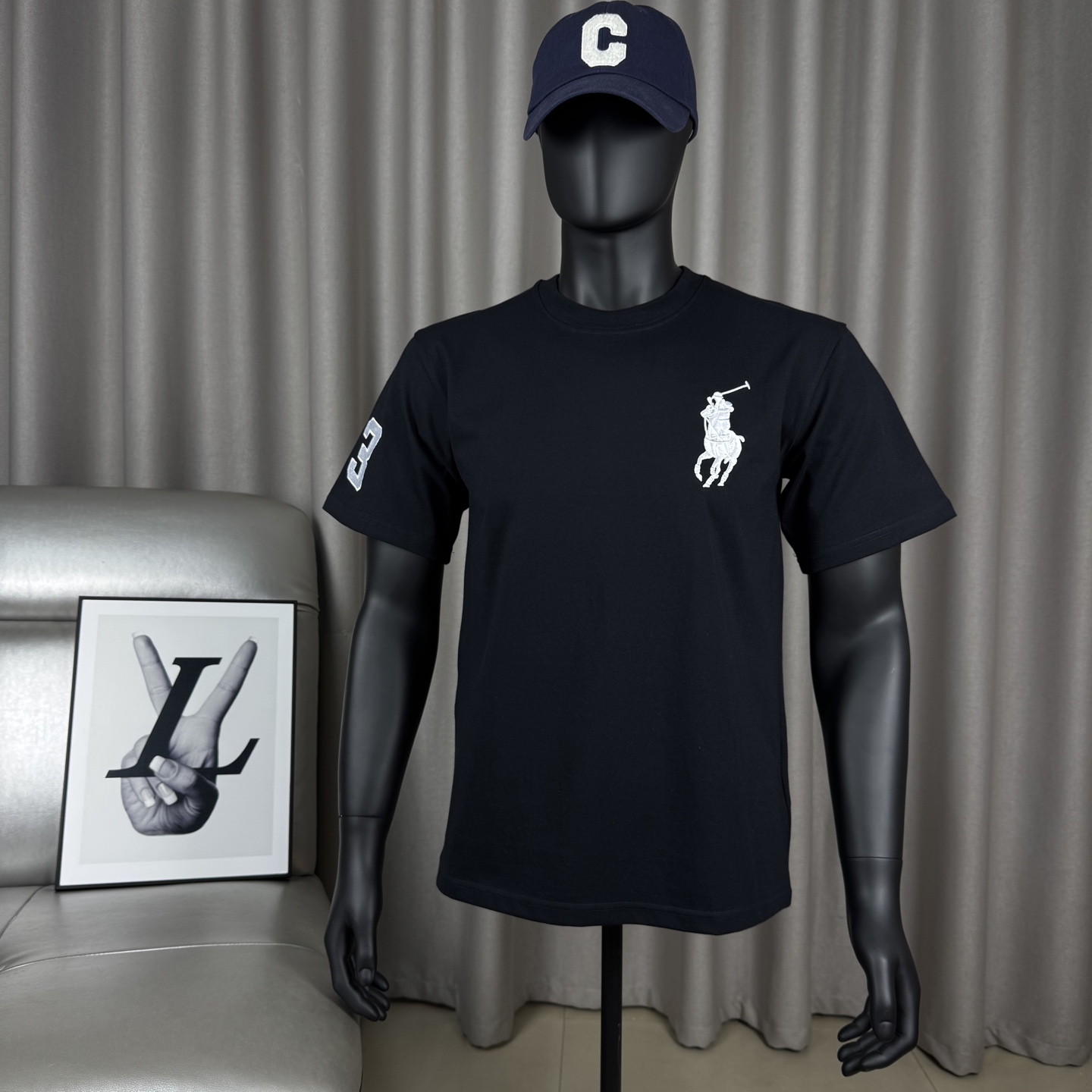 Ralph Lauren classic embroidered polo pony logo unisex t-shirt. 240g combed cotton, soft & breathable. Colors: black, white, gray, navy. Sizes: M-XXL.