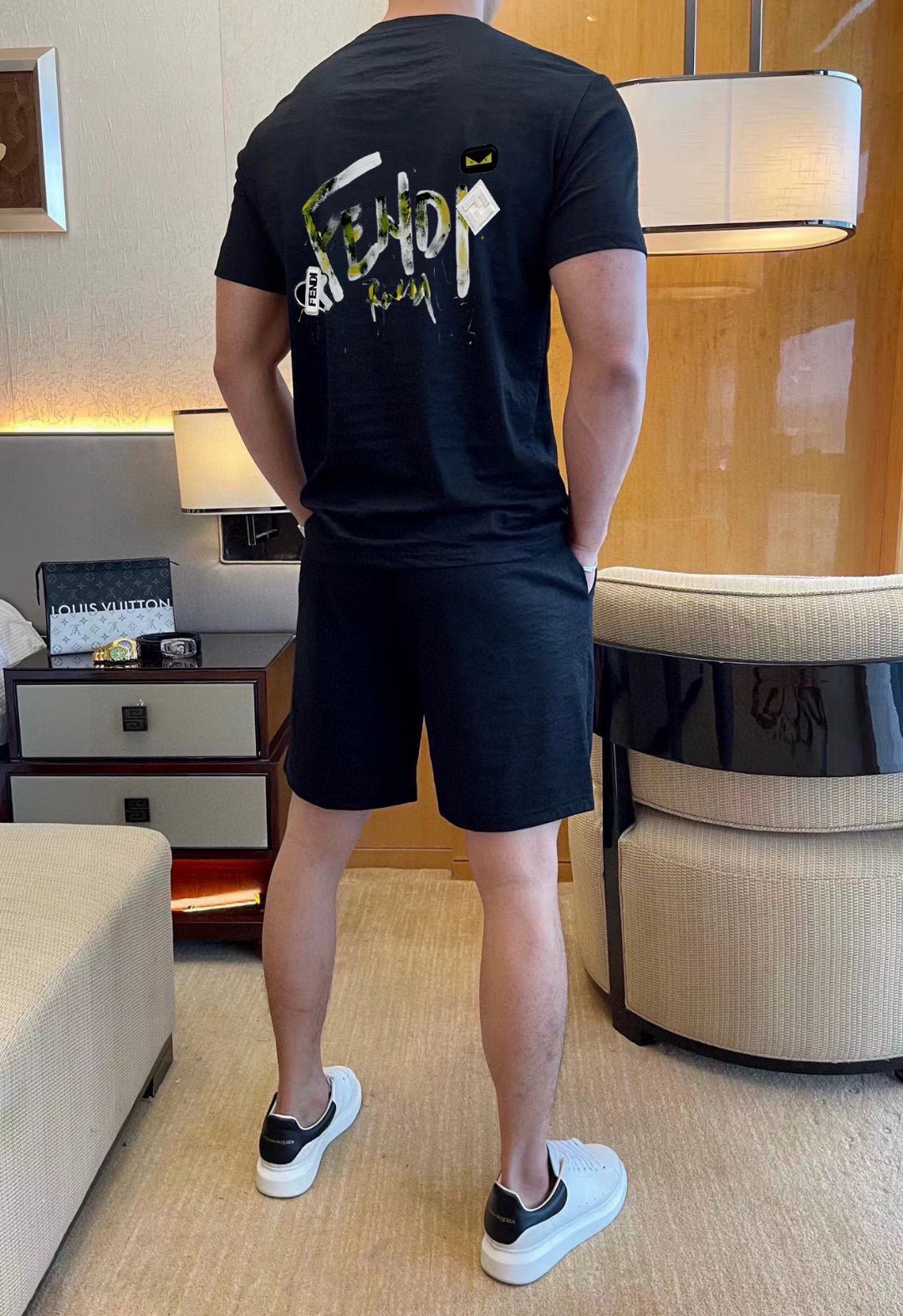 FENDI men's 2025 short sleeve and shorts set. High-end version, soft fabric, comfortable fit, tailored cut. Sizes: M-5XL.