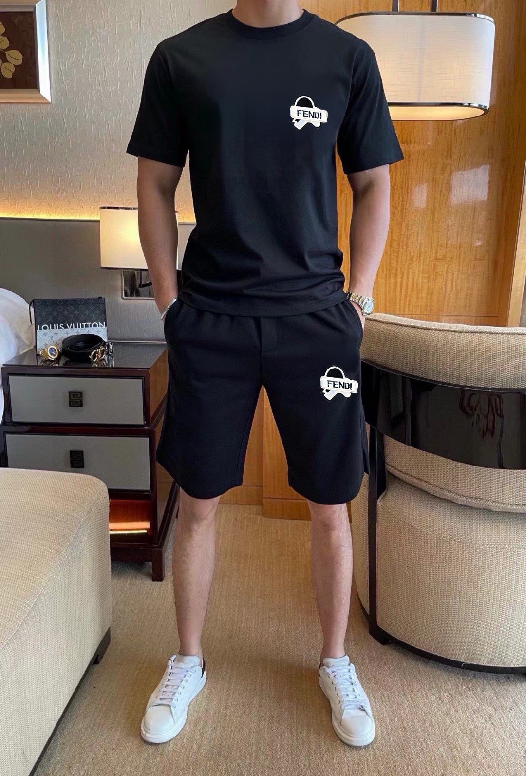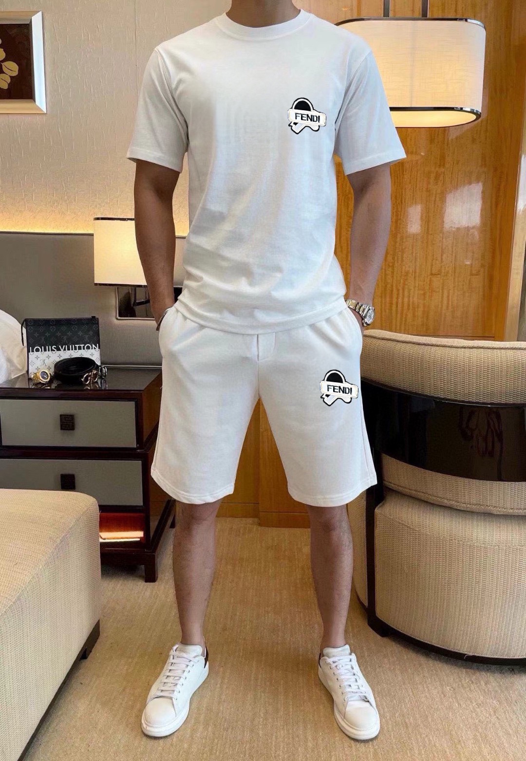 Home • Apparel • Suit • FENDI men's 2025 short sleeve and shorts set. High-end version, soft fabric, comfortable fit, tailored cut. Sizes: M-5XL.