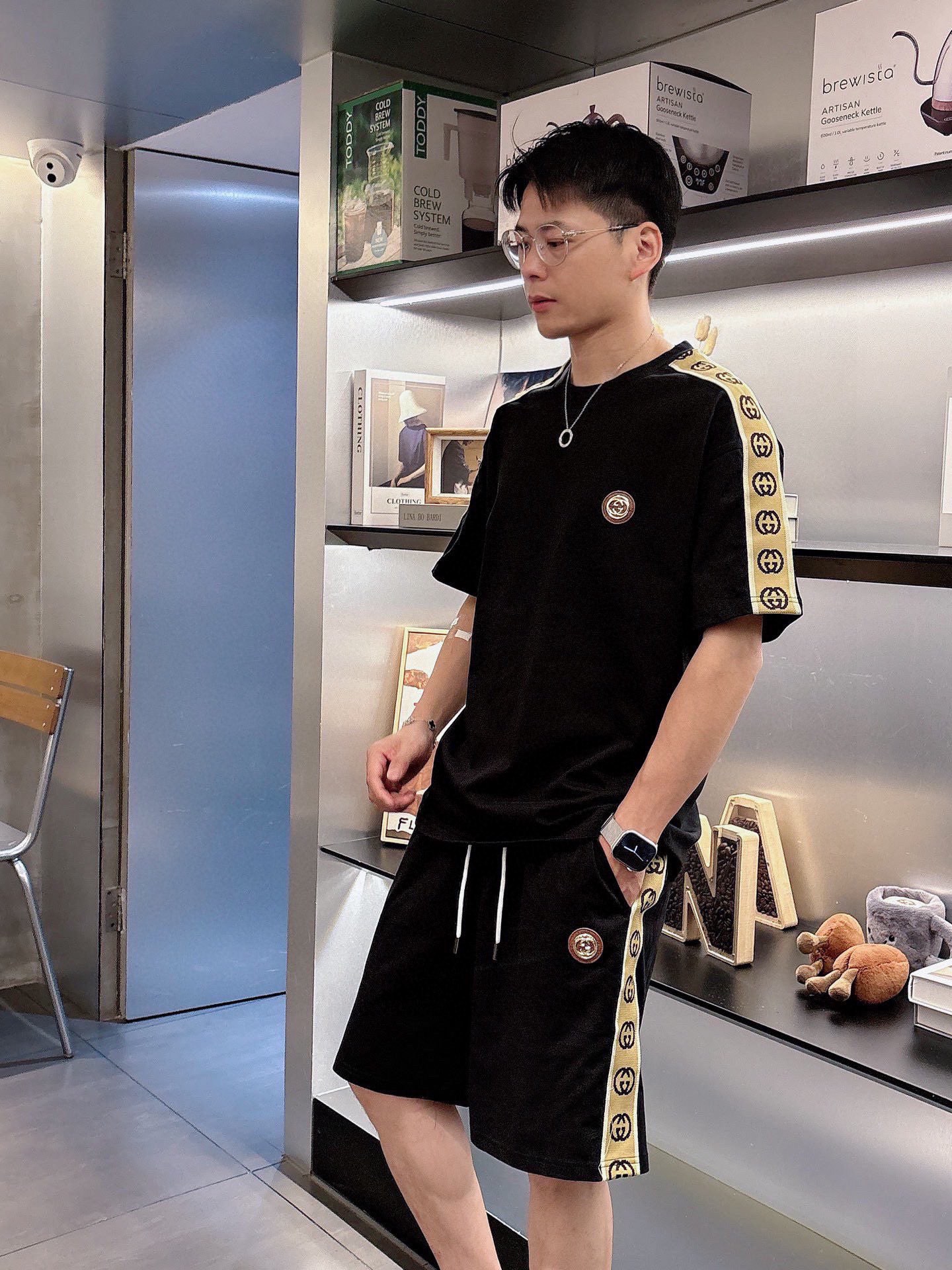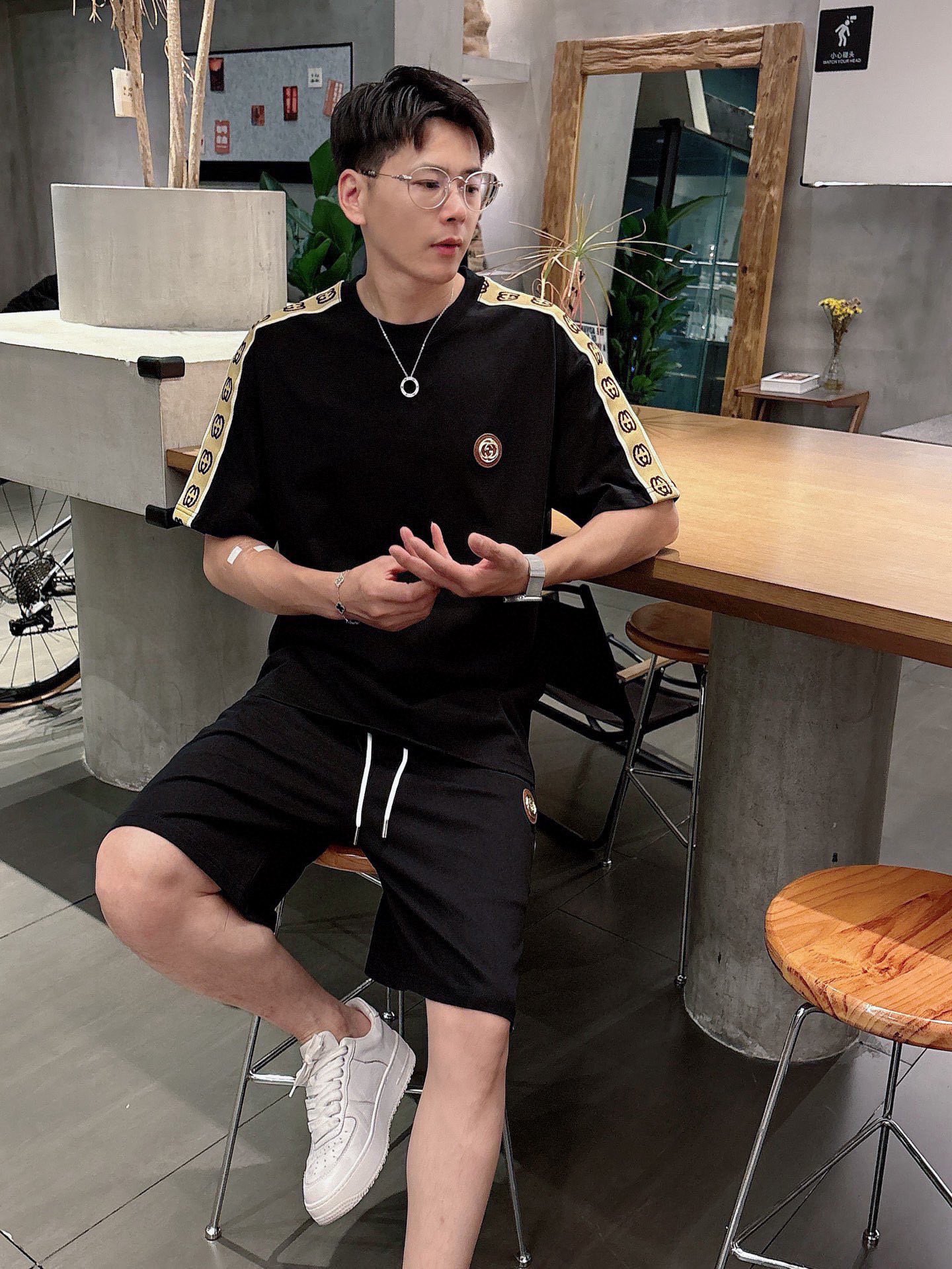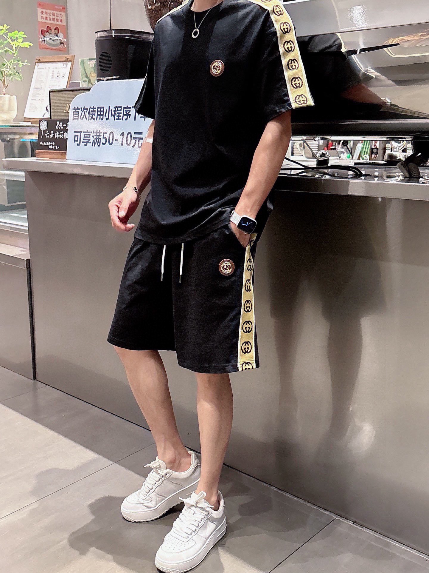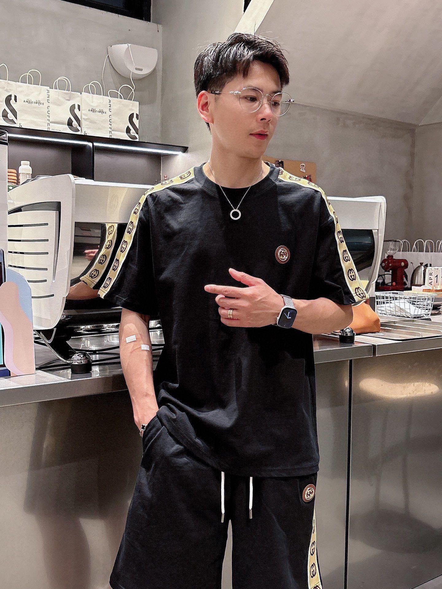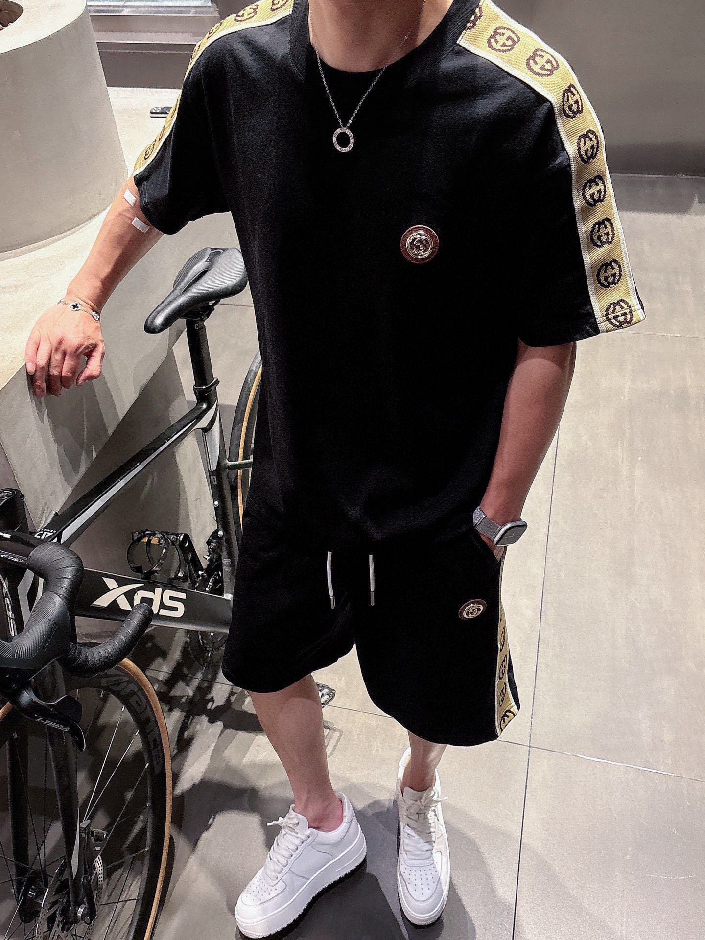 GUCCI 2025 cotton short sleeve and shorts set. Breathable, smooth fabric with classic logo. Sizes M-3XL.