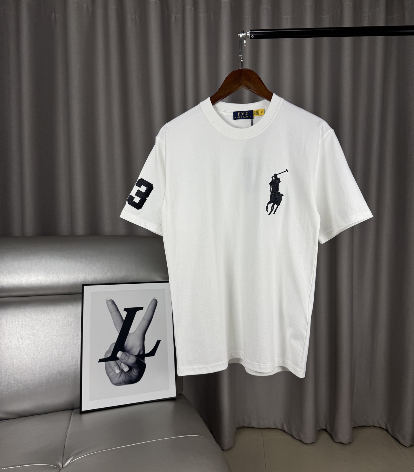 Home • Apparel • Ralph Lauren classic embroidered polo pony logo cotton t-shirt. 240g combed cotton, soft and breathable. Colors: black, white, gray, navy. Sizes: M-XXL. Wash with similar colors.