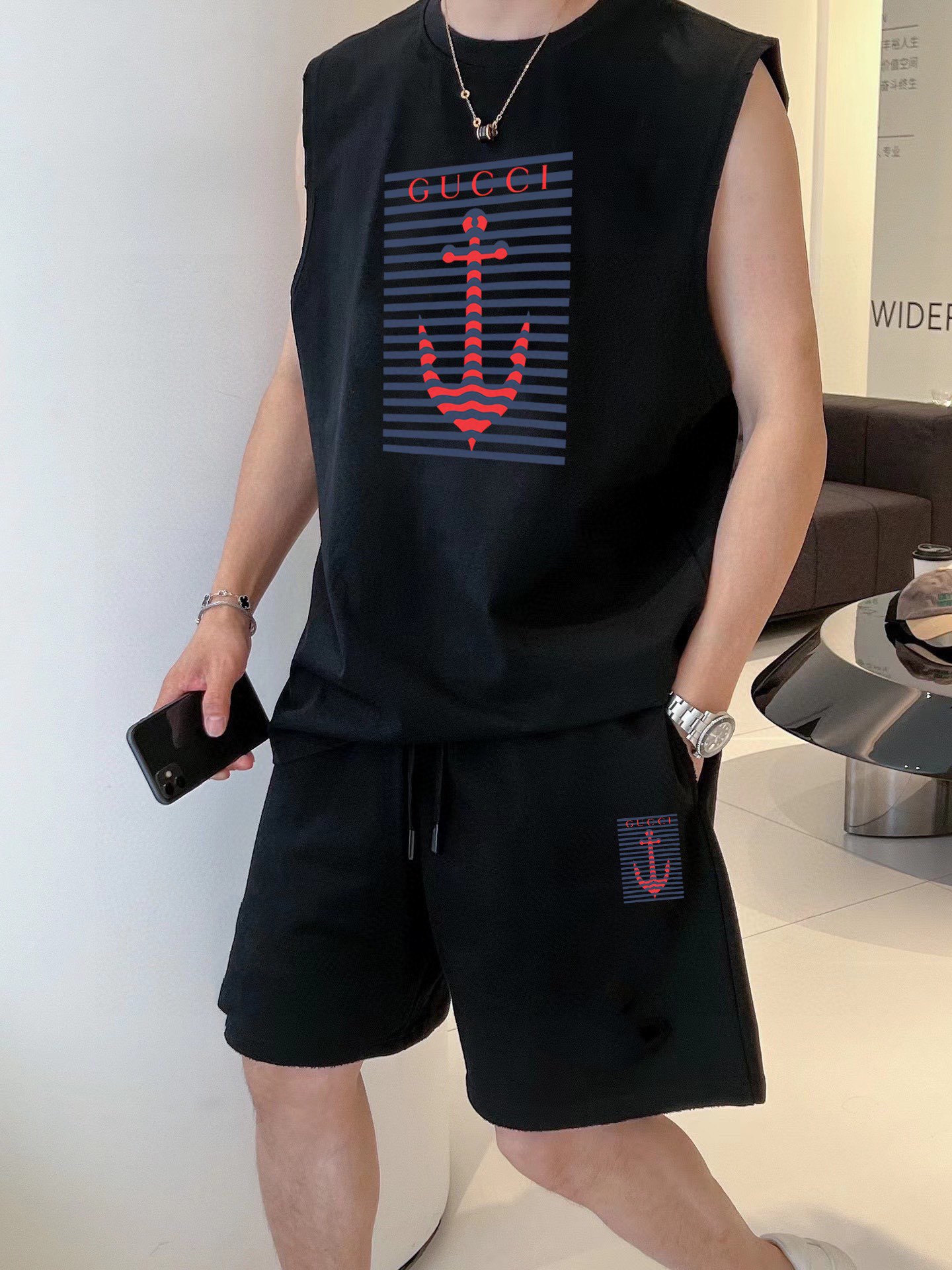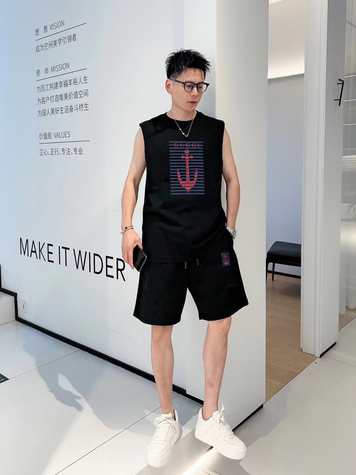 GUCCI 2025 spring summer vest set. Classic simple style, customizable imported cotton, breathable, brand logo design. Sizes M-3XL.