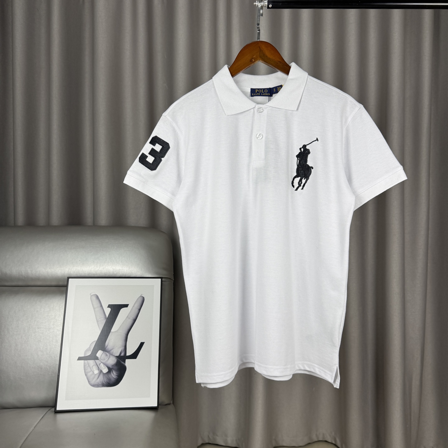 Ralph Lauren embroidered polo shirt. 240g pique cotton, breathable. Colors: black, white, gray, navy. Sizes M-XXL.