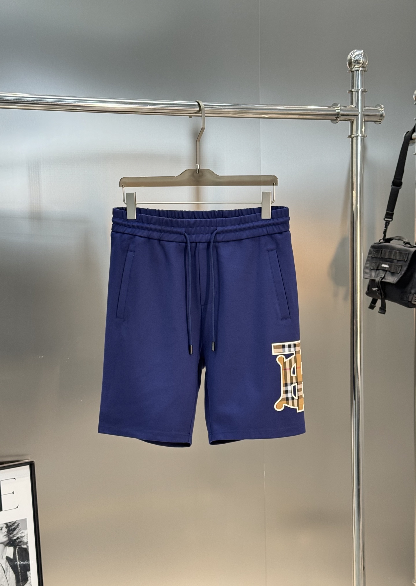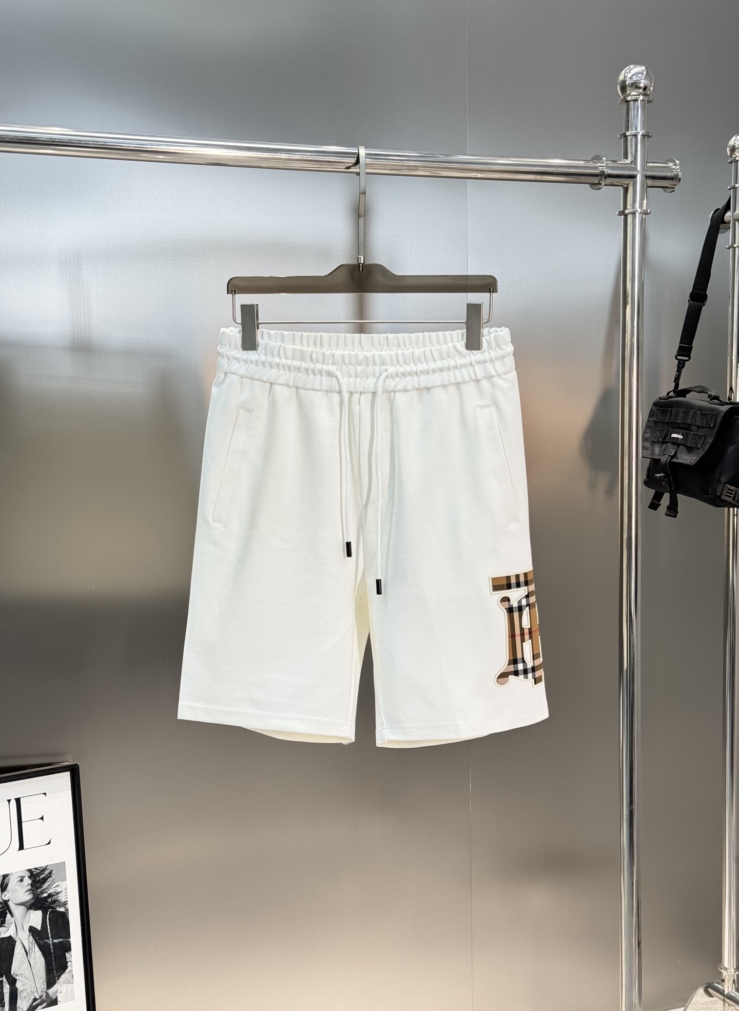 BBR Burberry 25s summer men's casual shorts. Seamless side, 3D TB check logo. Imported cotton, soft & structured. Colors: black, white. Sizes: M-3XL.