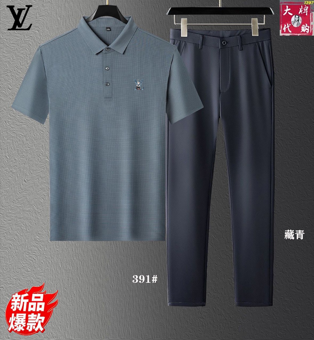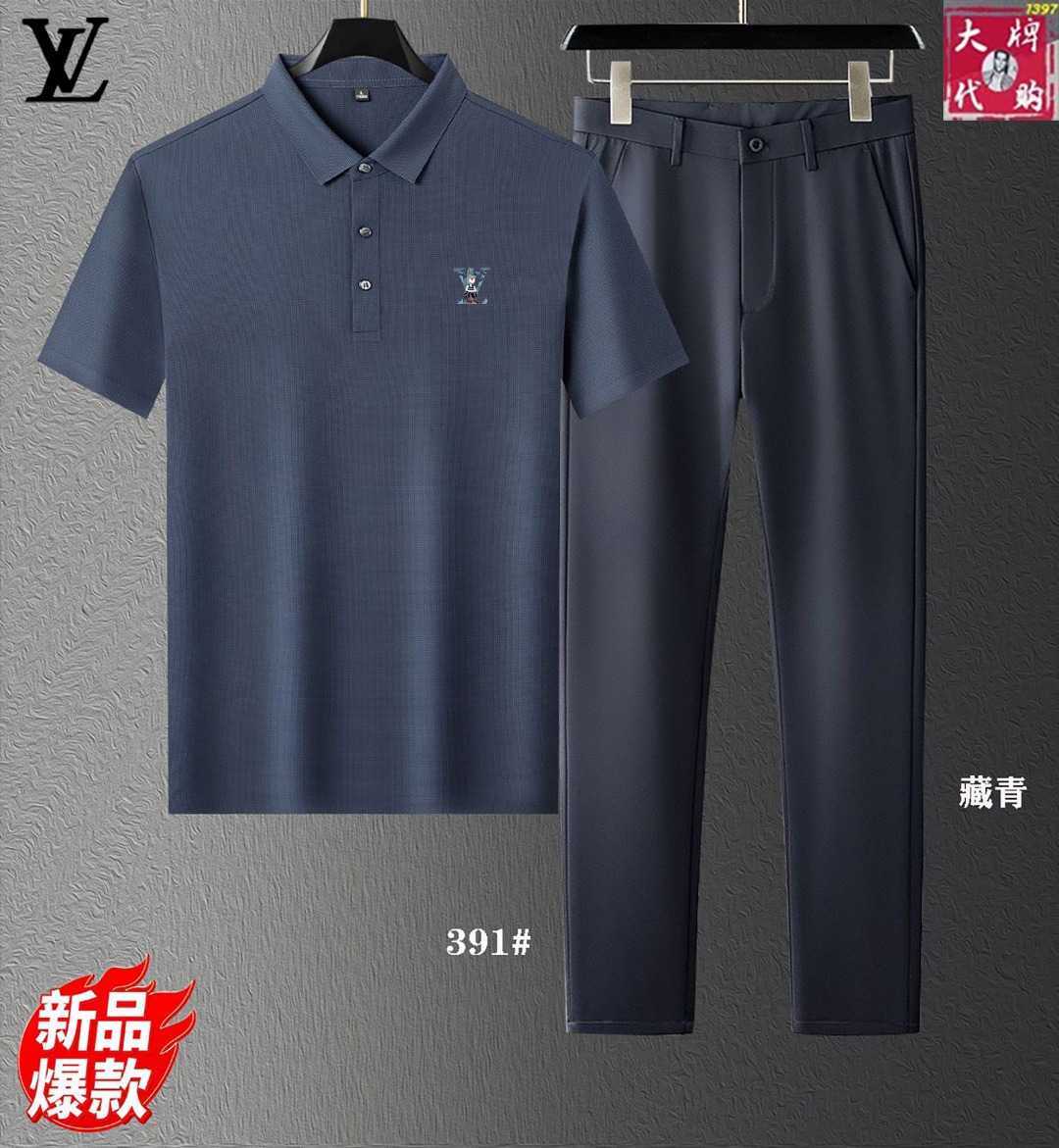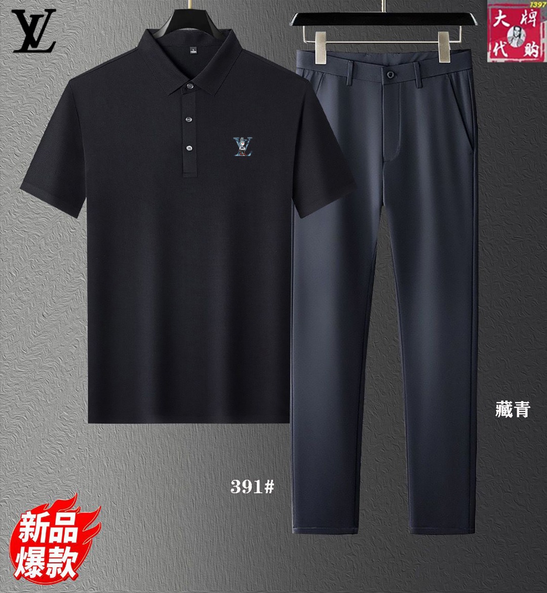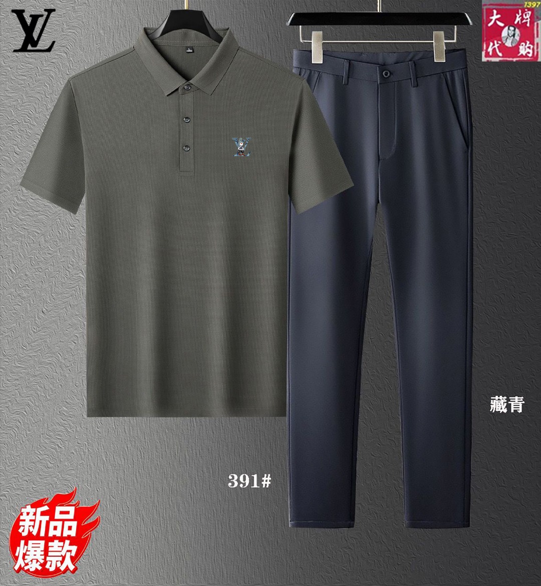 Louis Vuitton new set. Silk fabric, Milan runway sync. Top quality, tailored fit, Italian import. Sizes: M-4XL tops, 29-40 pants.