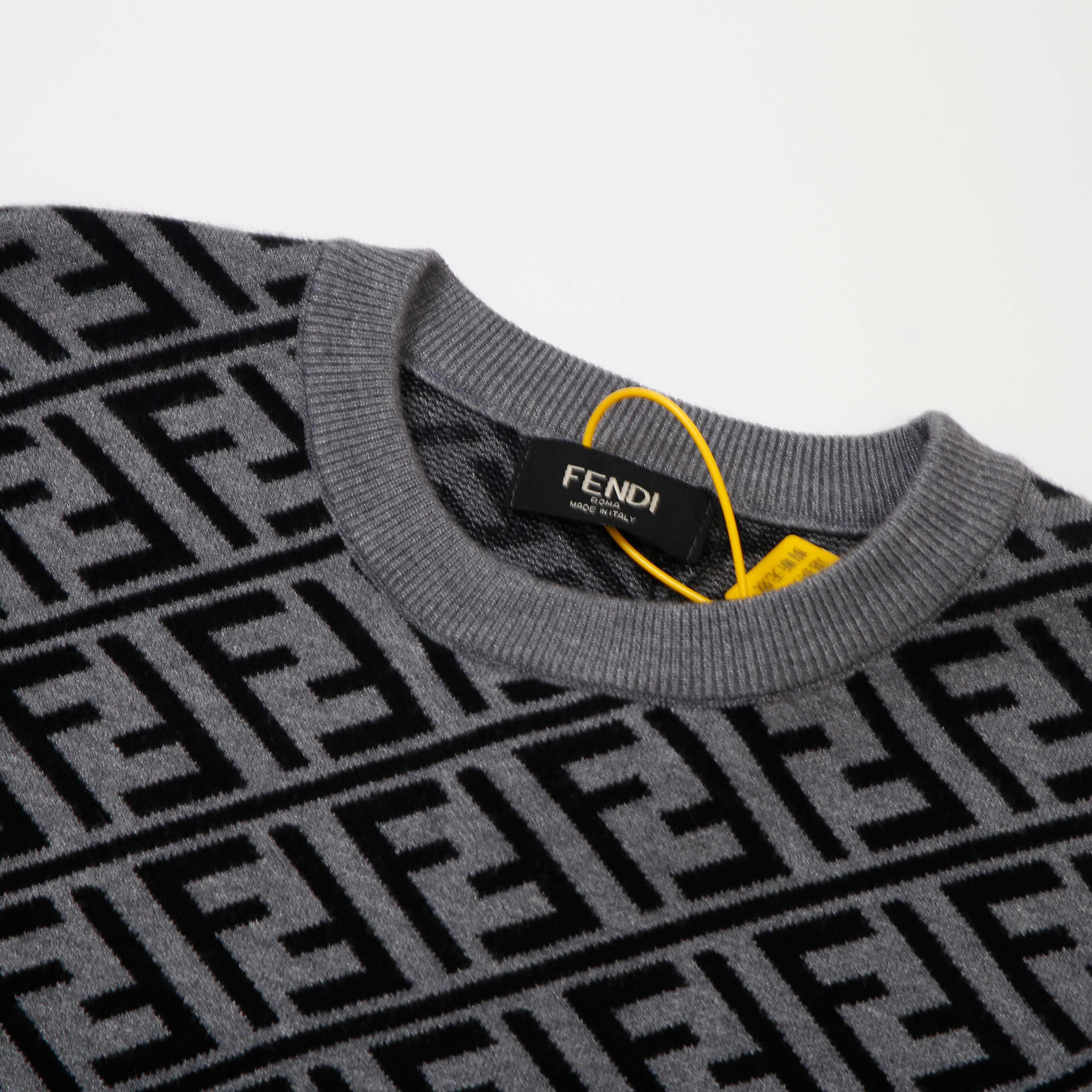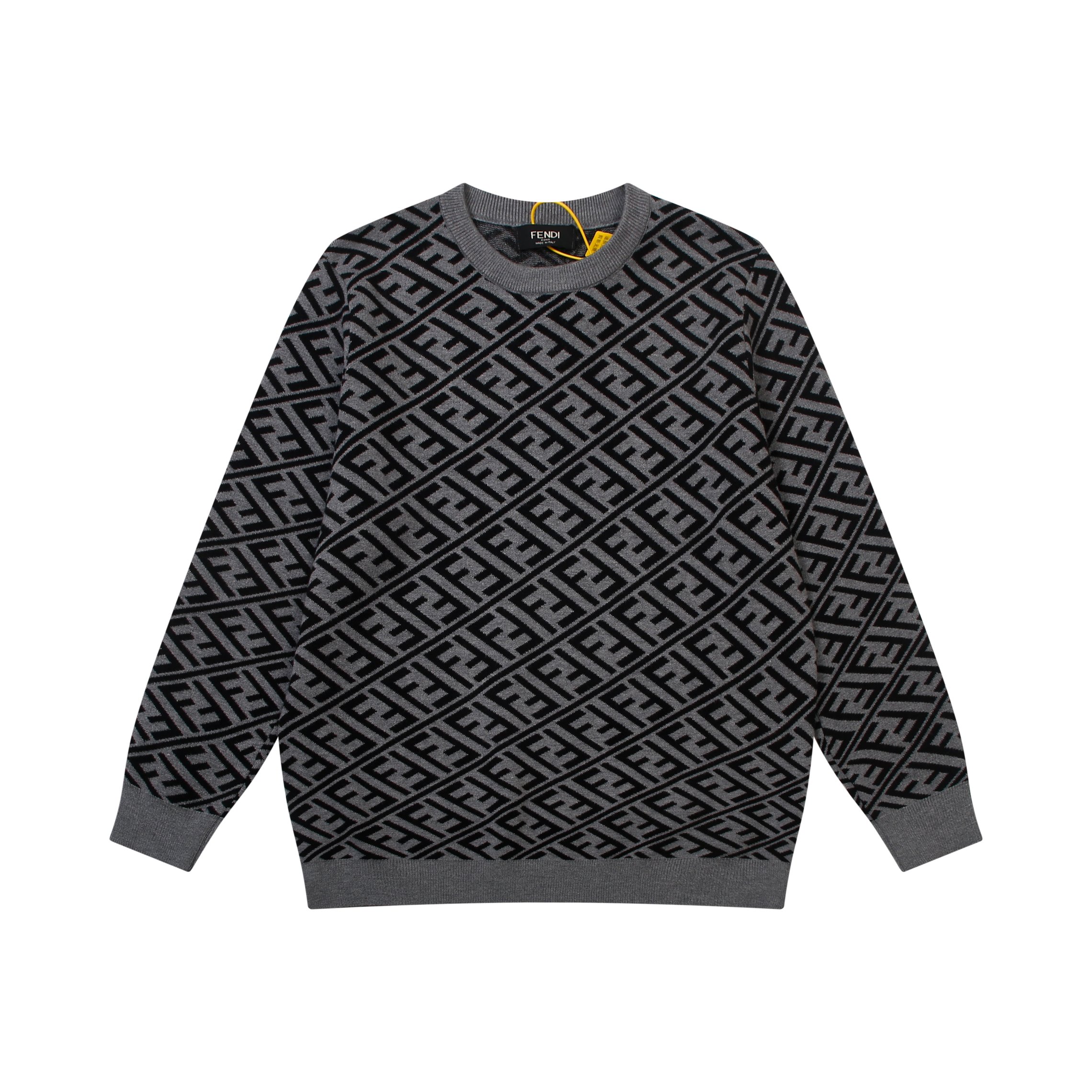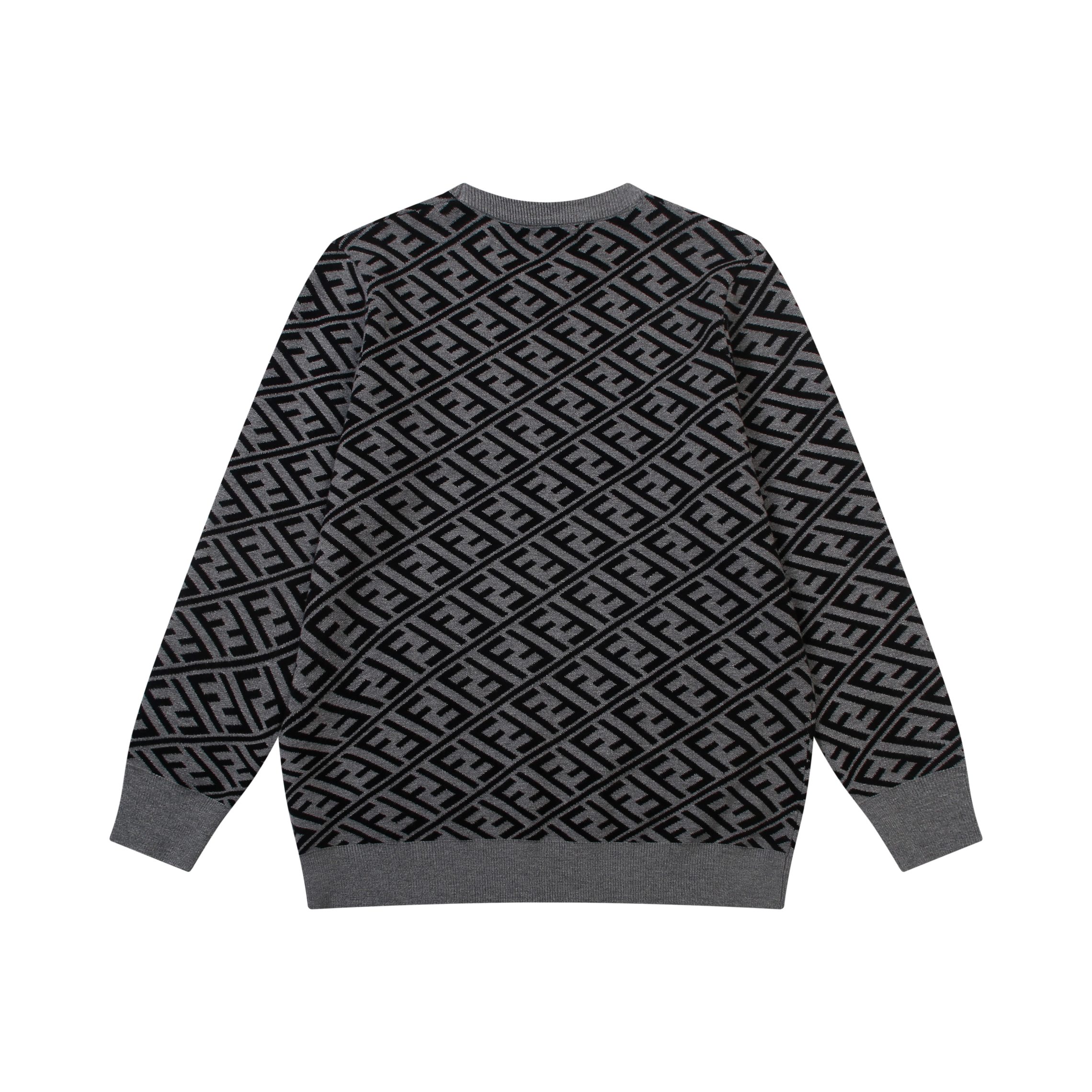 New popular Fendi item, double F patterned round-neck knitted sweater. Uses high-end core-spun yarn fabric, really great. Pairs effortlessly with anything for a stylish look. Workmanship and details are 1:1 synchronized with the official website. Absolutely pill-free, not scratchy on the skin, feels super comfortable to the touch. The cut is especially comfortable, appearance is very high, color combination is beautiful, craftsmanship is extremely detailed. Highly recommended. Quality can be compared to the market, not afraid of comparison shopping.