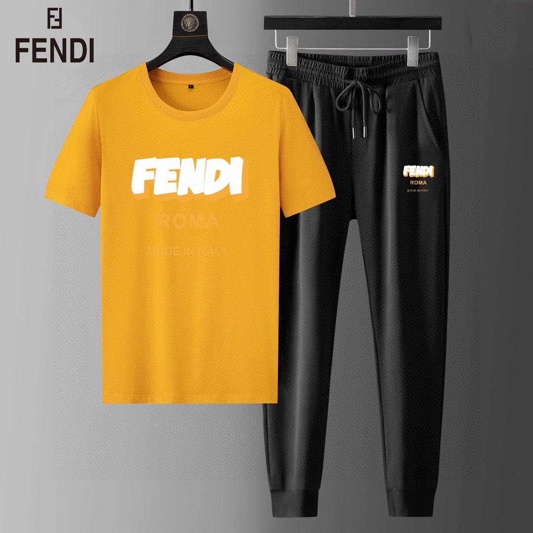 FENDI men's summer high-quality set, imported fabric, fashionable design, sizes M-5XL.