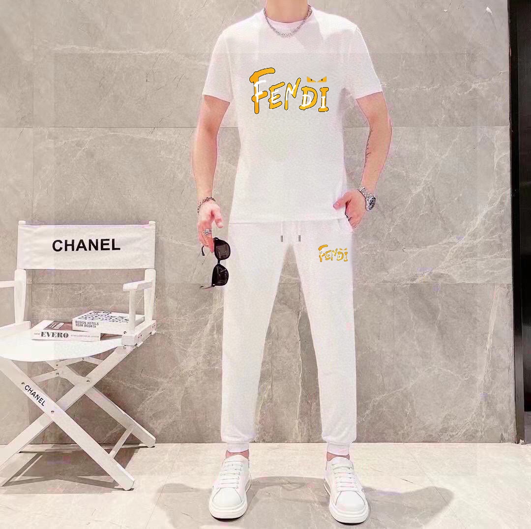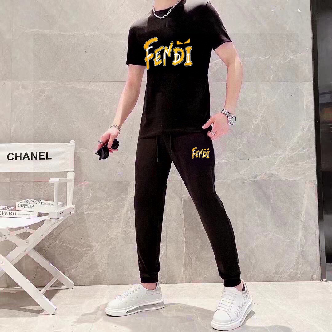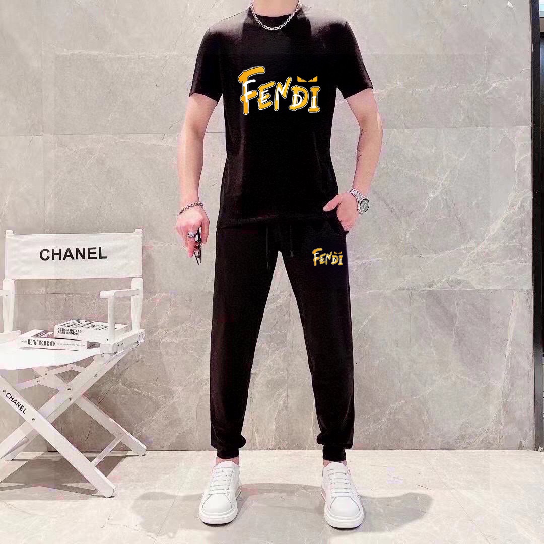 FENDI men's summer high-quality set, imported fabric, fashionable design, sizes M-5XL.
