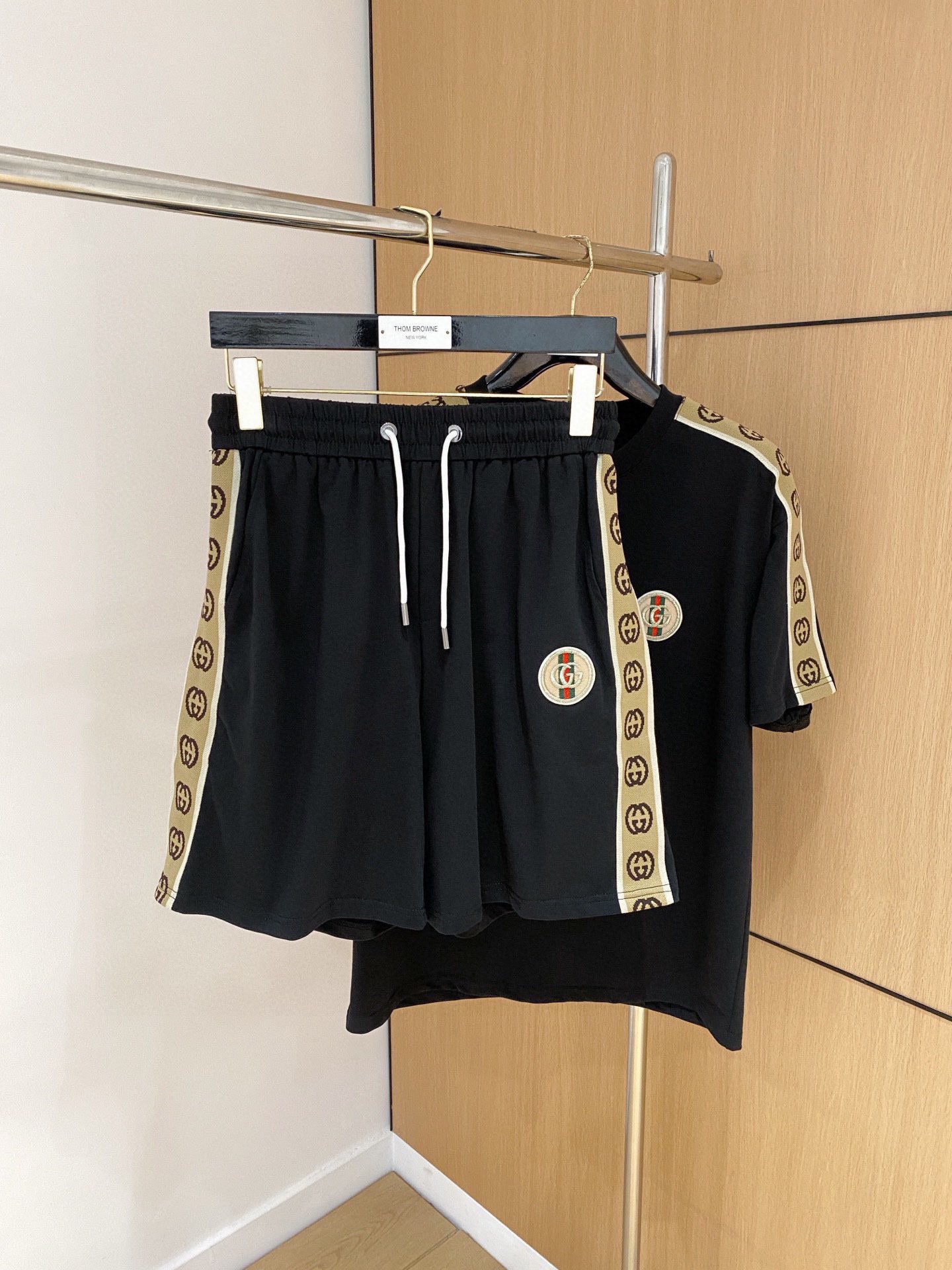 GUCCI 2025 cotton short sleeve and shorts set. Breathable, smooth fabric with classic logo. Sizes M-3XL.