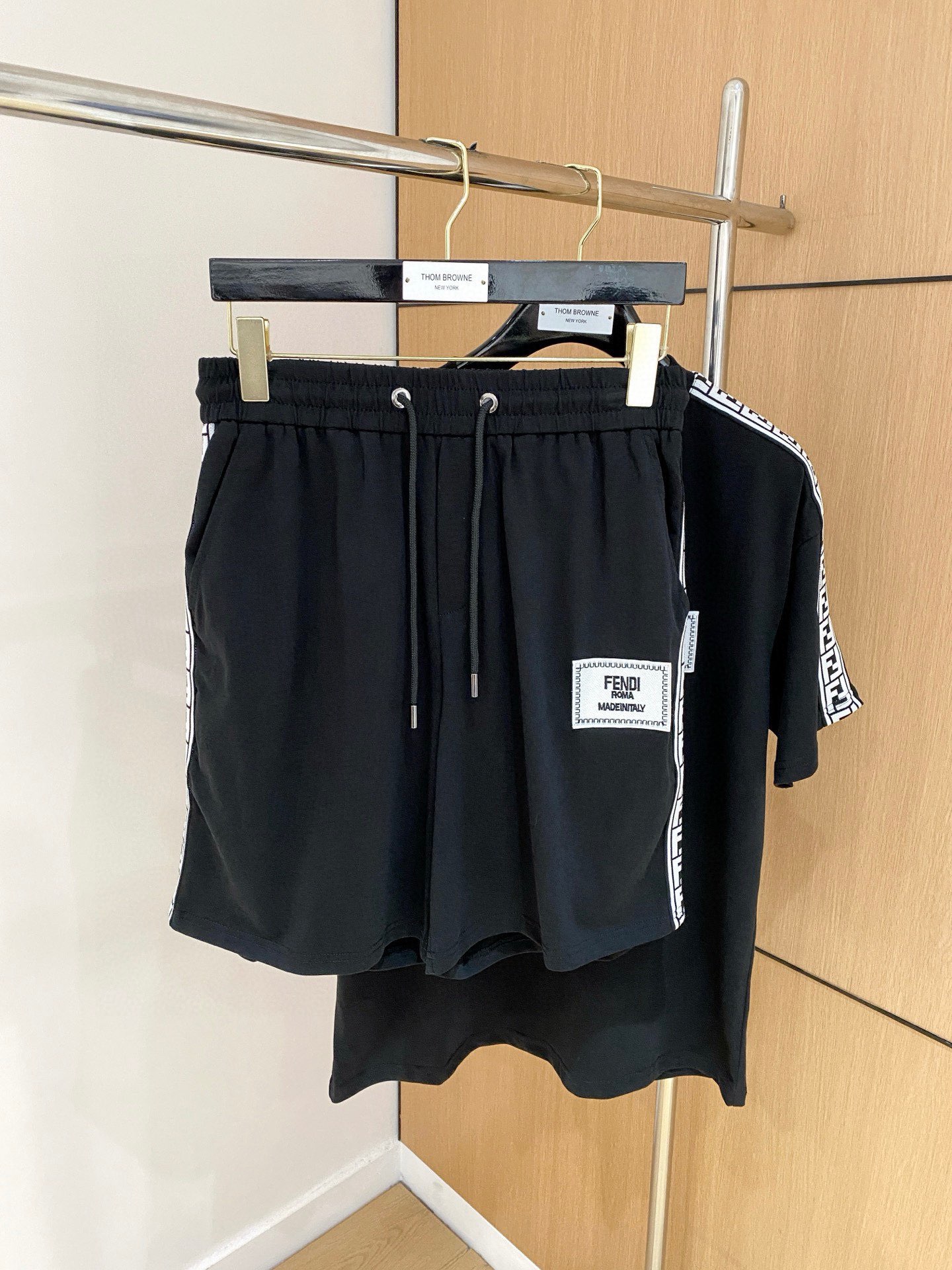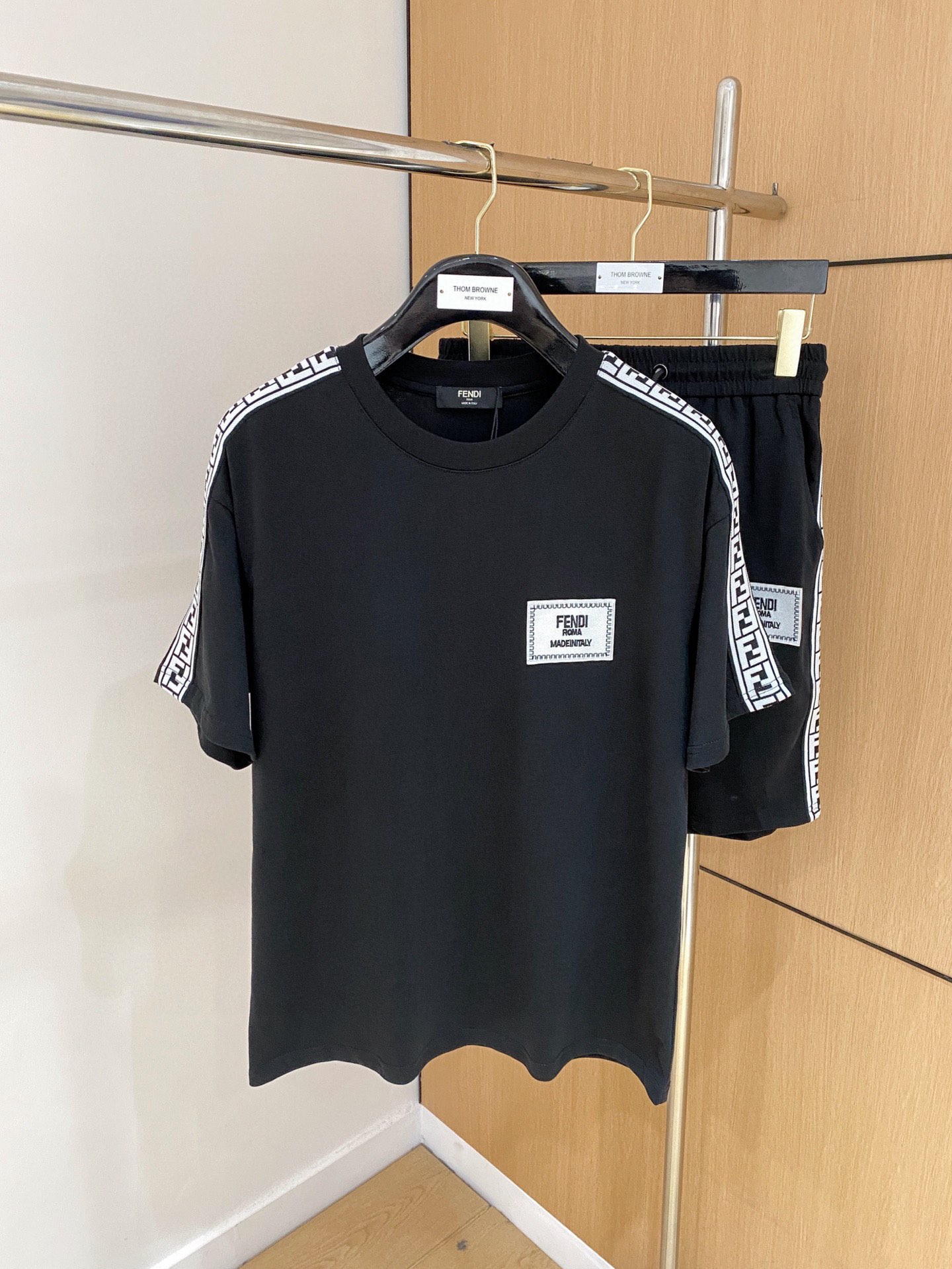FENDI 2025 cotton short sleeve t-shirt and shorts set. Breathable, smooth fabric with classic logo. Sizes: M-3XL (fits up to 190kg).