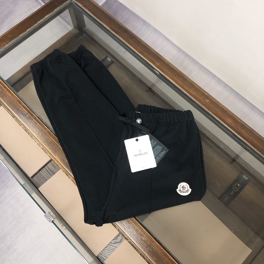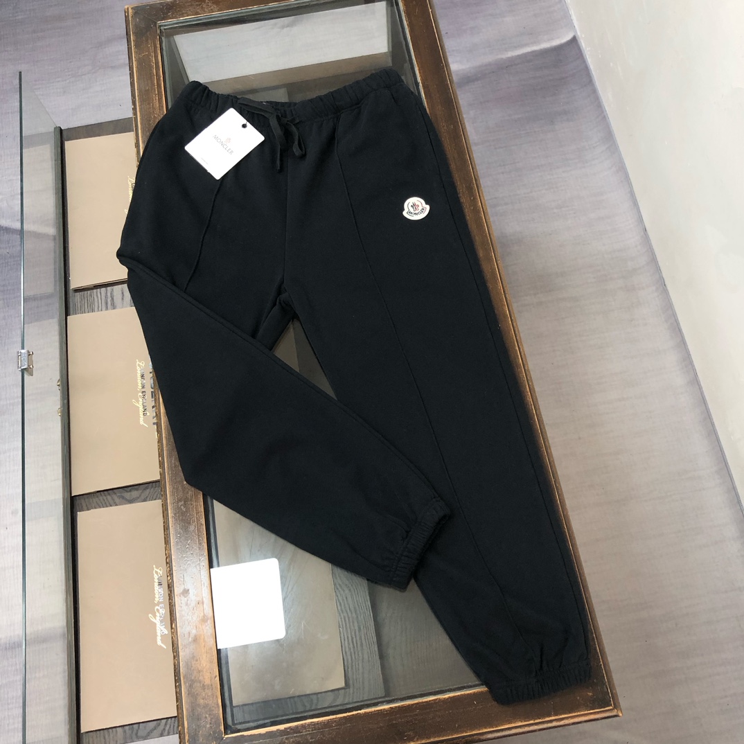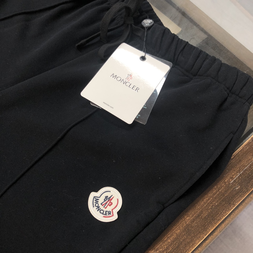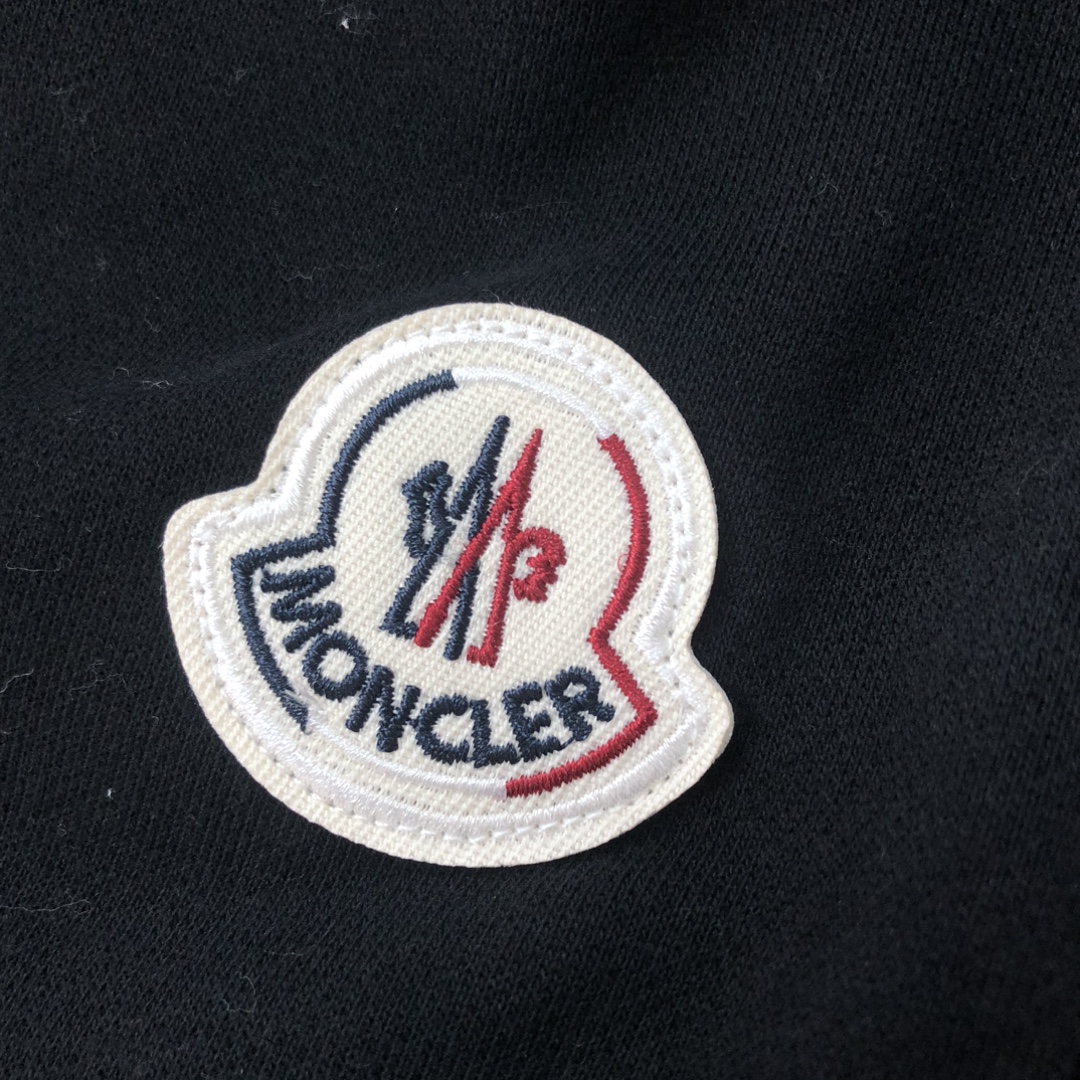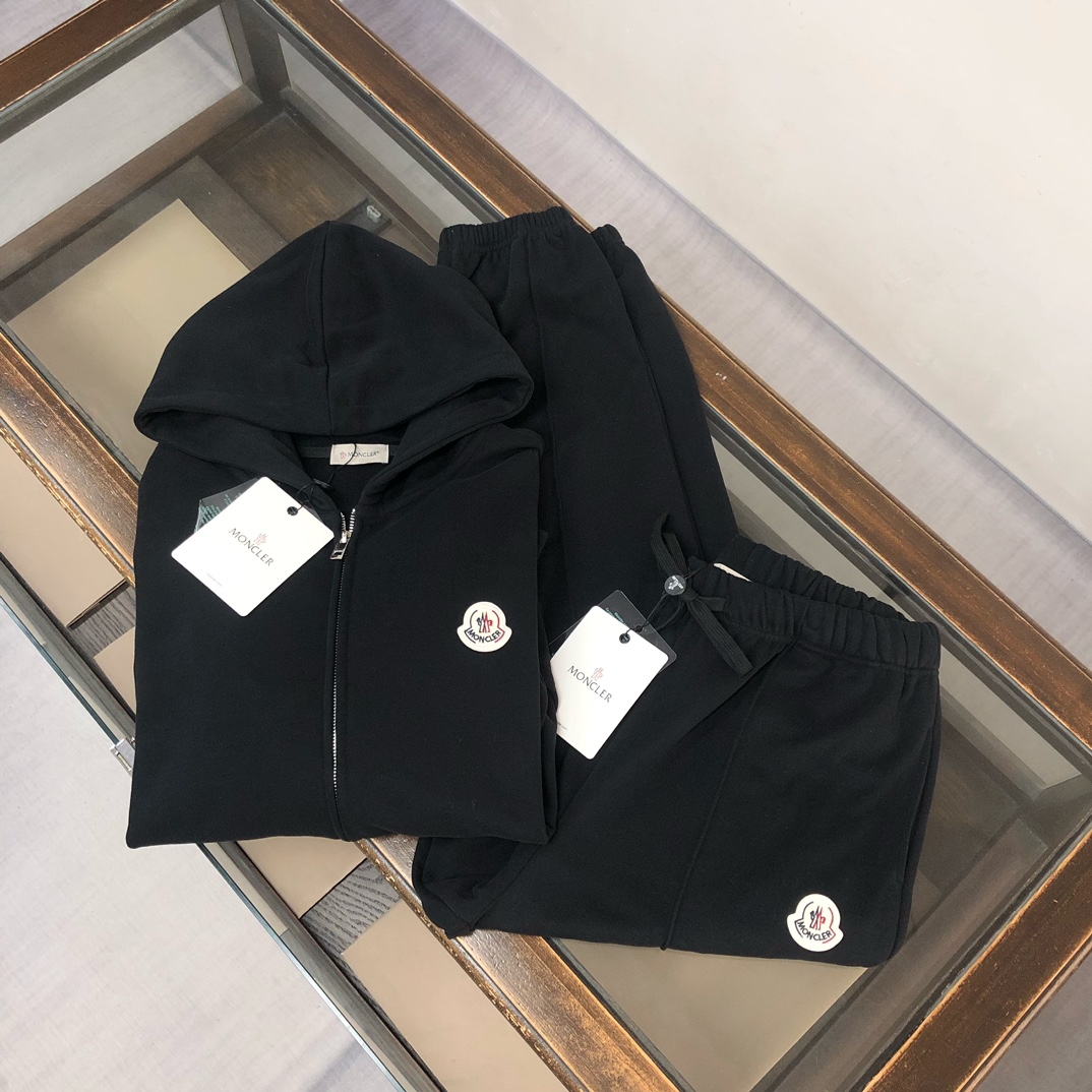 MONCLER 2025 early autumn couples sweatshirt & jogger set. Custom 420g cotton, tailored fit. Colors: Black, White, Navy, Gray. Sizes: S-XXL.