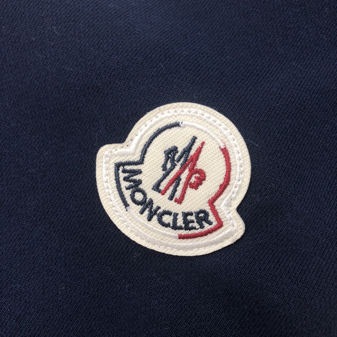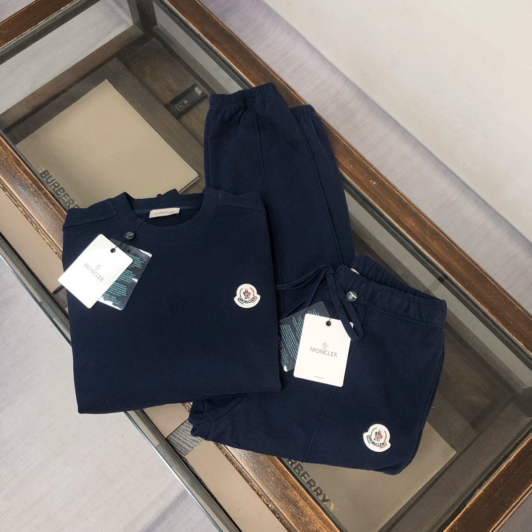 MONCLER 2025 early autumn couples hoodie & jogger set. Custom 420g cotton, breathable fabric. Colors: Black, White, Navy, Gray. Sizes: S-XXL.