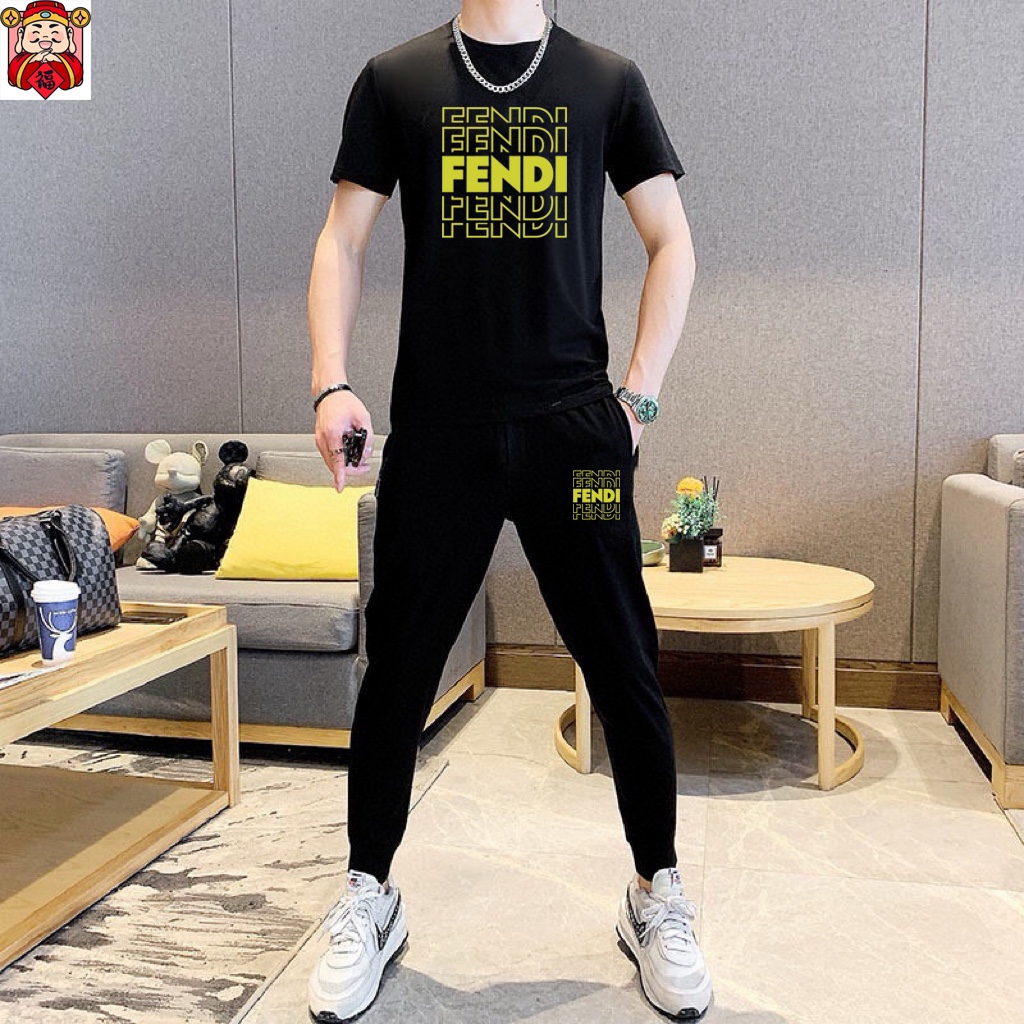 FENDI men's summer silk suit. Imported fabric, trendy & versatile. Sizes M-5XL (up to 220斤). High quality craftsmanship.