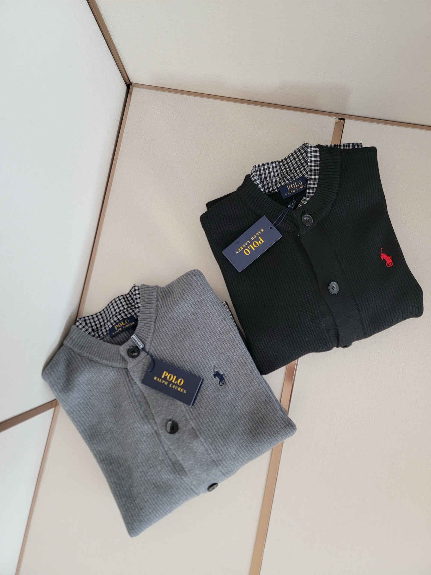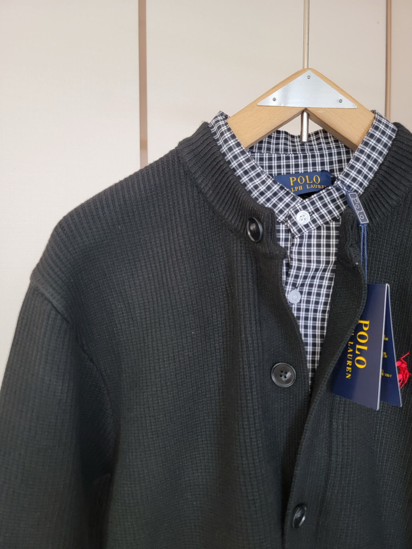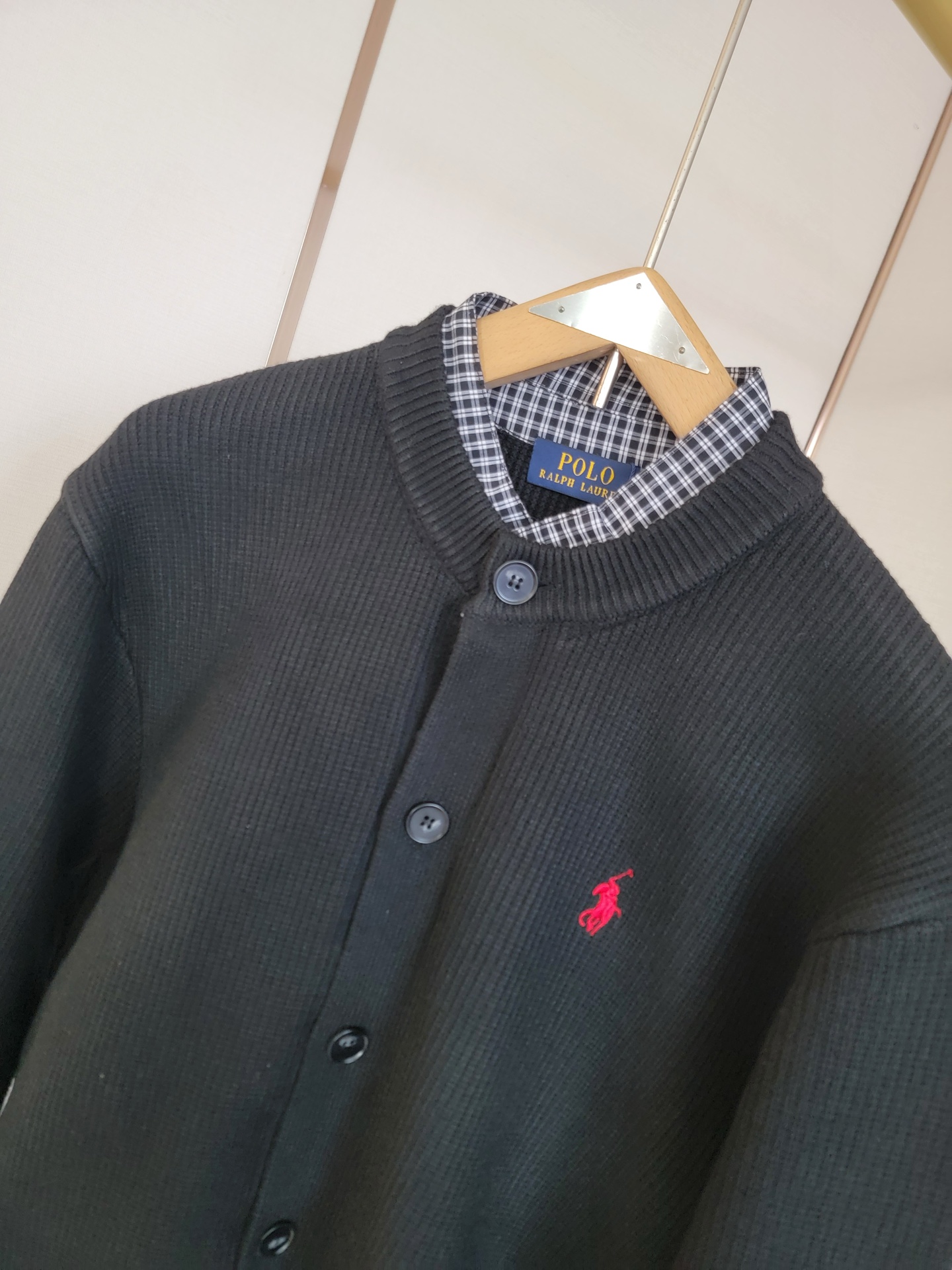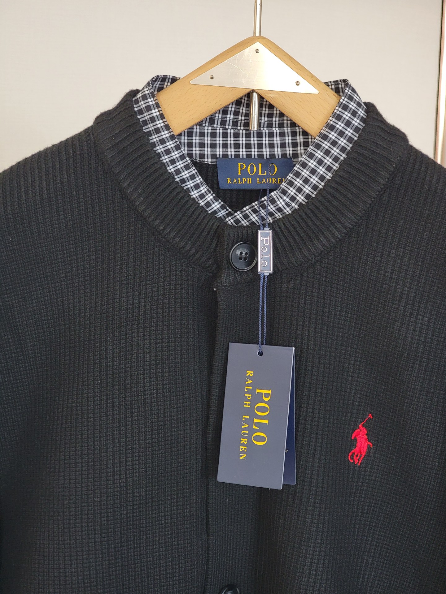 Ralph Lauren classic false two-piece, 7-needle pearl stitch, 70-count plaid lining. Versatile, sizes S-XXL.