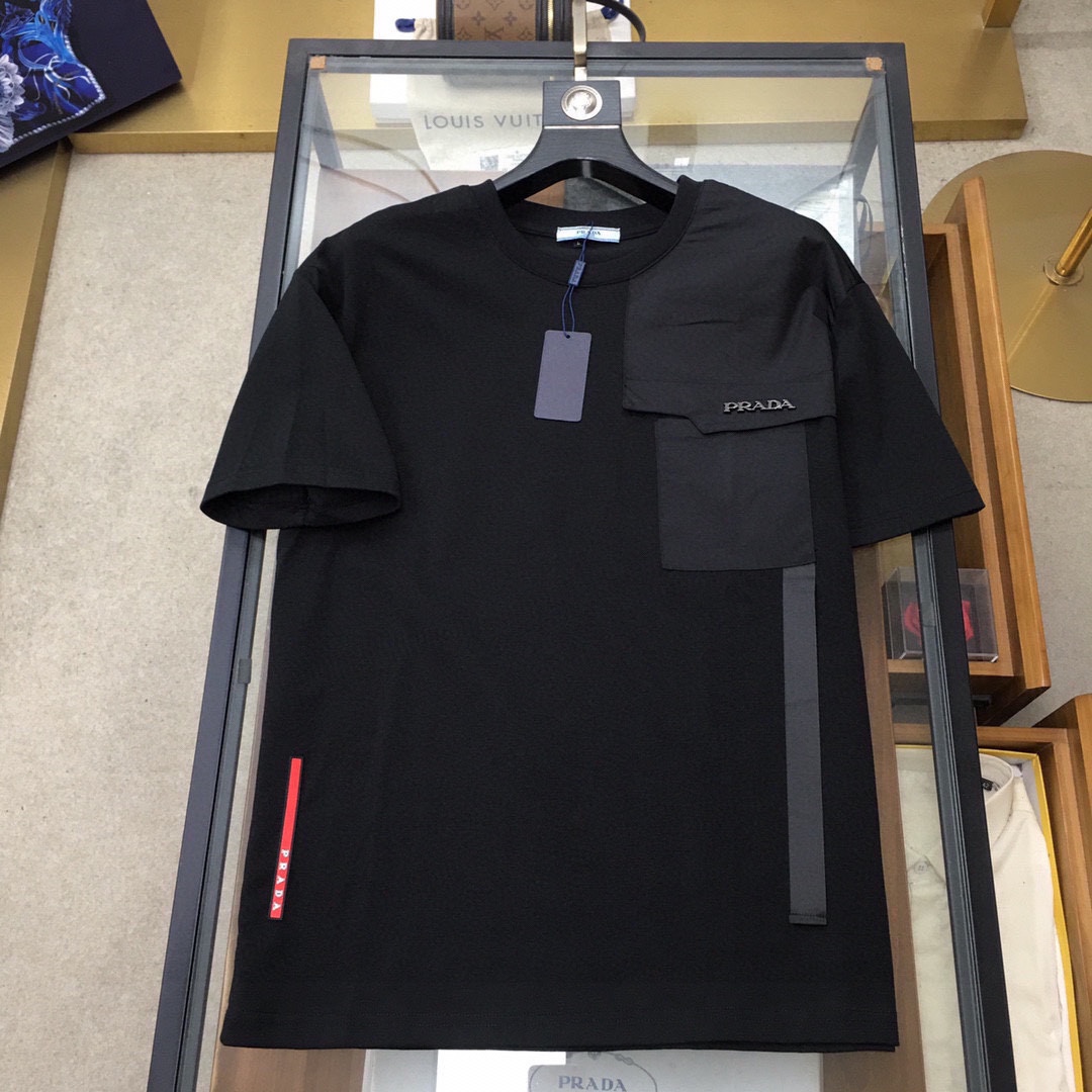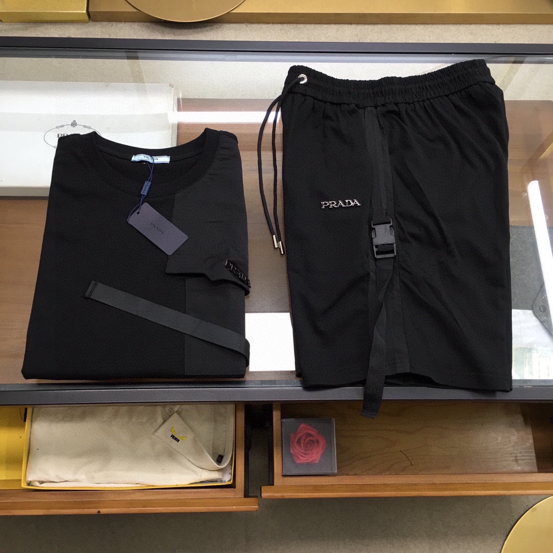 PRADA cotton short sleeve and shorts set. Round neck, breathable fabric with classic logo. Sizes M-3XL.
