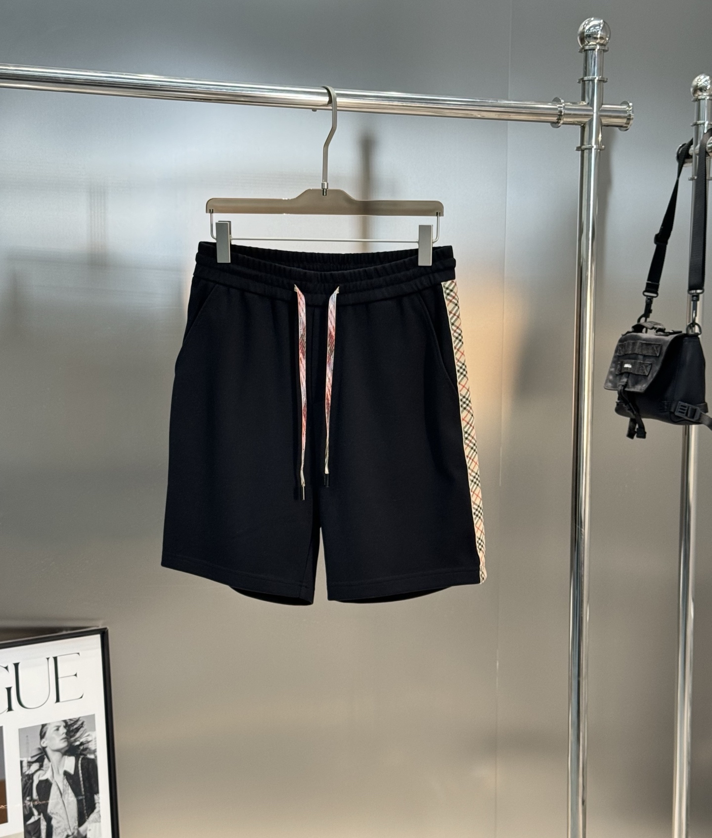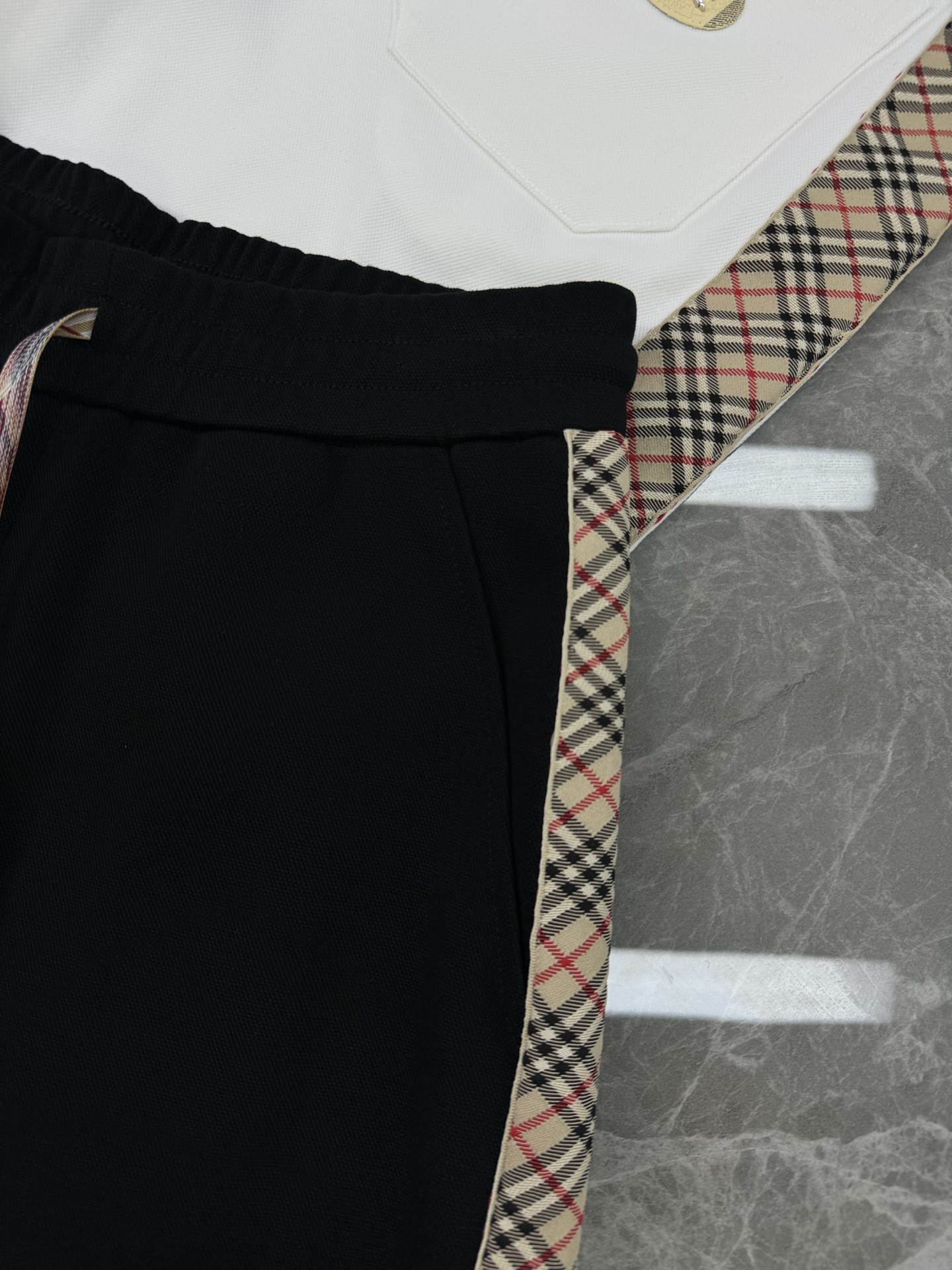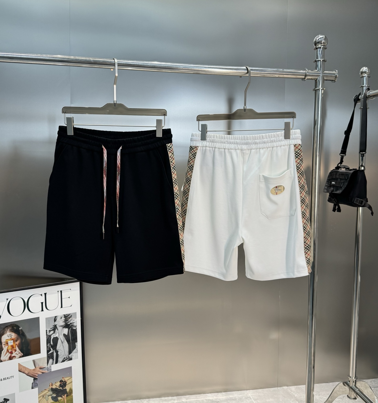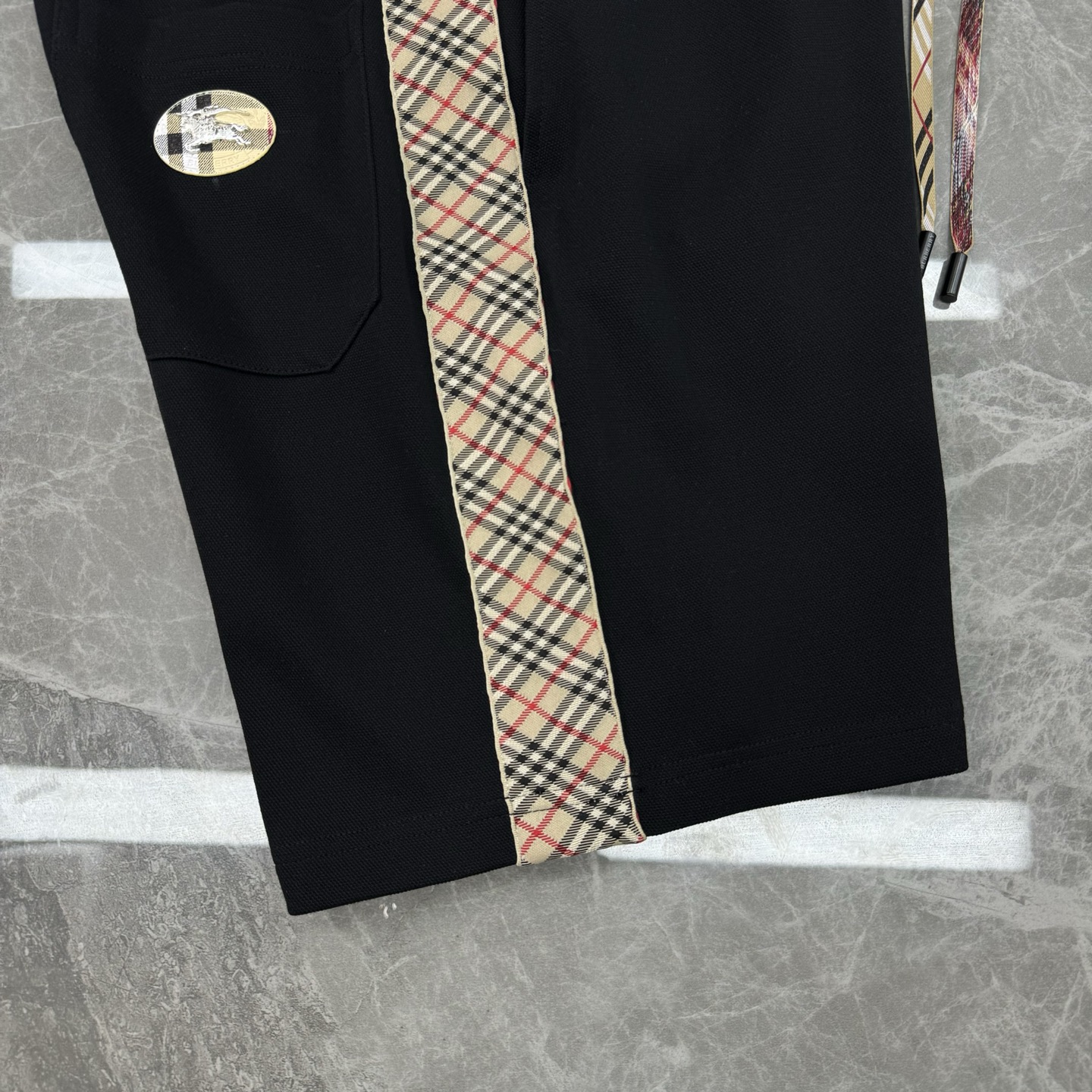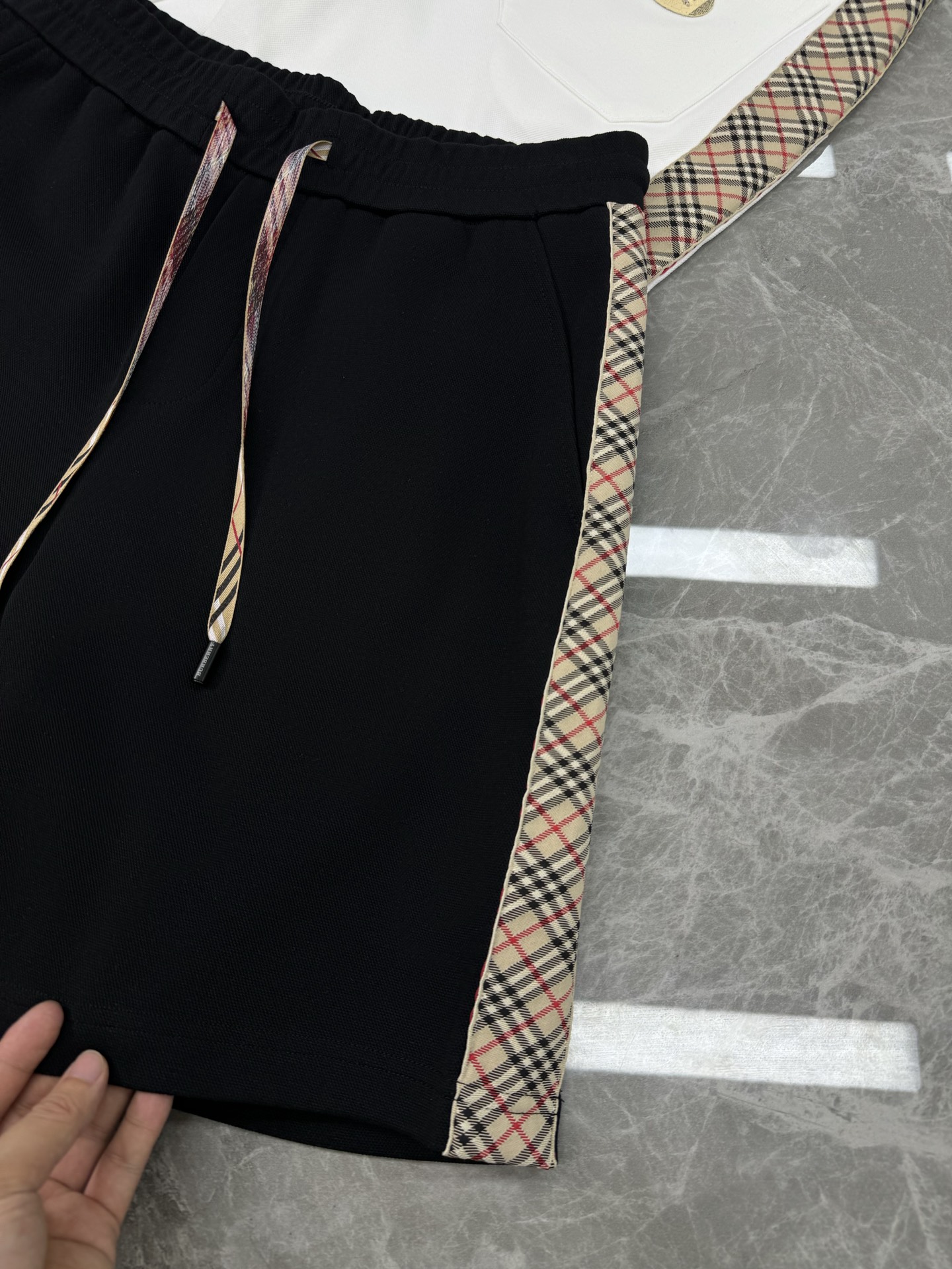 BBR Burberry 25S summer shorts. Custom side stripes, classic check pattern, elastic waist. Colors: white, black. Sizes: M-3XL.