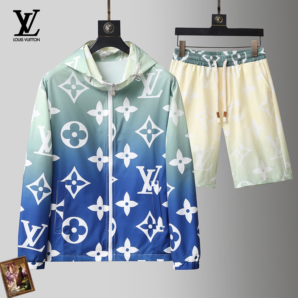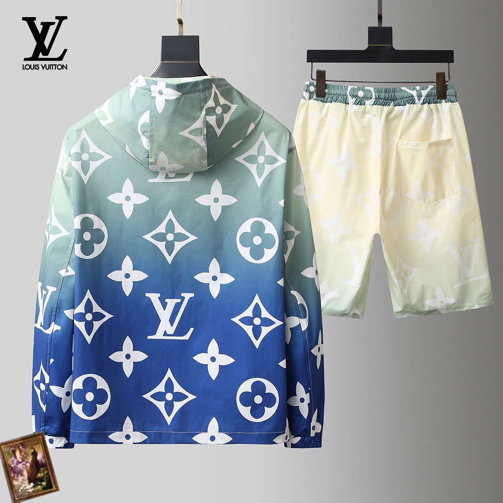 Louis Vuitton 2025 summer shorts set. Lightweight, high-quality fabric. Soft, comfortable, breathable. Custom high-density material, retains shape after washing. Stylish, youthful look. Sizes M-XXXL. Provide height/weight when ordering.