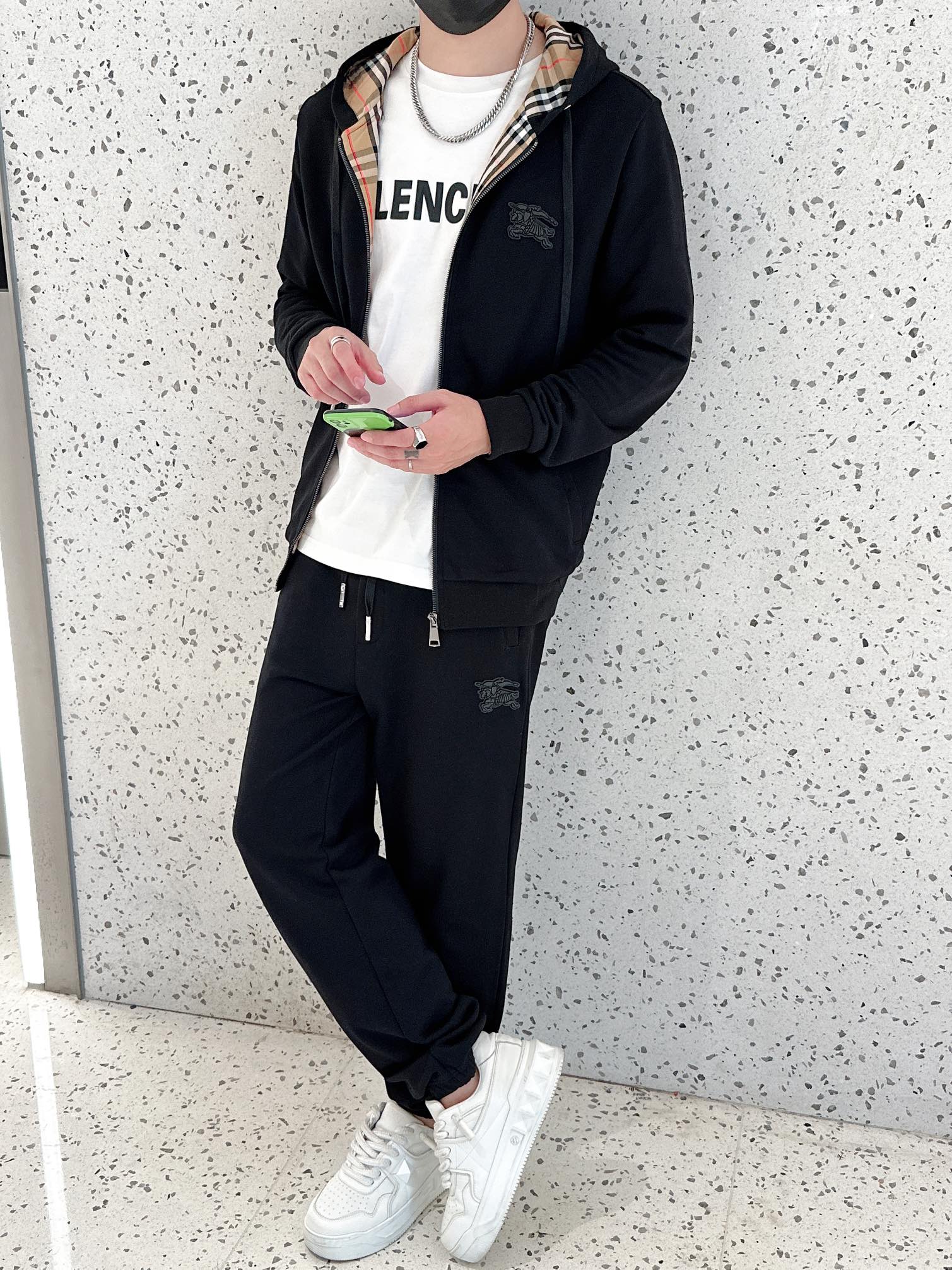 Burberry秋冬新款连帽拉链卫衣套装,丝光棉面料,男女同款。版型佳,尺码48-56。