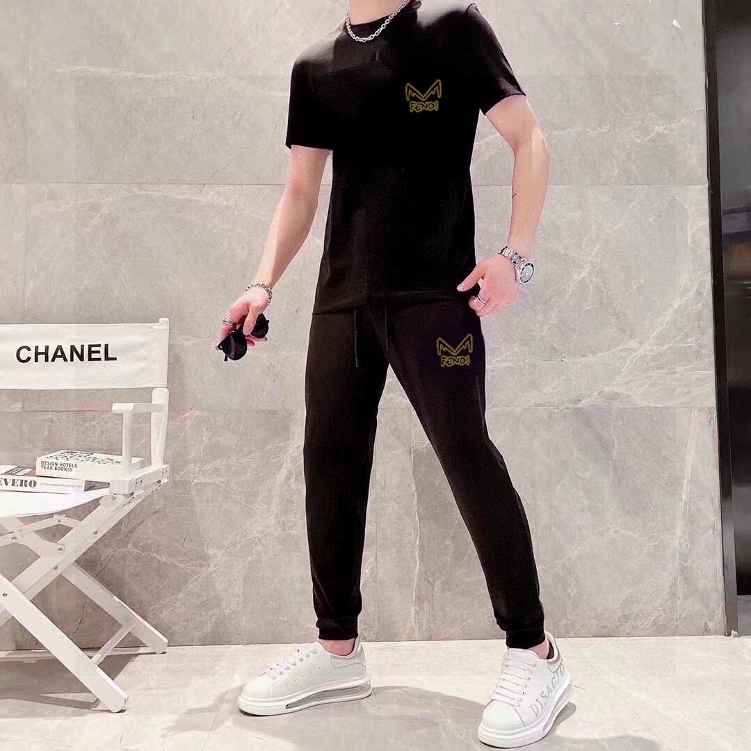 FENDI men's summer high-quality set, imported fabric, fashionable design, sizes M-5XL.