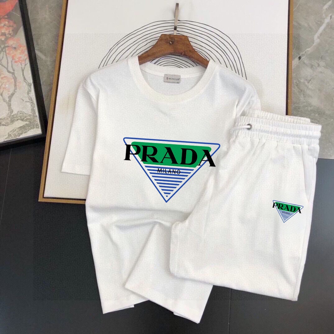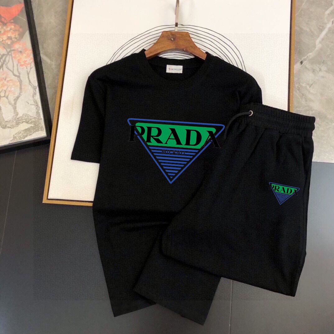 PRADA men's short sleeve and shorts set, 2025 new style. High-end version, soft feel, comfortable fit, excellent cut. Sizes: M-5XL.